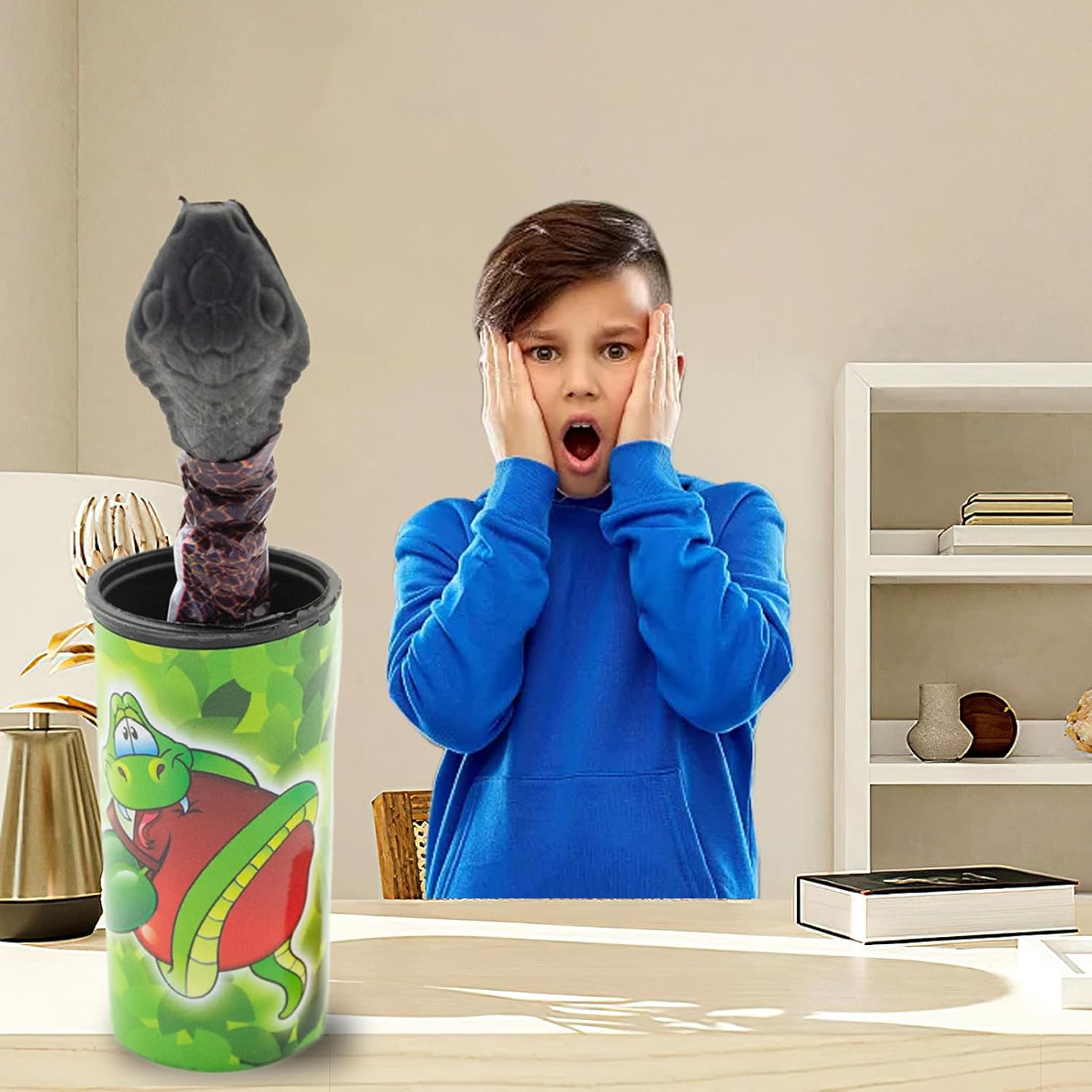 Perfect gag gift idea: A classic novelty prop that never goes out of style, ideal for pranksters, jokers, or anyone who loves lighthearted fun with a creative twist in their gift-giving Safe fun for all ages: Built with soft, materials, this prank toy delivers harmless scares while ensuring it's safe for adults and children to enjoy playful joking together Great for various occasions: Adds fun and laughter to Halloween parties, office gatherings, birthday events, and casual hangouts with friends or family, turning any setting into a stage for surprises Compact and realistic can: Measures just 2.36 inches and mimics an chip can, enhancing the shock value with its authentic appearance and lightweight, portable design for easy setup anywhere Spring-loaded surprise prank: Designed with a hidden spring mechanism that releases a faux snake when the lid is opened, giving unsuspecting victims a playful and unforgettable jump scare
