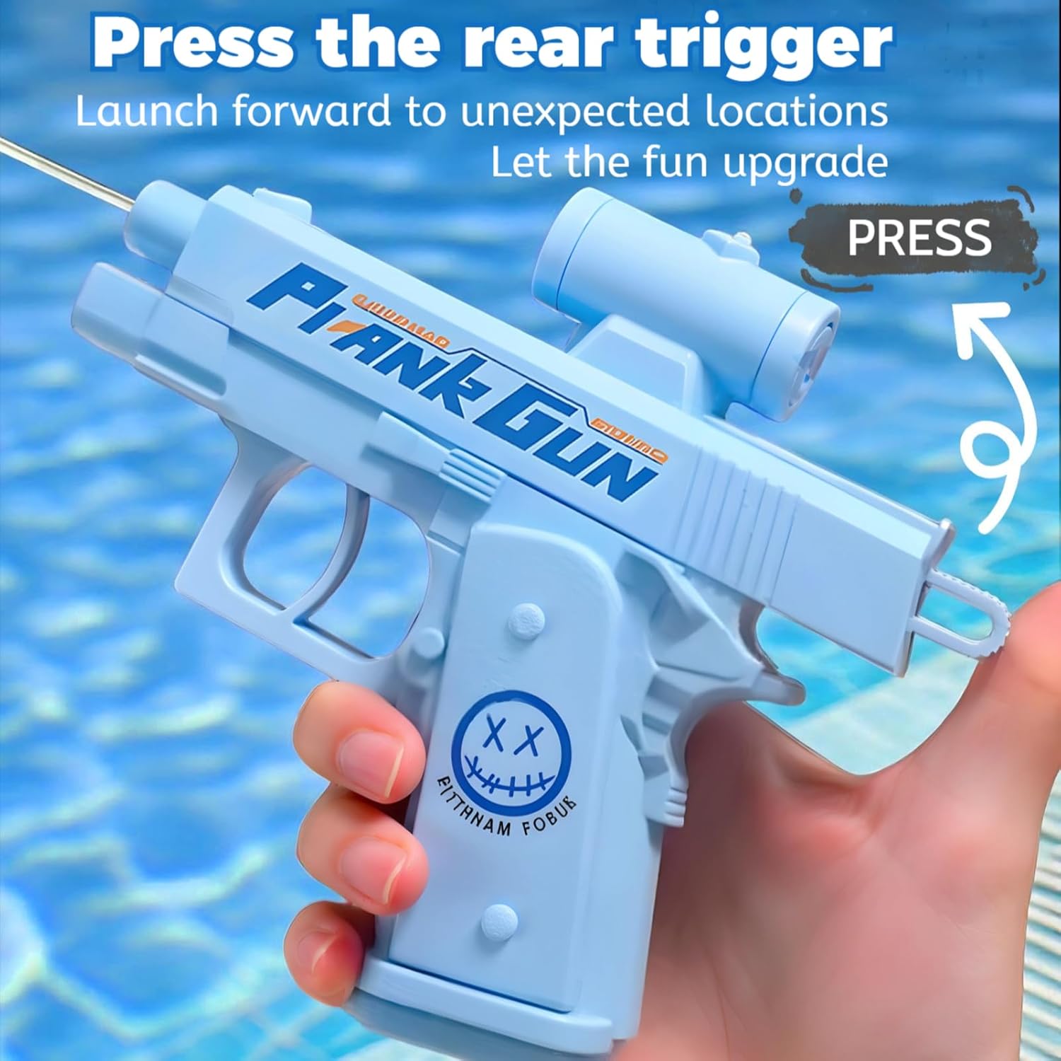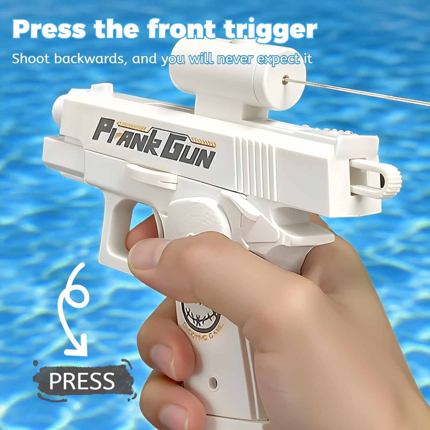 Hilarious Reverse Spray Prank Feature: Unique water jet shoots backwards towards the shooter, creating uncontrollable laughter and sorpresa moments during water battles. Dual-Trigger Tactical Gameplay: Due interruttori indipendenti - front trigger spray backwards, rear trigger fires forward for versatile solo or team play. Kid-Safe Durable Costrution: Made with premium BPA-free plastic that withstands drops and rough outdoor use. Lightweight Water Adventure Ready: design portatile ideale per beaches, piscine, parchi, e feste di backyard. Entertainment party istantaneo: Sparks laughter at family gatherings, eventi estivi, e celebrazioni con unforgettable soaking fun.