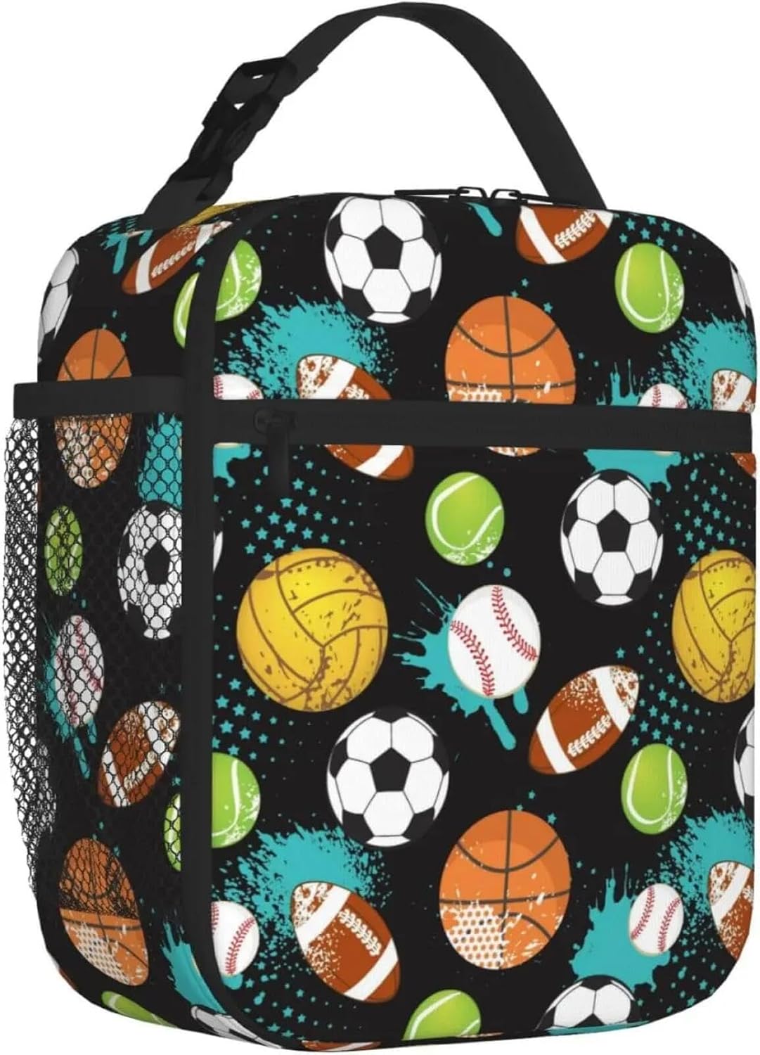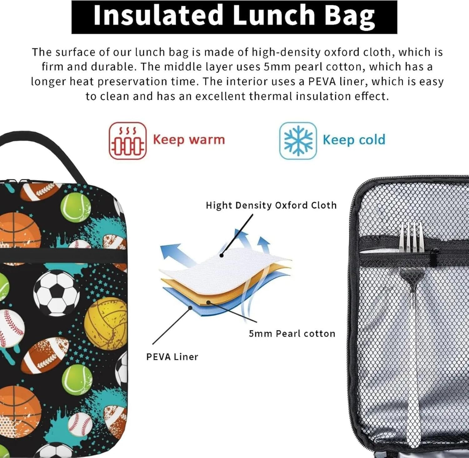 Pranzo Isolato da Baseball da Calcio, Pranzo da Pranzo per Bambini per Ragazze Ragazzi Teen, Contenitori per Pranzo Bambino Contenitore Sacchetto più Fresco con Tasca Frontale per
