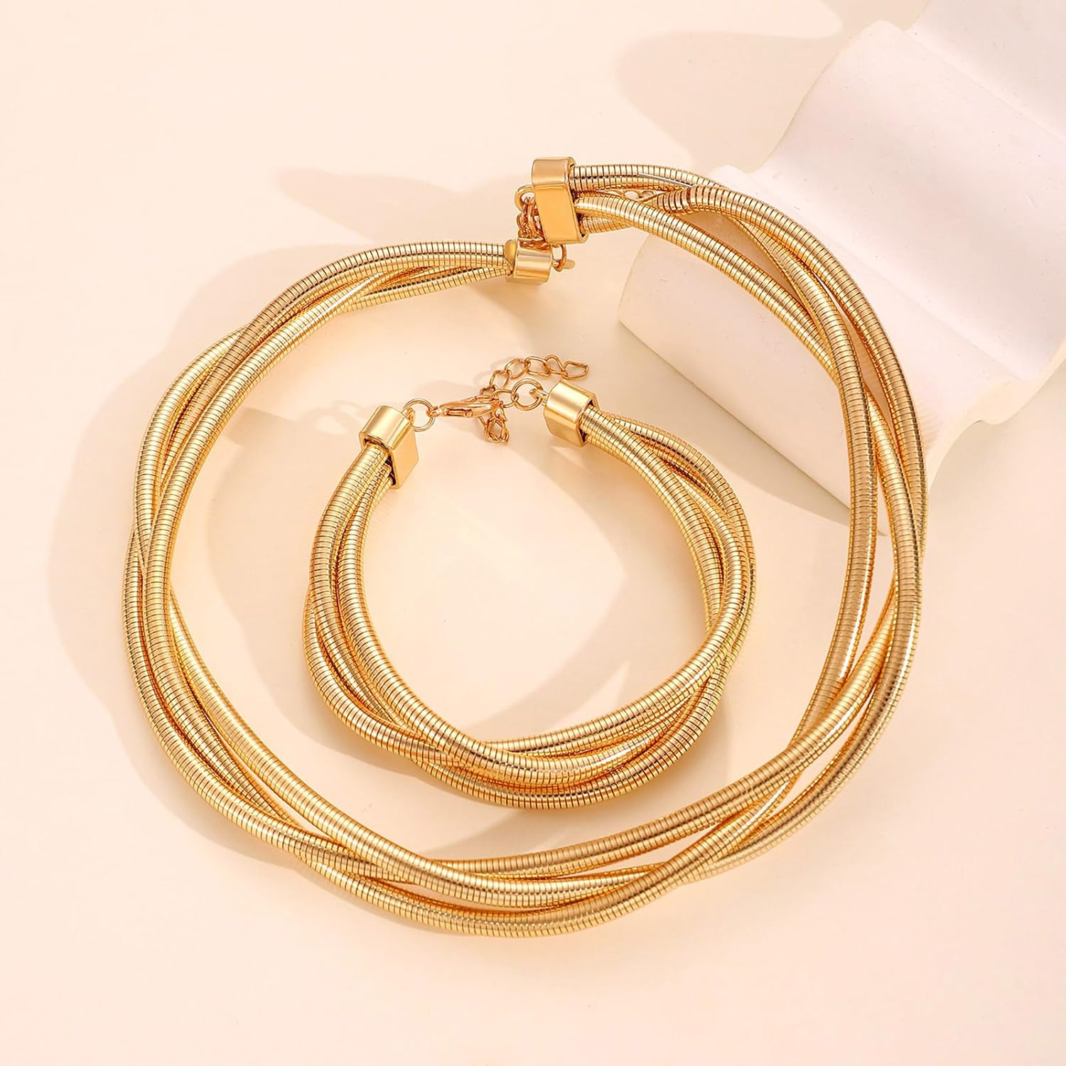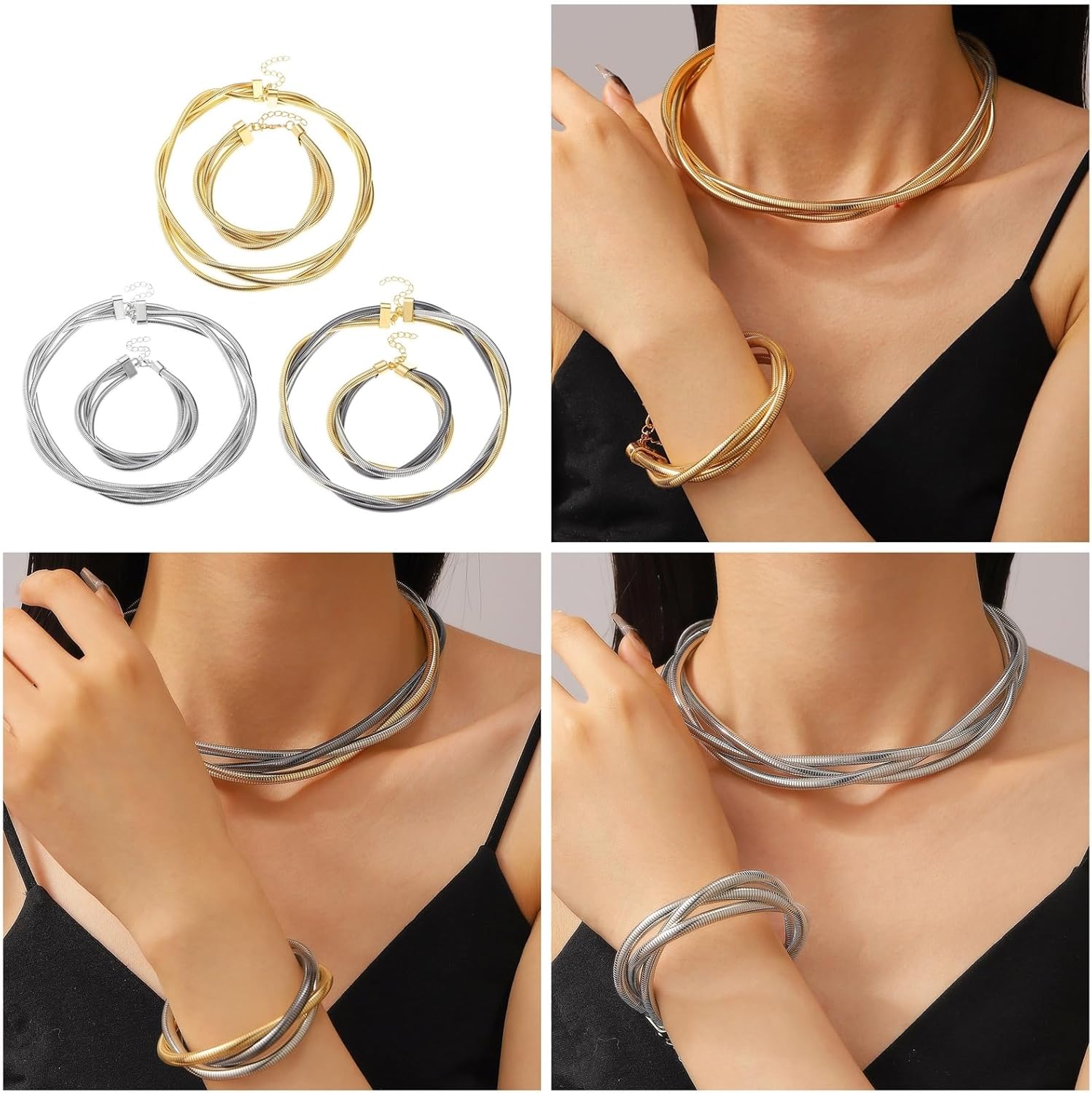 Pratico braccialetto con collana Gioielli punk Set gioielli in metallo geometrico punk con braccialetto con collana a catena multistrato Caratteristiche: Migliora tuo stile con set gioielli con bracciale e collana esagerata, caratterizzato da un design avvolgente a tre linee che aggiunge un tocco alla a qualsiasi outfit. Realizzato in lega, questo set gioielli vanta durevolezza e resistenza sbiadimento, garantendo un'usura duratura mantenendo i suoi vivaci toni oro e argento. Progettato per le donne alla che abbracciano l'individualità e le tendenze, questo set è perfetto per coloro che desiderano dichiarazione con i propri accessori. Adatto per l'uso quotidiano o per occasioni speciali come feste e riunioni, questo set collana e bracciale migliora senza sforzo tuo look generale e ti rende centro attenzione La comoda struttura a molla consente facile regolazione, rendendolo adatto a polsi varie dimensioni e garantendo perfetta aderenza per un comfort che dura tutto giorno. Specifiche: Componente: lega Dimensioni della collana: 41+5 cm/16,14+1,96 pollici Misura del braccialetto: 20+5 cm Colore: Oro/Argento/3 Colori La confezione include: Set 2 collane a catena avvolgente a 3 fili e set gioielli con bracciale Nota: prega consentire un errore 1-2 cm dovuto alla misurazione manuale. Assicurati che non ti dispiaccia prima un'offerta. A causa della differenza tra i diversi monitor, l'immagine potrebbe non riflettere colore effettivo articolo Grazie!
