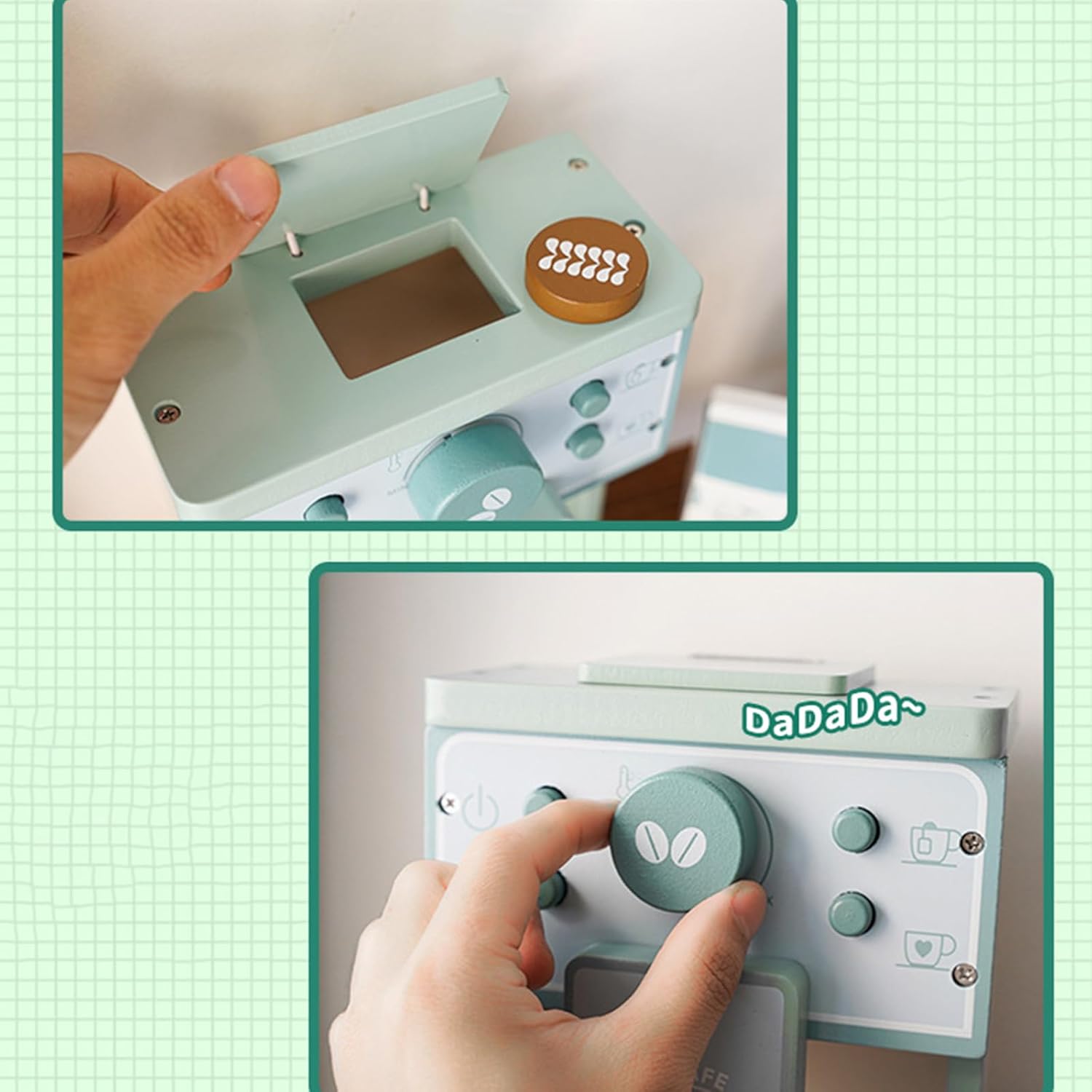 Artigianato in legno con come un interruttore rotante e vassoio per il caffè, questo set promette la durata e l'esperienza di gioco per giocare Guarda i tuoi piccoli caffè ospitare il tuo caffè e sviluppare le abilità per sviluppare abilità con questo fascino aggiunta alla loro collezione di cucine da gioco Accensione Disegni per bambini di 3 anni, questo set di giocattoli per promuovere la coordinazione degli occhi della mano e il pensiero creativo Per Playtime, asilo o per l'asilo, questo set di macchine da caffè funge da strumento per bambini per ruoli che svolgono interazioni sociali e routine