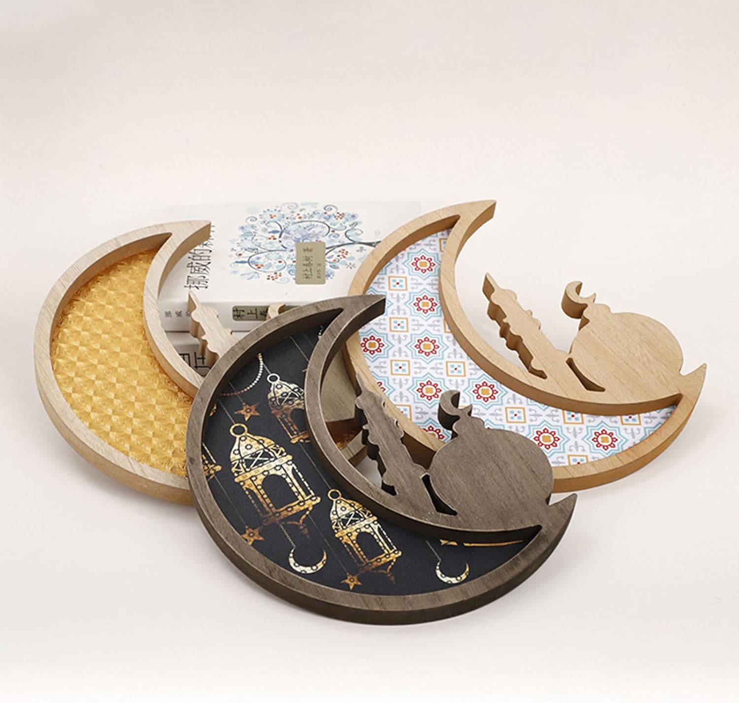 Migliora le tue feste Eid con queste eleganti stoviglie, combinando tradizione e stili in un bellissimo ornamento per esposizioni domestiche, tavoli da pranzo e riunioni di festival, creando un'atmosfera calda durante la celebrazione Festeggia l'Eid con il nostro vassoio in legno Eid, con disegni a luna che aggiungono un tocco festivo agli arredi della casa Ideale per famiglie Eid, appassionati di cultura e chiunque cerchi decorazioni uniche per le vacanze Realizzato in legno, il vassoio garantisce l'uso per qualsiasi esigenza di servizio