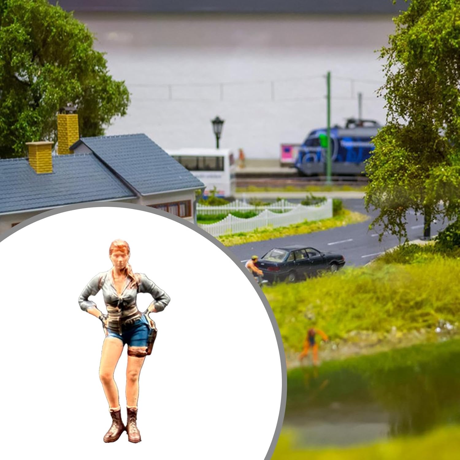 【Figura in miniatura】: La mini-statuina della ragazza ha una posa vivida e dettagliati, che possono aiutare ad arricchire le tue scene modello. Altezza circa 2,65 cm/1,04 pollici 【Materiale di alta qualità】: la statuetta in miniatura dipinta è realizzata in resina, ha una lavorazione e dettagli raffinati, non si rompe facilmente e garantisce un lungo utilizzo 【Ampie applicazioni】: il modello di figura in miniatura 1:64 è adatto per giocattoli da costruzione di scenari da tavolo di sabbia, modelli architettonici, decorazioni paesaggistiche in miniatura, accessori per case delle bambole, ornamenti da scrivania, ecc. 【Un bel regalo】: il piccolo diorama è un regalo da collezione ideale per bambini e adulti in occasione di compleanni e festival, è una bella aggiunta alla collezione di qualsiasi appassionato di modellismo 【Modelli in 1:64】: La miniatura della fantastica ragazza motociclista in 1/64 è perfetta per creare scene in miniatura realistiche, è un bel supporto per la fotografia e un supporto per il layout