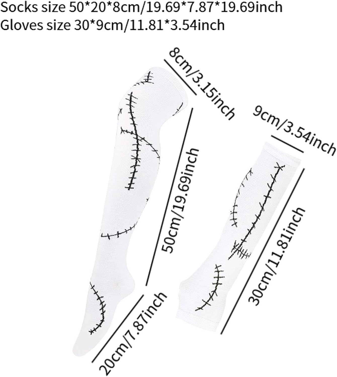 【Materiale in poliestere】I calzini lunghi e i guanti per costumi di Halloween sono realizzati in poliestere, leggeri e resistenti all'usura 【Informazioni sulle taglie】La manica del braccio misura circa 30 cm x 9 cm / 11,81 pollici x 3,54 pollici, il calzino lungo circa 50 cm x 8 cm / 19,69 pollici x 3,15 pollici 【Set di costumi di Halloween per donne】Incluso 1 paio di maniche per le braccia e calzini lunghi con cicatrice cucita stampata 【Vestibilità】Maniche con cicatrice cucita di Halloween e calzini lunghi con taglia standard da donna adatti alla maggior parte degli adolescenti e degli adulti 【Applicazione】Accessori per costumi di Halloween adatti per , feste di Halloween e giorni in maschera e così via