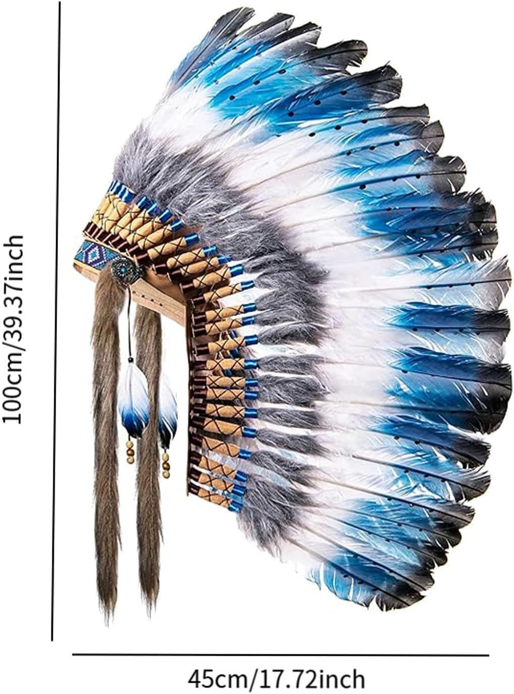 【Dimensioni appropriate】: il copricapo di piume misura 100 cm x 45 cm / 39,37 pollici x 17,72 pollici, ottimo per i costumi cosplay 【Design esagerato】: il copricapo del capo indiano americano presenta un design distintivo, che incorpora piume artificiali e abbellimenti che trasudano selvaggia, aggiungendo un tocco di moda 【Ampie occasioni】: il copricapo in costume indiano è perfetto per feste, mascherate, cosplay, carnevali, spettacoli teatrali, ecc. 【Materiale di alta qualità】: il copricapo di piume è realizzato in tessuto e materiale di piume sintetiche, leggero e comodo da indossare 【Ottimo regalo】: l'accessorio per capelli indiano è un ottimo regalo per la famia, amici per giochi di ruolo e travestimenti per compleanni, vacanze, ecc.