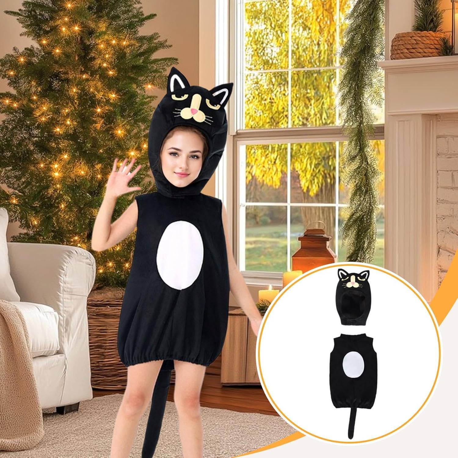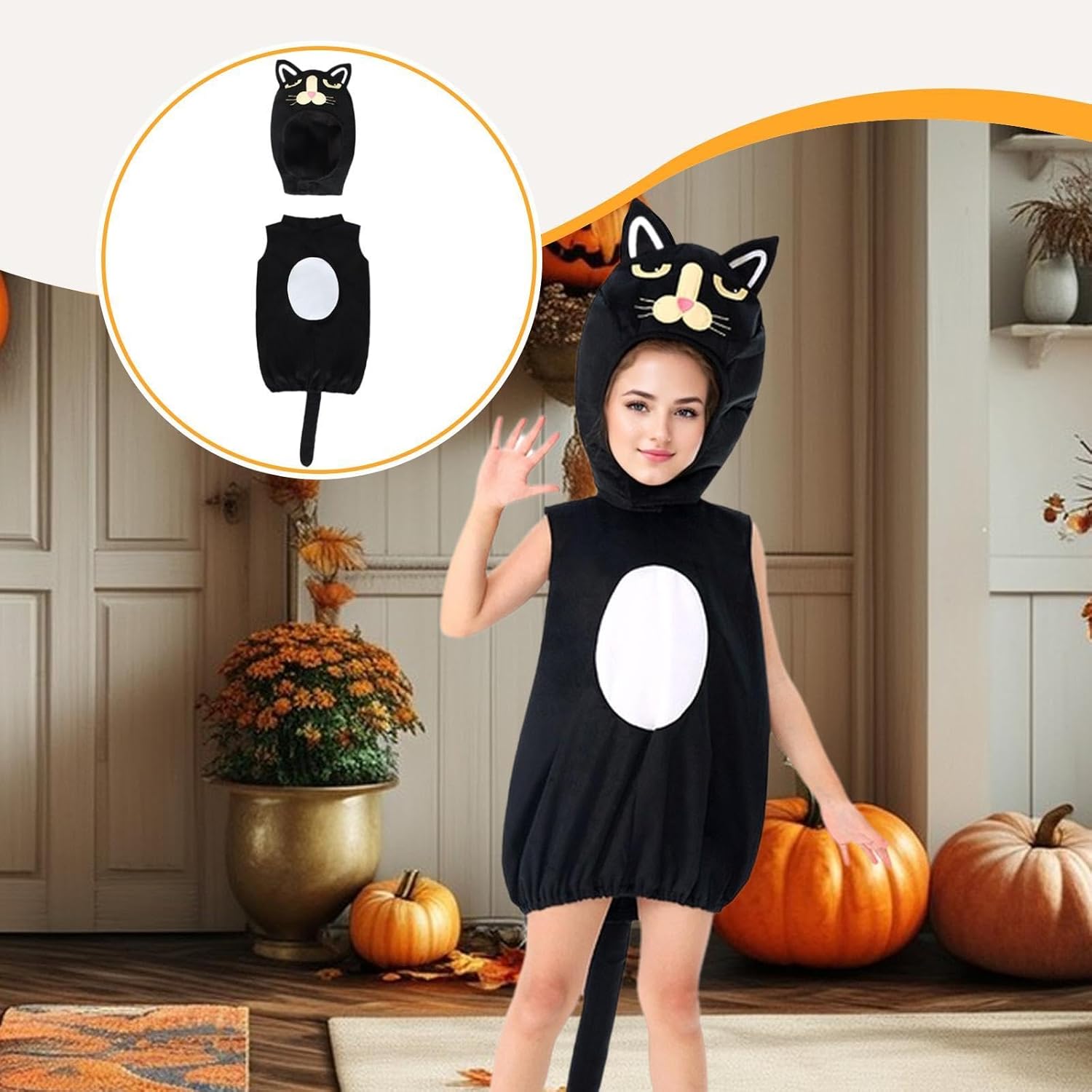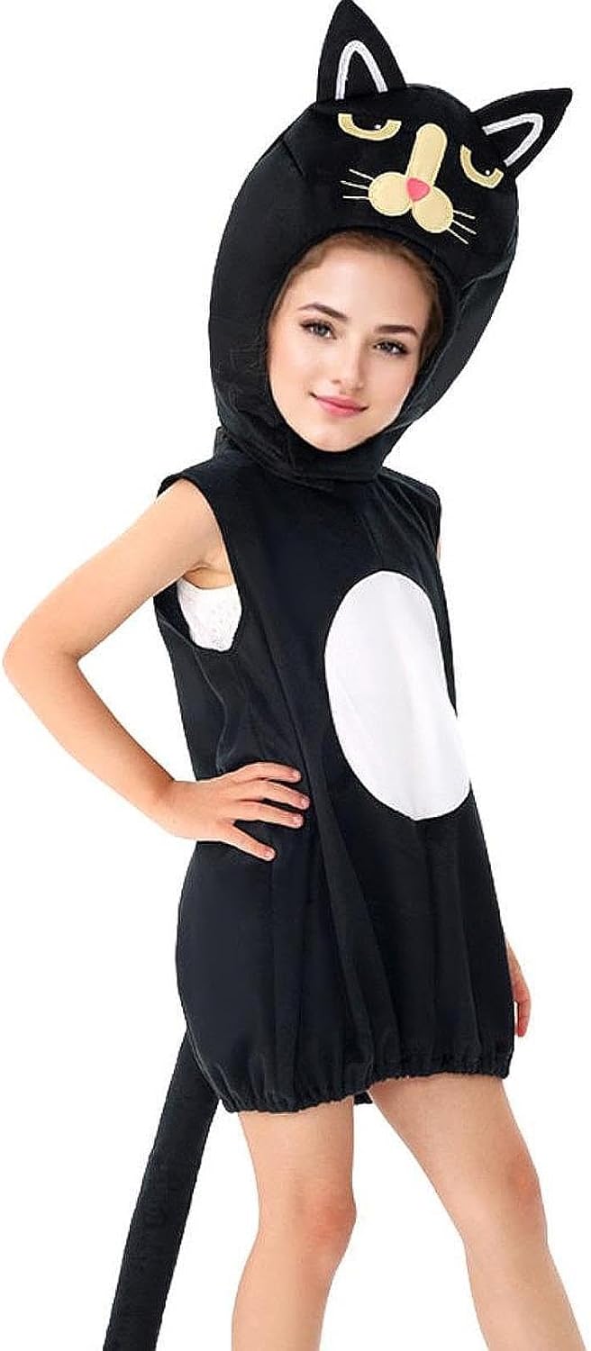 【 regalo】: un regalo meraviglioso per familiari, parenti e colleghi per fare cosplay e giocare durante i festival 【Facile da indossare】: il costume da gatto nero per bambini è dotato di cappuccio e tutina per vestirsi e svestirsi facilmente, consentendo cambi rapidi durante le feste o le attività scolastiche 【Ampia applicazione】: la tutina per bambini a forma di animale è adatta per Halloween, carnevali, balli in maschera, compleanni, eventi a tema, giochi di ruolo, spettacoli teatrali e spettacoli all'asilo 【Costume da gioco di ruolo】: questo costume da cosplay di animali è perfetto per tutti i tipi di feste, ottimo per bambini piccoli, bambini, ragazze, ragazzi 【Materiale】: realizzato in poliestere, il costume di Halloween per bambini è comodo e traspirante, consentendo loro di giocare