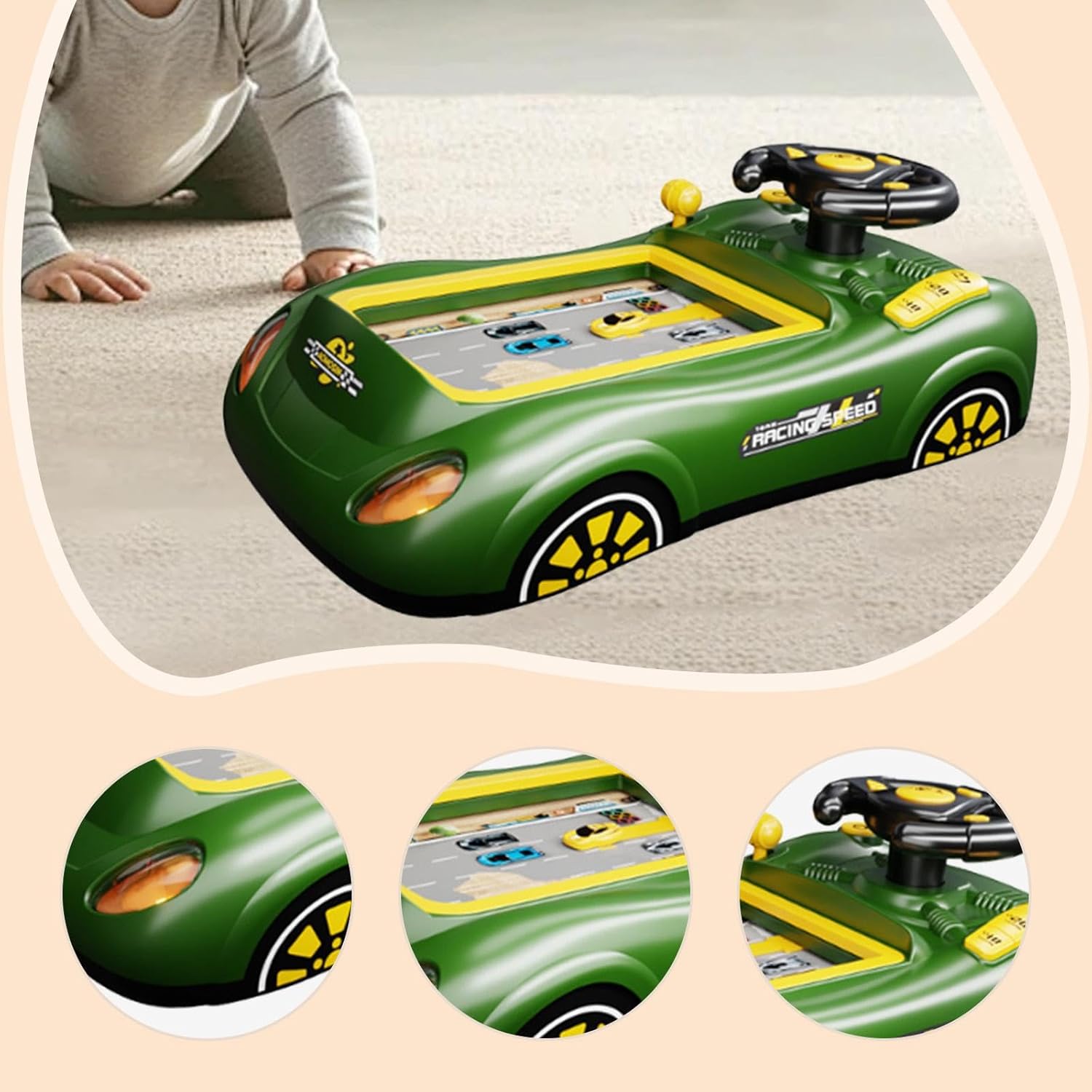 【Giochi in modalità doppia】: la modalità doppia ti consente di divertirti con la gara e i livelli di sorpasso, collisione e arresto. Con effetti musicali, la guida diventa più reale e interessante. 【Legame genitore-figlio】: questo giocattolo da guida incoraggia l'interazione genitore-figlio, rendendolo un ottimo strumento per trascorrere del tempo di qualità , supportando al contempo la crescita del bambino attraverso il gioco fantasioso 【Regalo ideale】: che tu stia cercando un regalo di compleanno o un regalo per le vacanze, Race Car Game è un'ottima scelta per i bambini dai 3 anni in su 【Esperienza di guida reale】: Volante giocattolo dotato di luci di svolta a sinistra e a destra, suono del clacson e controllo del volume, queste funzioni offrono un'esperienza di guida realistica 【Imparare giocando】: il giocattolo per avventure in auto aiuterà il tuo bambino a sviluppare capacità motorie, sensoriali, immaginazione e permetterà al tuo bambino di divertirsi di più e arricchire l'immaginazione dei bambini