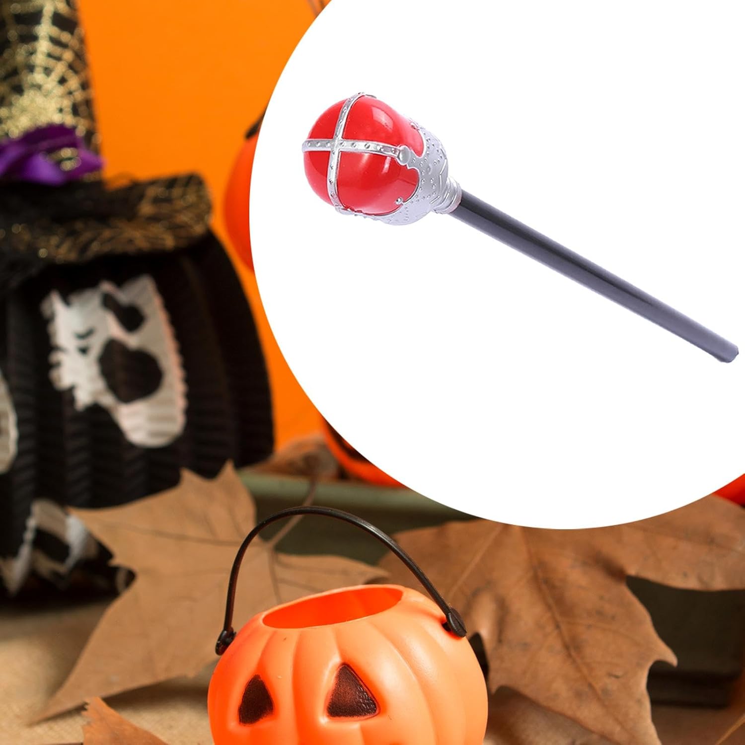 【Elenco prodotti】: 1 scettro reale, lungo 45 cm 【Dettagli delicati】: i dettagli dell'intaglio dello scettro sono delicati, il che non è solo un accessorio di Halloween, ma è anche adatto come oggetto di scena per spettacoli teatrali e attività di cosplay 【Leggero e portatile】: lo scettro è realizzato con materiali leggeri. È leggero e facile da trasportare e può essere trasportato in qualsiasi momento, il che è comodo 【Design unico antico】: l'oggetto di scena per costumi di Halloween trae ispirazione dall'antico design unico della canna per aggiungere un'atmosfera unica alla festa di Halloween 【Materiale PP】: lo scettro reale è realizzato in materiale PP, che è forte, resistente all'usura, può essere utilizzato a lungo e non è facile da indossare