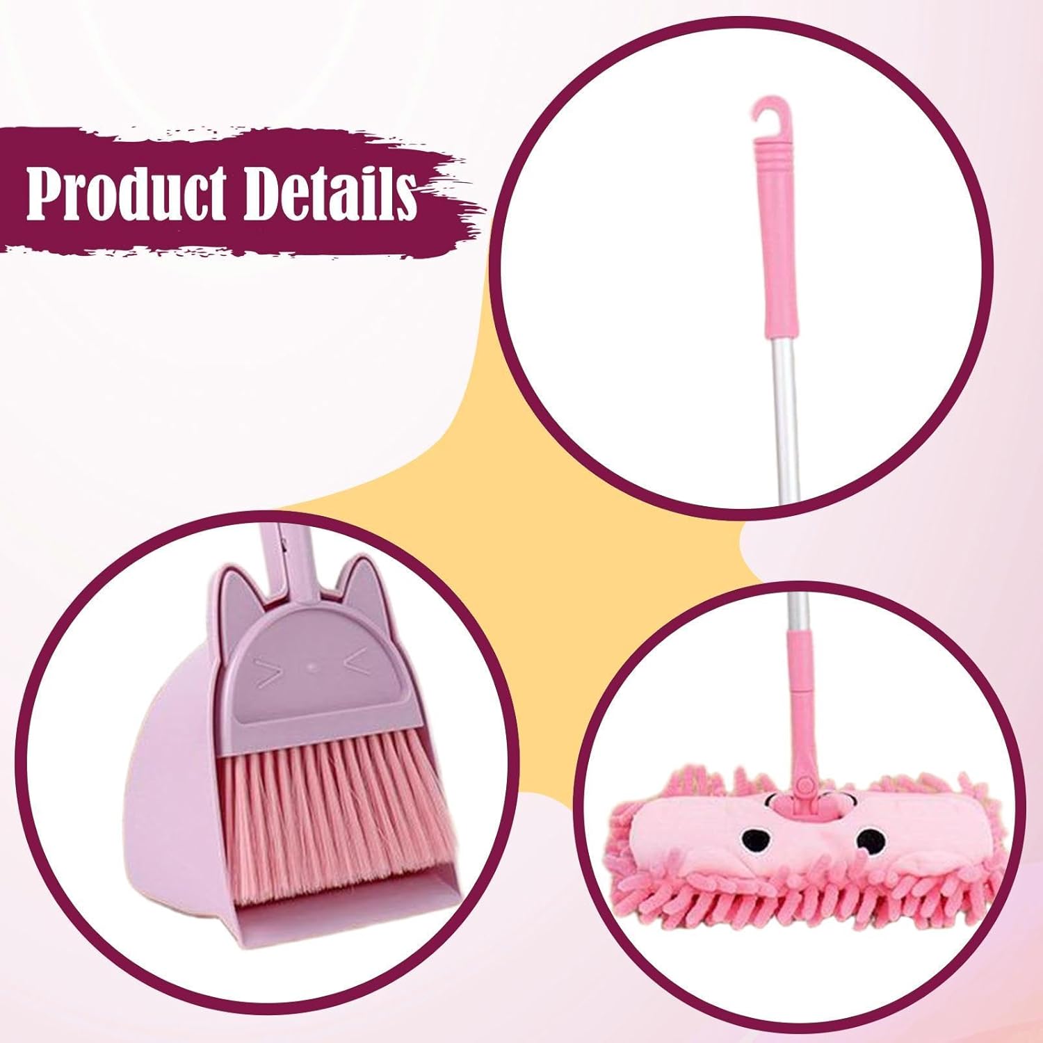 【Giocattolo per la pulizia】: il set di mini scopa e paletta per bambini è realizzato in robusto PP, acciaio inossidabile e ciniglia, questo set è un'ottima scelta 【Design carino】: il set di aiutanti per le pulizie domestiche presenta un design carino e compatto che farà amare le pulizie al tuo bambino. Il set di è anche un giocattolo divertente per i bambini. 【Set per la pulizia dei bambini】: il set di giocattoli per la pulizia dei bambini è pratico per le faccende domestiche e adatto a bambini dai 3 agli 8 anni 【Regalo ideale】: strumenti per la pulizia della casa per bambini, con design a cartoni animati e colori vivaci, sono un successo tra i bambini, rendendoli un ottimo regalo per compleanni e festività sia per ragazzi che per ragazze 【Gioco di finzione】: il set di scope per bambini è progettato per consentire al tuo bambino di modellare l'indipendenza e divertirsi usando la sua immaginazione