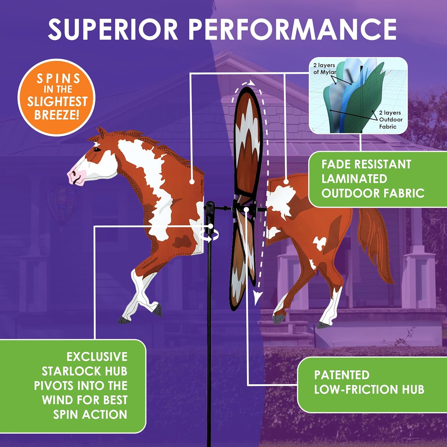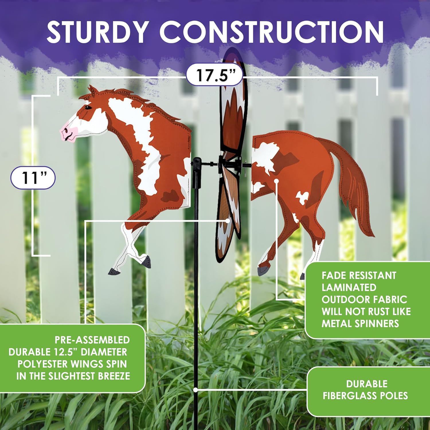 Decorazione per cortili per feste: aggiungi un tocco vivace e giocoso al tuo spazio esterno con questo Petite Spinner. Il suo design vivace e il movimento dinamico catturano l'attenzione, rendendo il tuo giardino, patio o cortile risaltare con un fascino unico. Design colorato vivace: questo accattivante spinner presenta un sorprendente cavallo di vernice con dettagli fluenti della criniera e ali che girano luminosamente. Una vivace miscela di movimento e colore che porta fascino occidentale a qualsiasi cortile, giardino o spazio a tema equestre. Gira con il vento: con parti rotanti uniche, questo Petite Spinner si muove con grazia nella brezza. Il movimento rotante di elementi specifici, come ali o piedi, crea un effetto rilassante e aggiunge fascino dinamico a qualsiasi giardino, cortile o spazio esterno. Materiale esterno durevole: realizzato con materiali resistenti in grado di resistere ai rigori di intemperie, vento e sole, questo spinner leggero cattura anche i venti più leggeri. Il suo design resistente garantisce un'aggiunta dinamica e duratura al tuo arredamento esterno. Ottima idea regalo: questo è un regalo meraviglioso per chi ama i filatori a vento e le decorazioni simili da giardino. È spesso dato per la festa della mamma e Natale. Ottieni il tuo mentre abbiamo questo design popolare in abbondante fornitura.