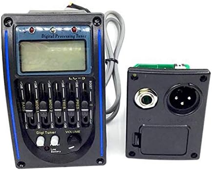 Con manopole di controllo volume, , , alti e pres. Display LCD di facile lettura. LED di controllo della batteria scarica. Modalità di sintonizzazione automatica e manuale. Alimentato batteria 6F22 9V ( batteria) e di alta qualità. Accordatore professionale per chitarra e basso Principio: raccogli la vibrazione del ponte attraverso la striscia piezoelettrica, guidala con un alimentatore da 9 V, inseriscila nel computer host, amplifica il segnale attraverso la scheda del circuito host e invialo all'altoparlante. Questo pickup è un pickup .