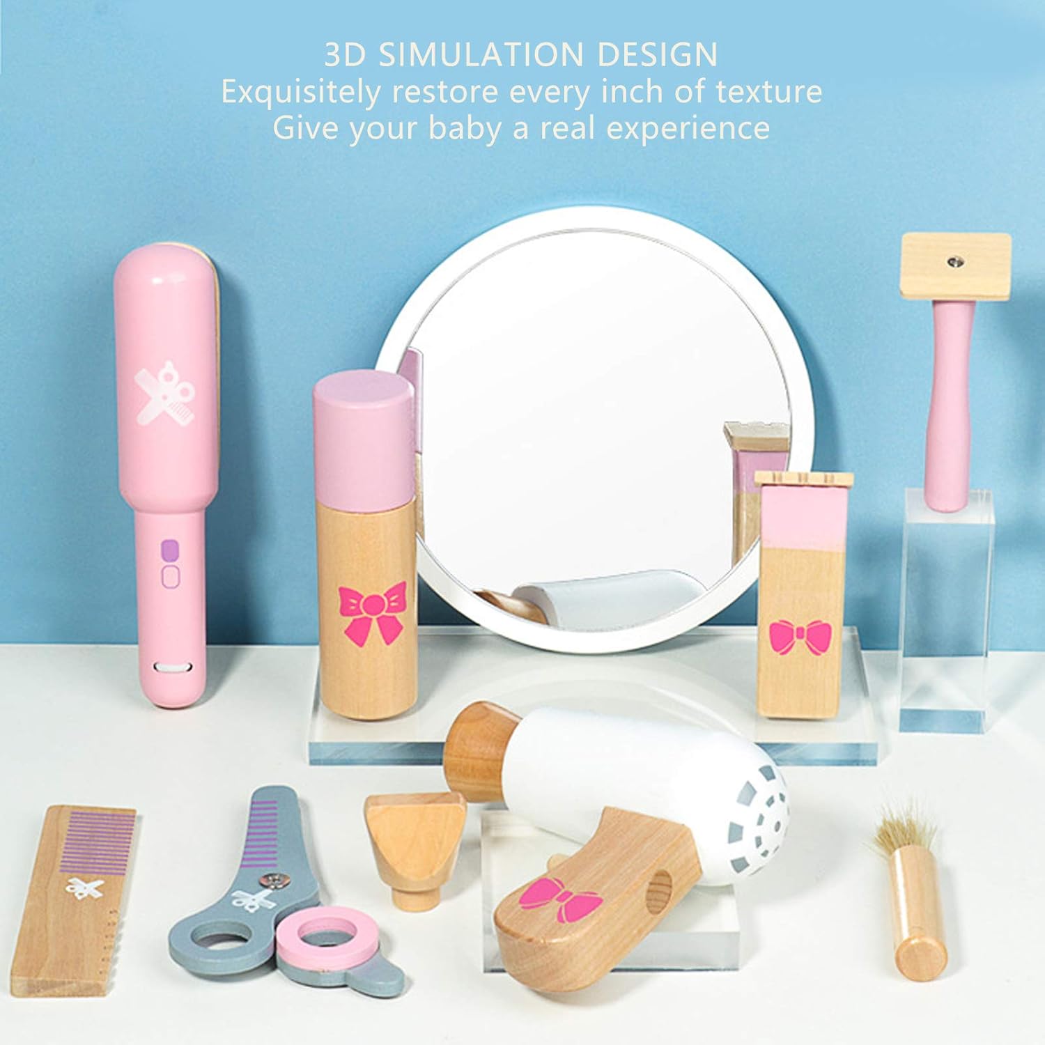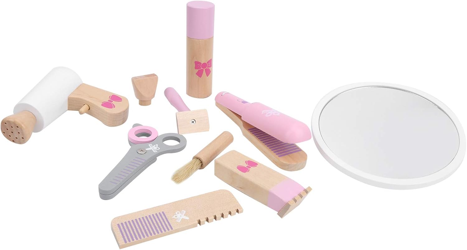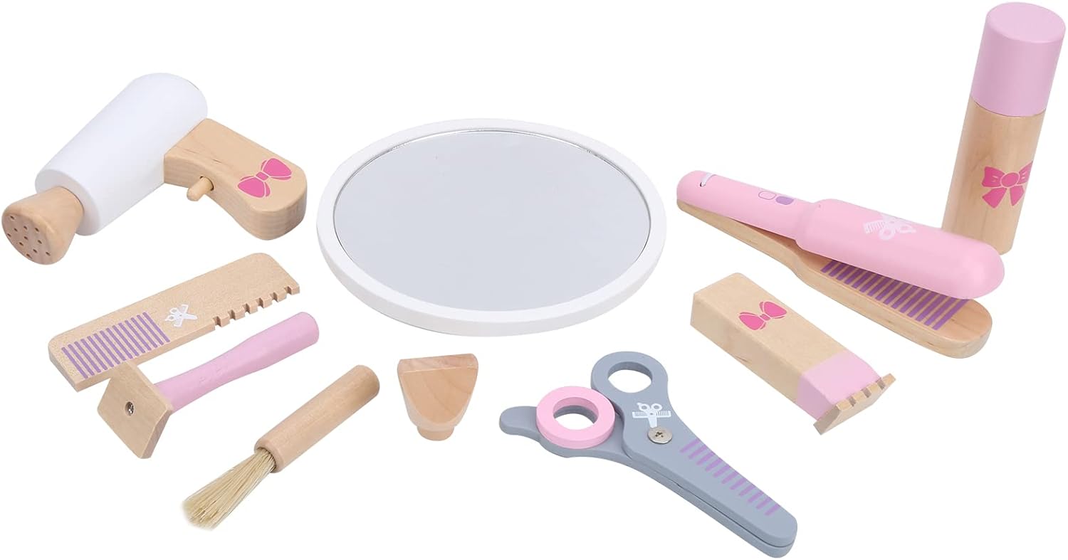 [SET DI STRUMENTI PER CAPELLI REALISTICI] Il design di simulazione 3D replica perfettamente gli strumenti per il taglio dei capelli per un'esperienza realistica. [ABILITÀ MOTORIE MIGLIORATE] Migliora la coordinazione occhio-mano con movimenti raffinati della mano durante il gioco. [SICURO E LISCIO] Lucidato con cura per garantire una superficie liscia e senza sbavature per il gioco senza preoccupazioni. [ESPERIENZA DI VITA REALE] Il design simulato rispecchia gli oggetti della vita reale per un'autentica esperienza di gioco. [MATERIALI] Realizzati con materiali in legno non sicuri e non nocivi per la sicurezza nel gioco del tuo bambino.