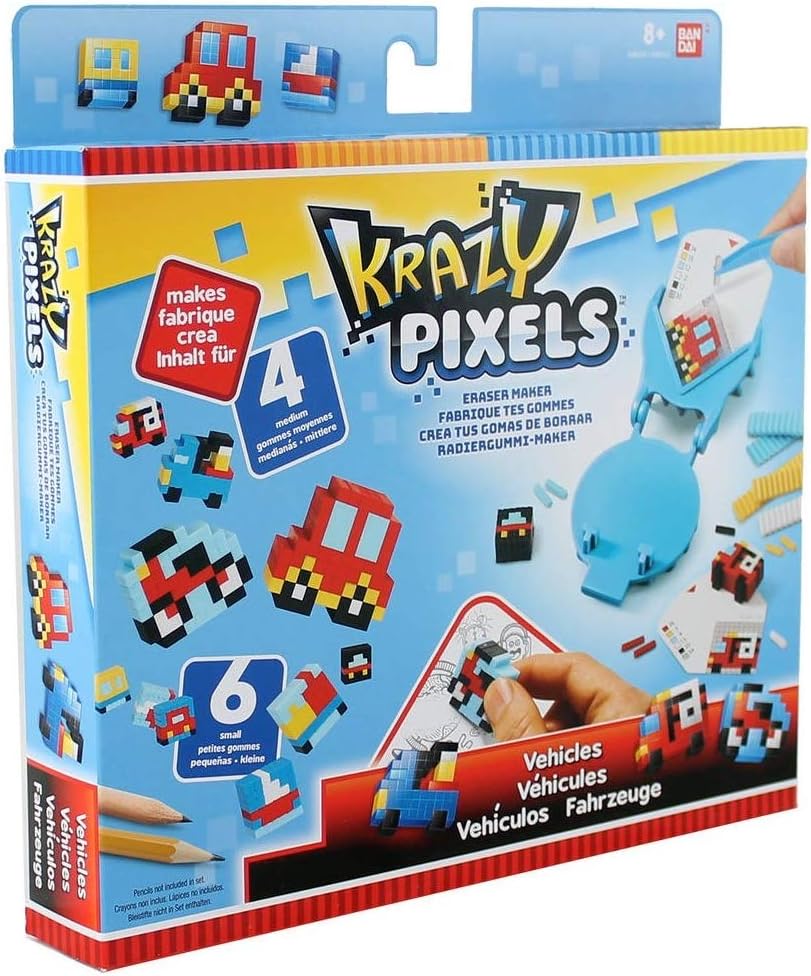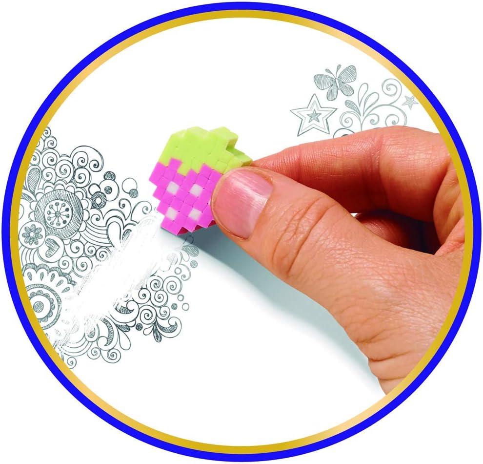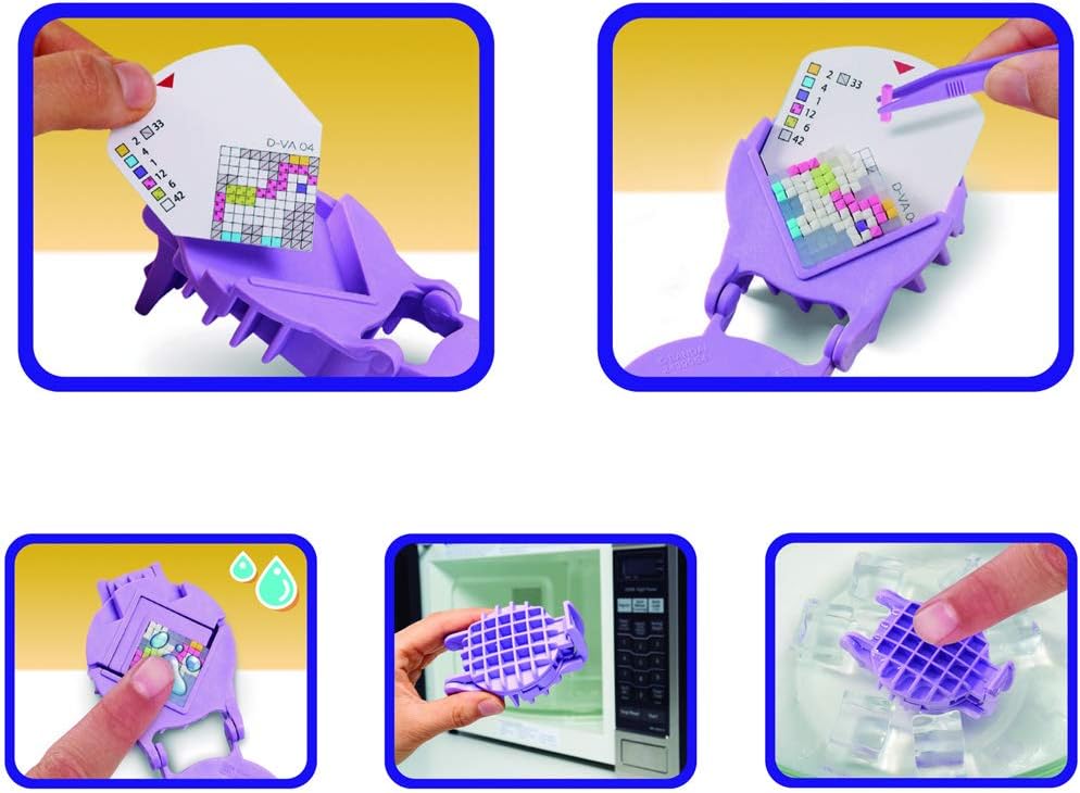 Pretty Pixels Deluxe Pack Tutto ciò di cui hai bisogno per fare la gomma Può contenere fino a 4 gomme grandi e 8 medie utilizzando il calore del forno a microonde invece di un ferro da stiro 60 strisce di gomma (21 pixel per striscia = 1260 pixel di gomma), fogli di design per aiutarti a creare le gomme e quelle vuote per creare il tuo 7 diversi colori