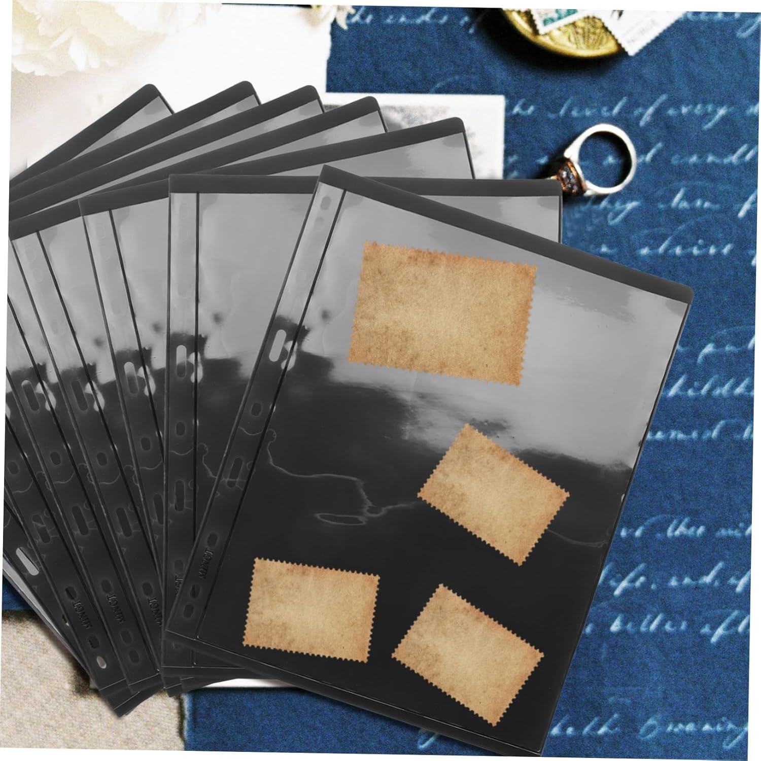 Pagine per collezionare francobolli: le pagine sono progettate con uno sfondo nero e una riga singola, che migliora notevolmente la visibilità e la vivacità dei colori e dei disegni dei francobolli, spazio per le cartoline da collezione di cartoline. Pagine di raccolta di monete: il comodo design a fogli mobili consente una facile organizzazione e visualizzazione, consentendoti di gestire e visualizzare facilmente l'intera collezione di francobolli e le pagine di raccolta di monete. Album di francobolli: questo design versatile della pagina è adatto alla maggior parte dei formati di francobolli, rendendolo ideale per collezionisti con collezioni diverse. portaoggetti per album. Collezione di francobolli di carta: le pagine hanno uno sfondo a riga singola che aumenta l'impatto visivo della tua collezione di francobolli o della tua collezione di francobolli. Pagine per la raccolta di banconote: le pagine per la raccolta di francobolli hanno 9 fori sul lato sinistro, adatte per la maggior parte dei tipi di cartelle di album di francobolli e album di carte.