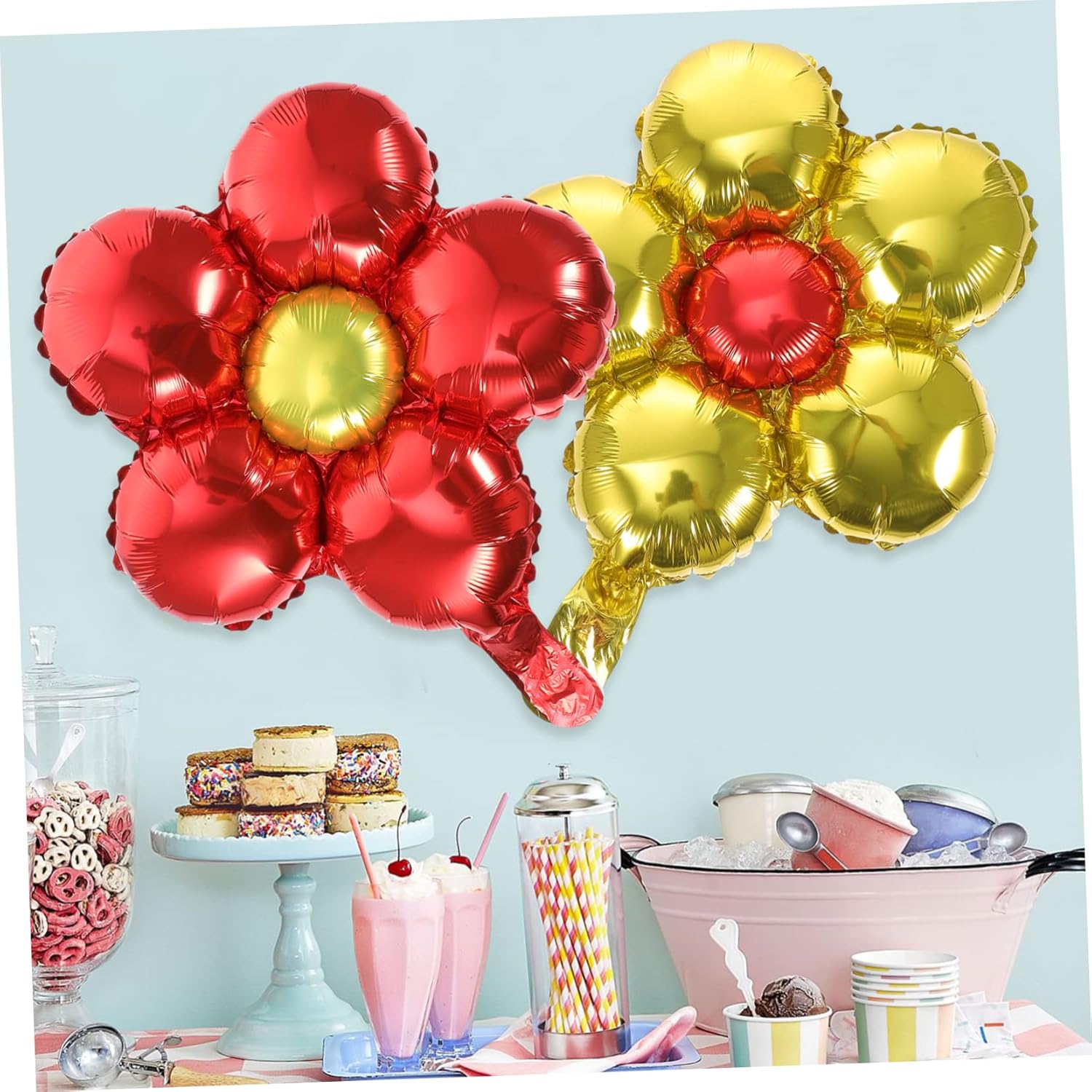 Questi bellissimi palloncini a forma fiore sono ottimi oggetti decorativi per varie feste e festival, palloncini compleanno Palloncini per feste compleanno: adatti per decorazioni per feste, feste compleanno e altre celebrazioni e aiutano a un'atmosfera , palloncini per feste compleanno Per matrimonio: realizzato in materiale pellicola alluminio, non devi preoccuparti strapparlo o romperlo quando gonfiato, pellicola Palloncini metallici: puoi usare questi palloncini decorativi sfondo e divertente per feste e palloncini compleanno Palloncini per matrimoni: questi palloncini floreali rendono la scenografia della festa e unica, decorazioni con palloncini