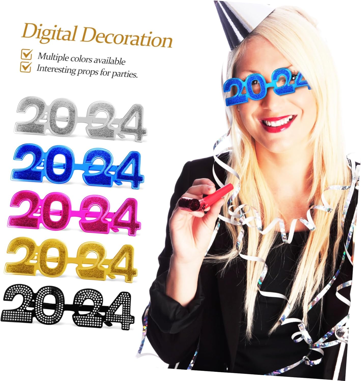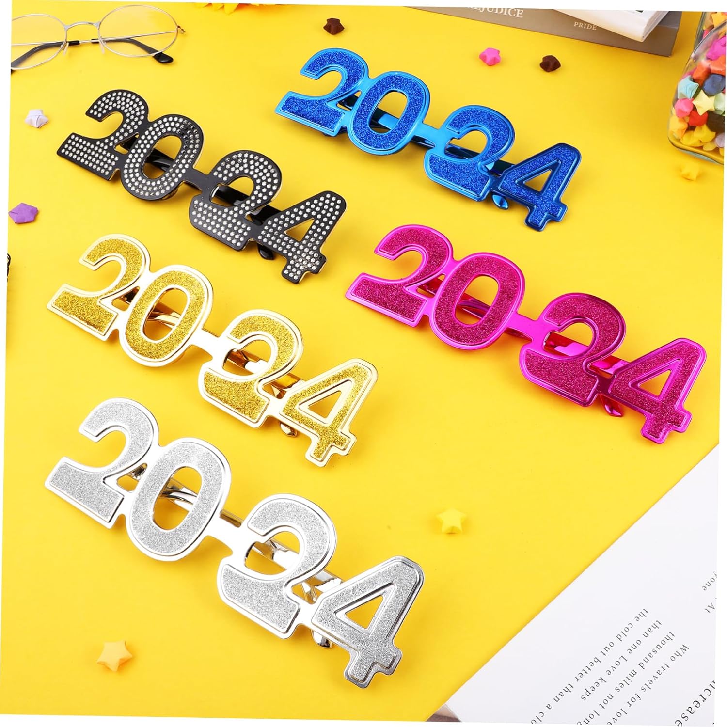 Colori multipli: disponibili in cinque colori diversi, questi occhiali di capodanno possono soddisfare le esigenze di diversi stili e preferenze, occhiali di carta per feste di capodanno, decorazione di occhiali di capodanno Decorazione numerica: gli occhiali per il capodanno 2024 sono decorati con motivi numerici unici, rendendoli più divertenti e distintivi, occhiali per il capodanno, occhiali con numeri per feste Processo di galvanica: i bicchieri di capodanno sono realizzati con un processo di galvanica, che garantisce una superficie liscia e previene lo sbiadimento, bicchieri per la festa di laurea, bicchieri di capodanno Leggeri e comodi: questi occhiali in plastica sono leggeri e non esercitano pressione sulle orecchie, rendendoli comodi da indossare per lunghi periodi di tempo, decorazioni per occhiali di capodanno, occhiali decorativi per feste Stile unico: gli occhiali con numeri alla moda attireranno sicuramente l'attenzione mostrando direttamente il numero del nuovo anno, occhiali di plastica per la vigilia di capodanno, occhiali decorativi