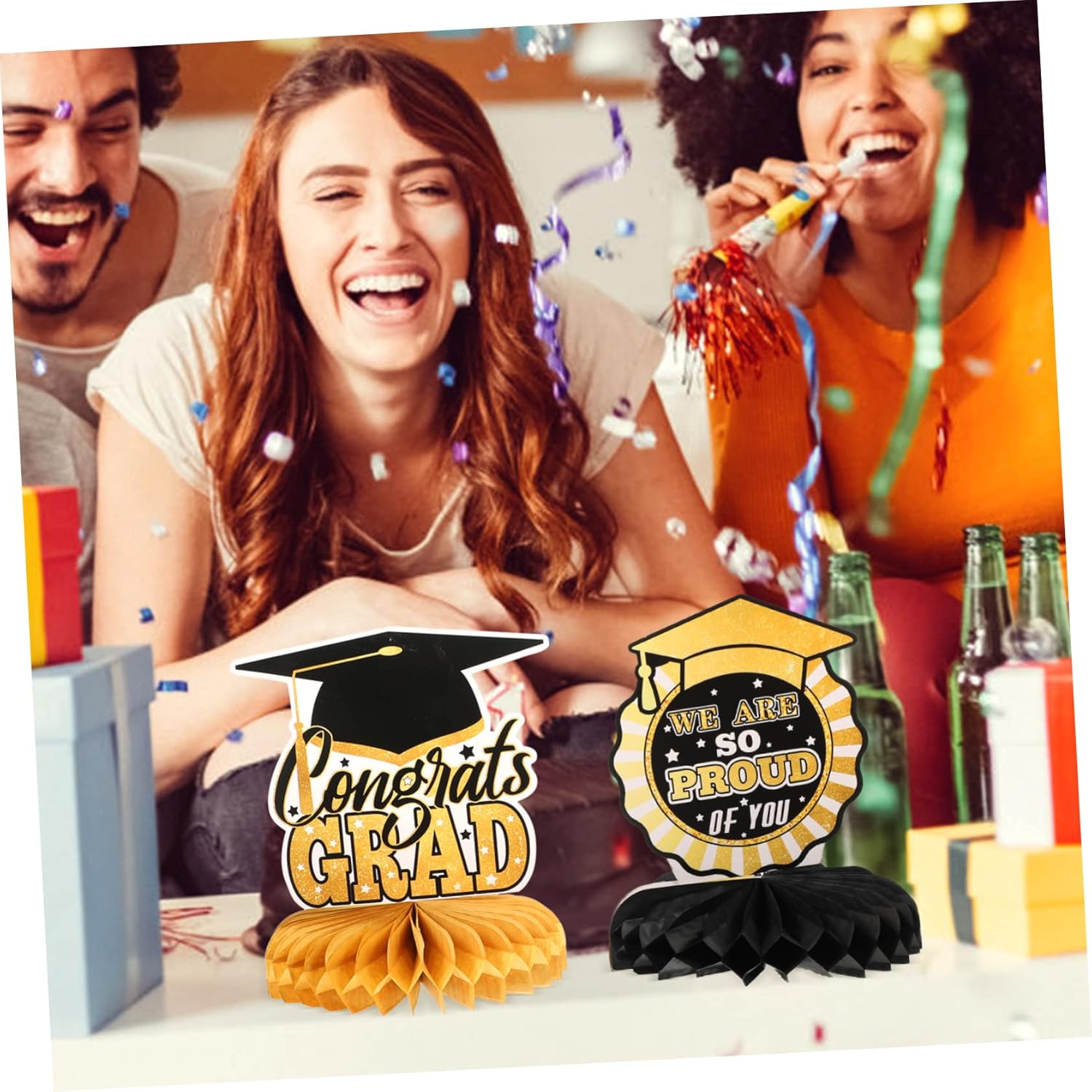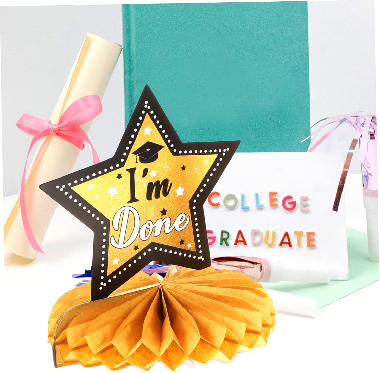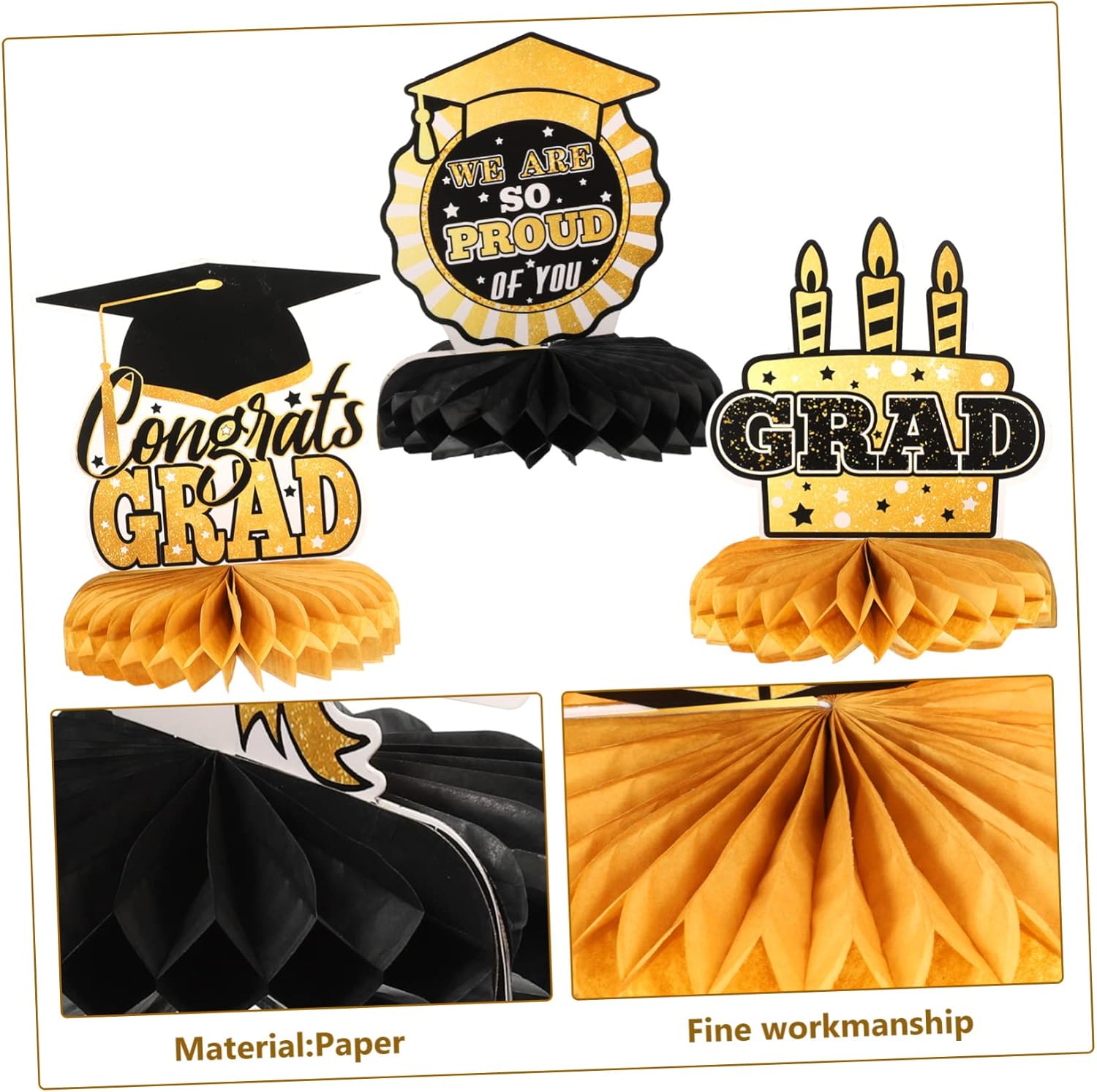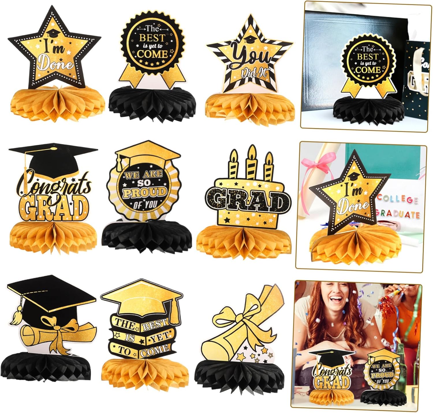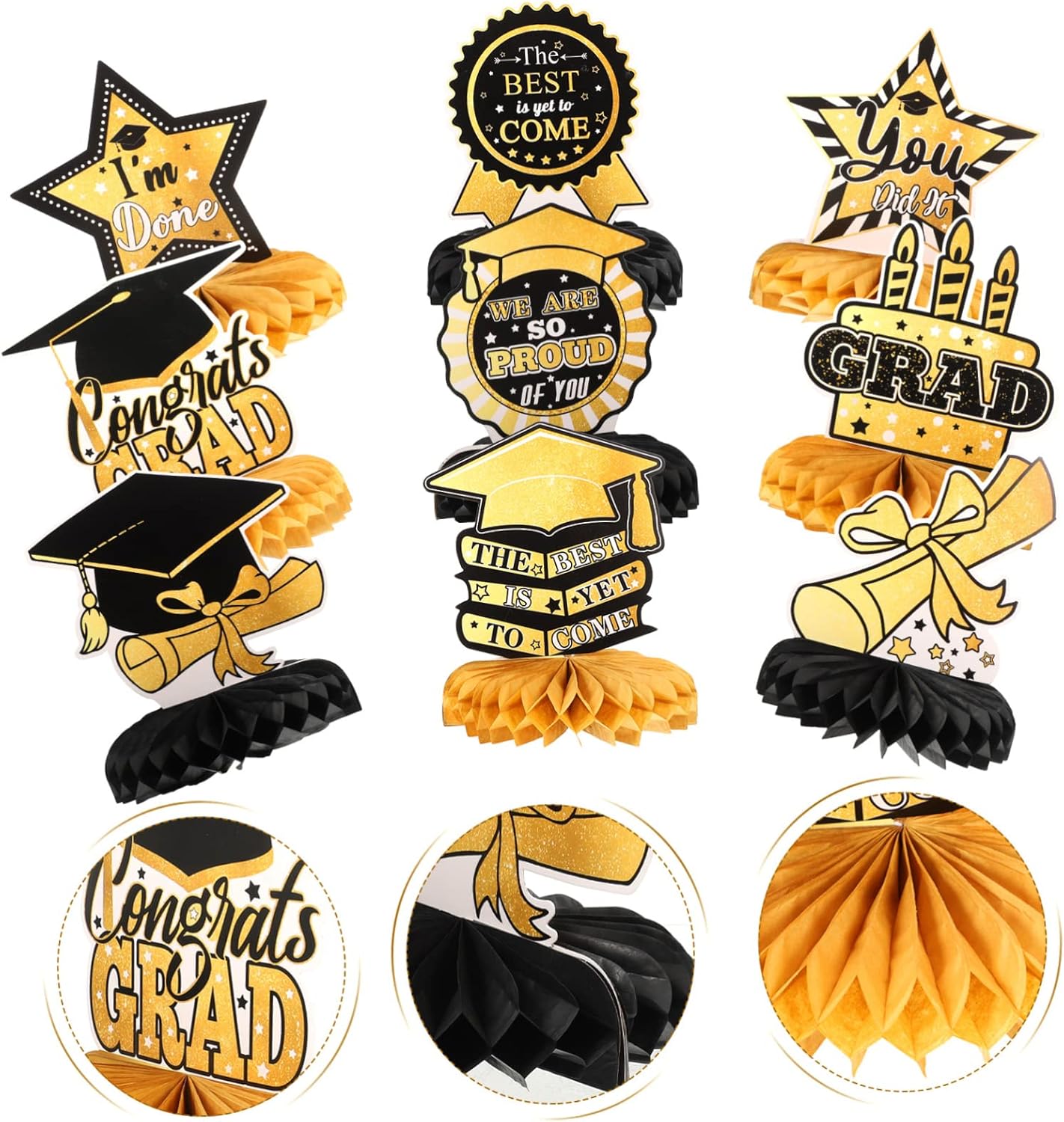 Decorazioni da tavolo: decorazioni per il tavolo di laurea: questi centrotavola per tavolo di laurea squisitamente progettati con interessanti elementi di laurea in modo che tutti adoreranno questi design chic. decorare la tua casa e la tua festa con i nostri centrotavola a nido d'ape sarà un successo alla tua festa. Centrotavola per tavoli per feste di laurea: quando organizzi una festa di laurea, installa decorazioni sulla scrivania per attirare l'attenzione di tutti e lasciare che gli amici trascorrano una festa indimenticabile. Decorazioni da tavola-- 🎓🎓2023 laurea a nido d'ape ✨✨motivo a tema laurea e aspetto a nido d'ape, dimensioni ridotte e peso leggero, facile da trasportare e riporre, non occupa spazio. Finiture dorate-- 🥳 crea un po' di atmosfera posizionando queste decorazioni a nido d'ape per la festa di laurea al centro del tavolo e queste fantastiche decorazioni per la laurea sono abbastanza impressionanti da essere notate. Nido d'ape per feste di laurea: il nostro arredamento è già pensato per rendere la tua festa di laurea più e unica.