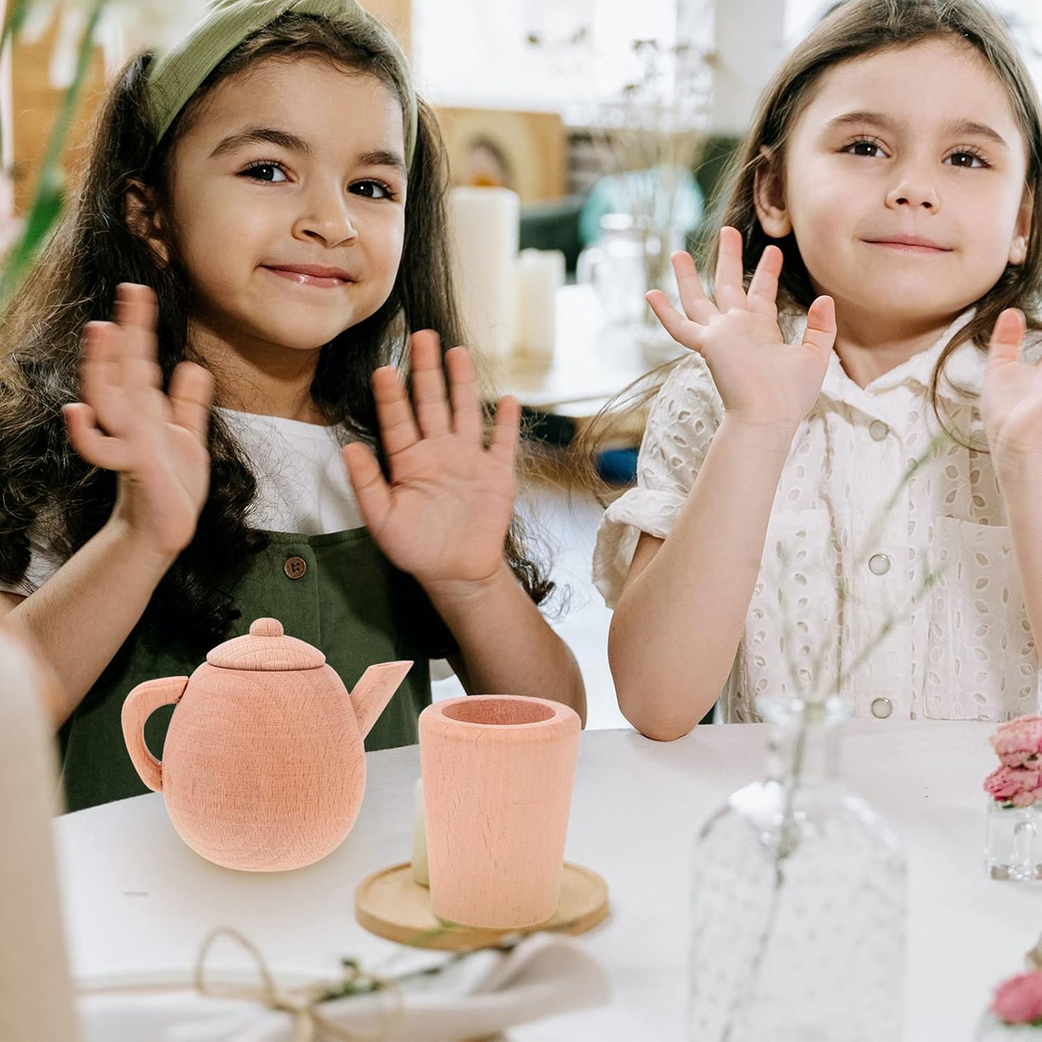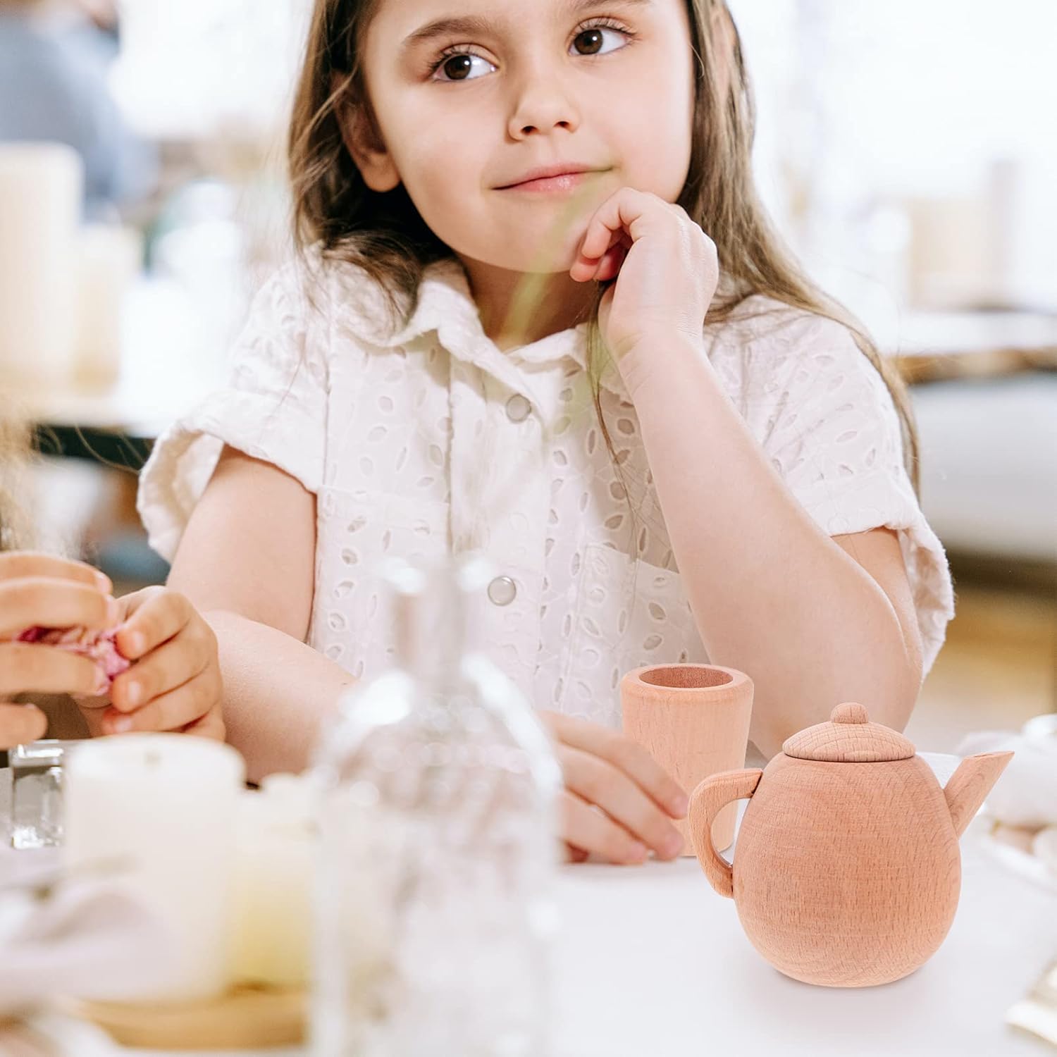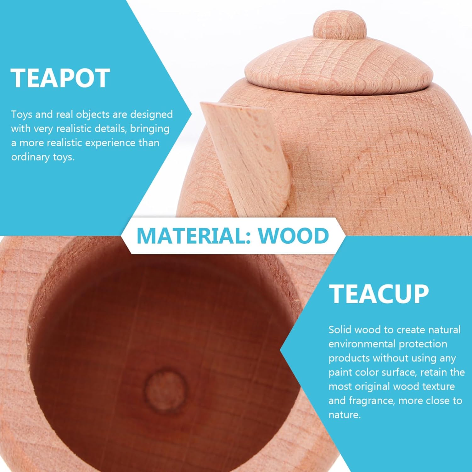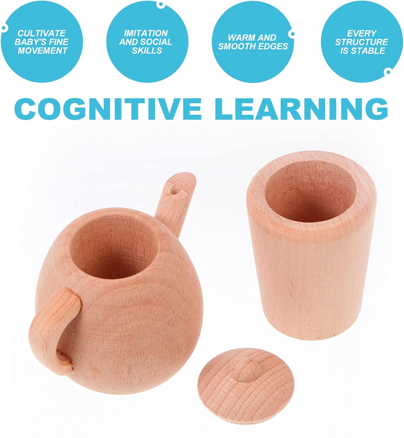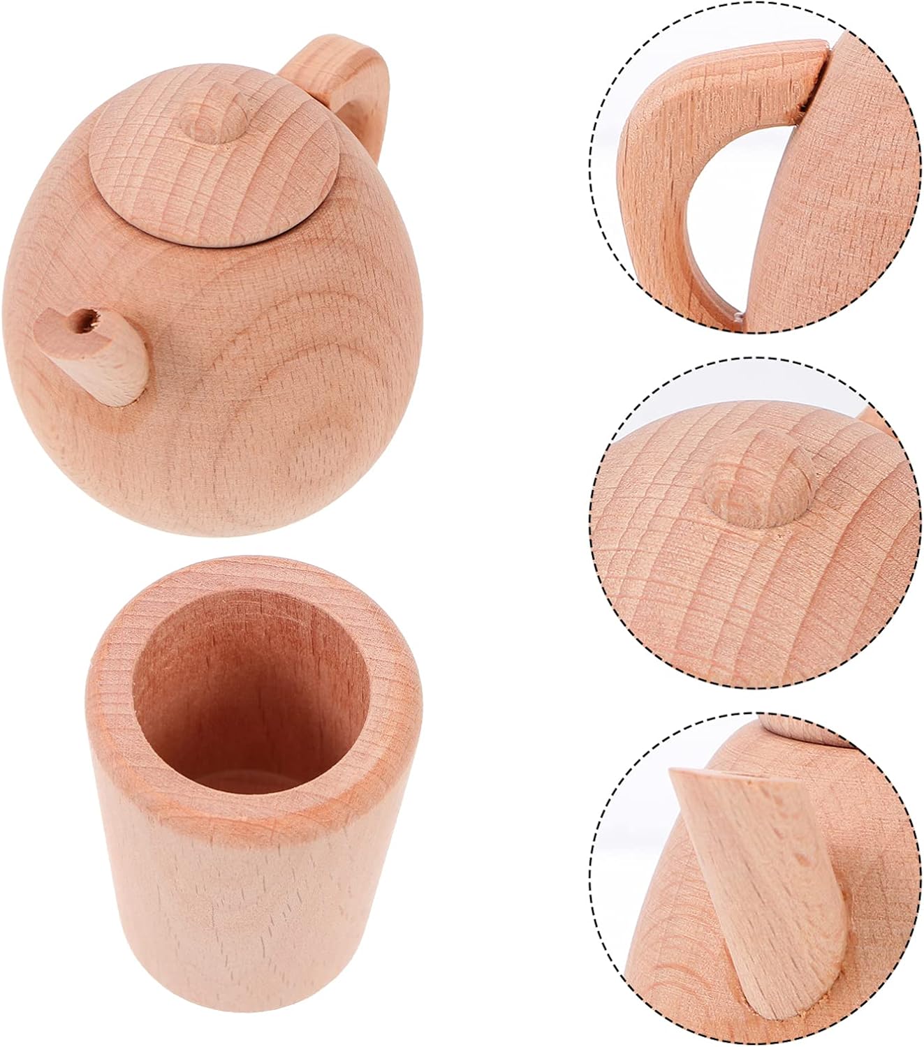 Piccola teiera: teiera con manico in legno, facile da trasportare, molto pratica, tazza da tè Teiera in legno: gioco di finzione che simula una scena di vita, sviluppando in modo completo la capacità manipolativa, bollitore per il tè Teiera: pregevole fattura, praticità e durata, stoviglie Legno: la superficie del prodotto non è colorata con alcuna vernice, che conserva la consistenza originale e la fragranza del legno, teiera tazza da tè Gioco di finzione: sviluppa la coordinazione occhio-mano, le capacità motorie fini e il gioco fantasioso, teiera simulata