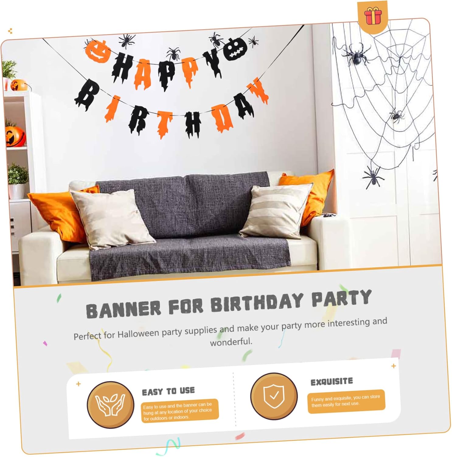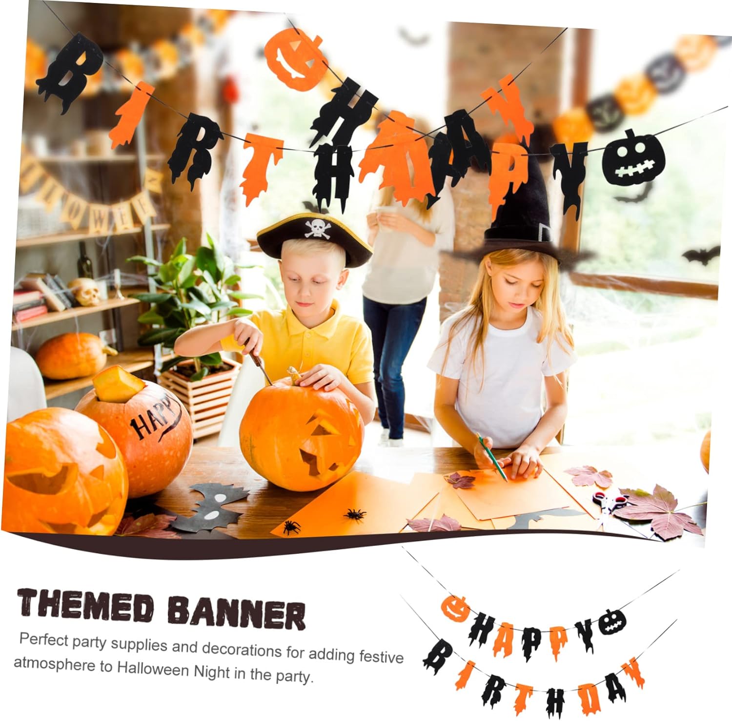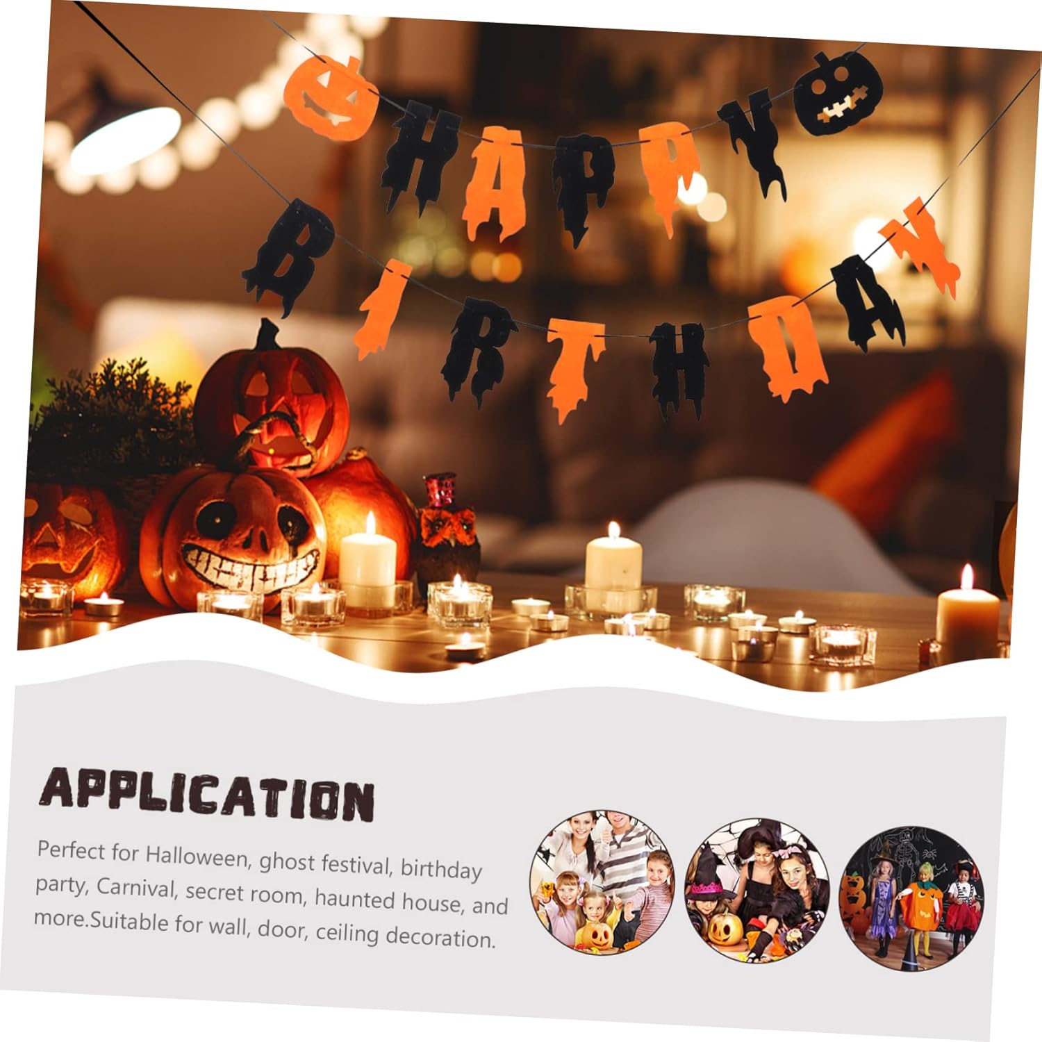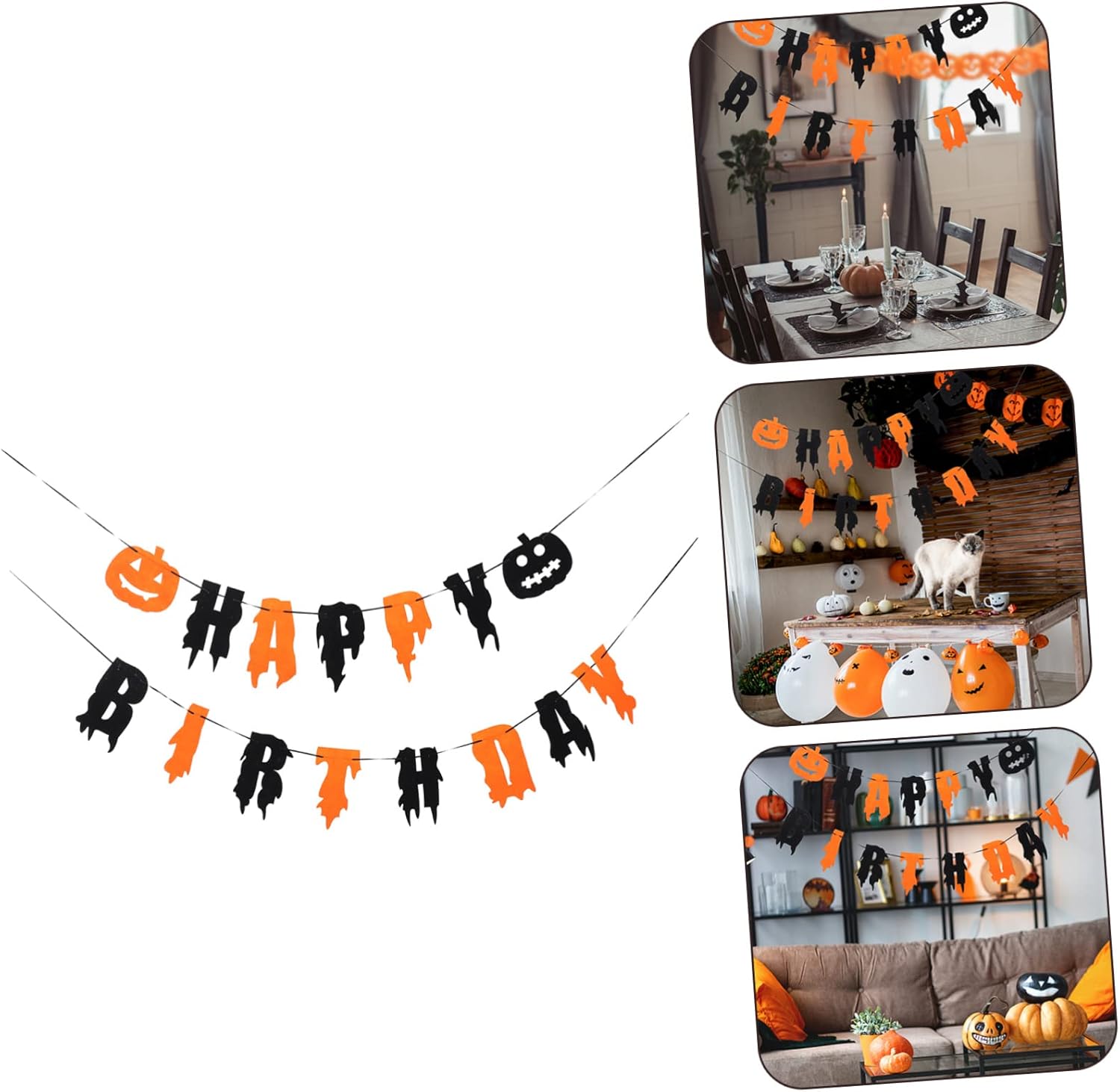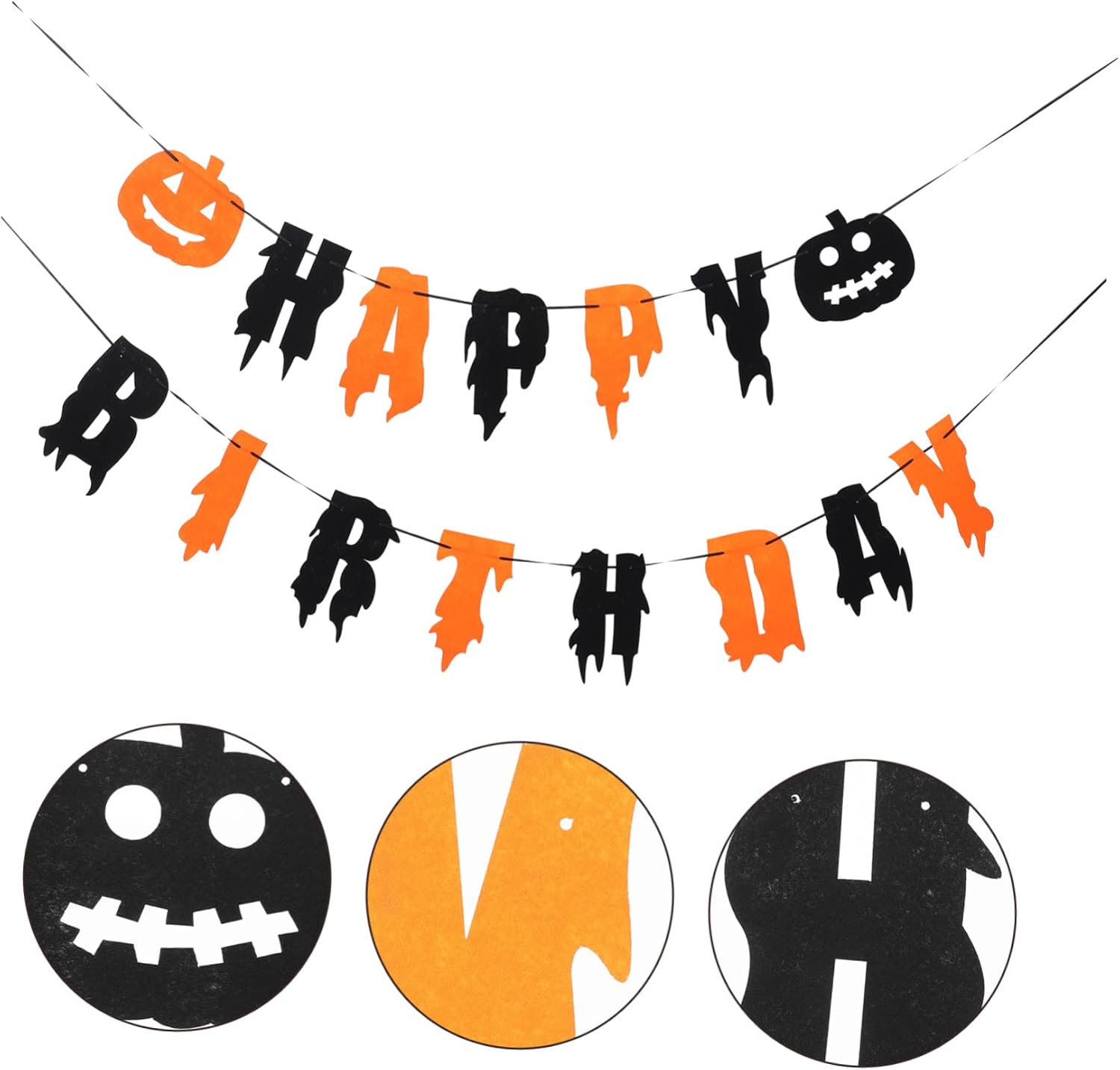 Zucca: il design semplice e creativo delle lettere è adatto come forniture e decorazioni per feste, banner di compleanno di Halloween. Banner da appendere di Halloween: contiene elementi di Halloween per creare una divertente festa di compleanno di Halloween per te, regalo per la festa. Banner per feste di compleanno: crea più personalità e crea un'atmosfera più allegra per le tue feste, stendardo. Decorazione da appendere per feste: entra nello spirito di Halloween decorando la tua casa con questa interessante decorazione pendente con striscione, la ghirlanda da soffitto di Halloween. Banner sospeso per scene di festa - Banner di Halloween con lettere di buon compleanno, per rendere la tua festa più impressionante, decorazioni di Halloween.