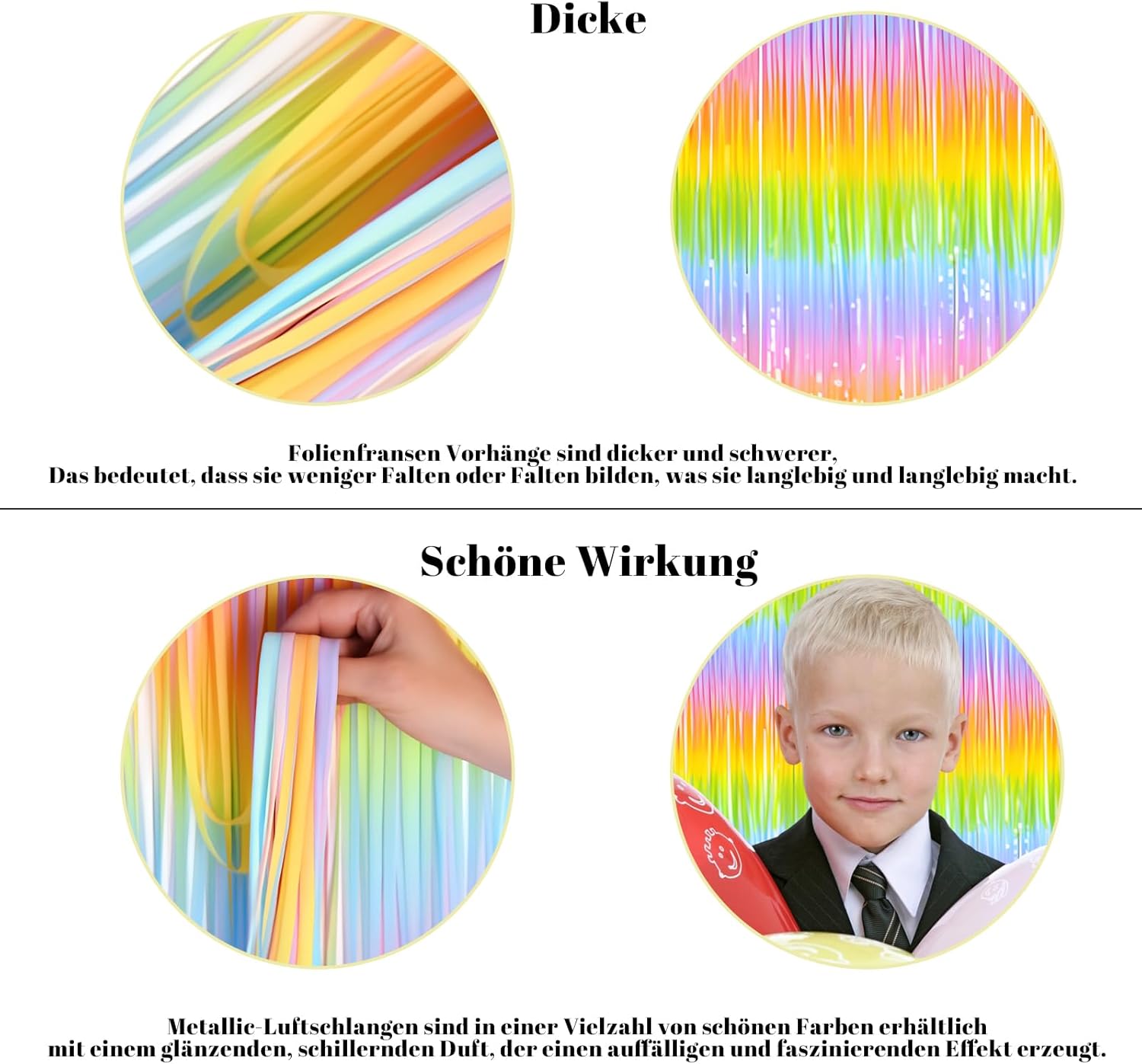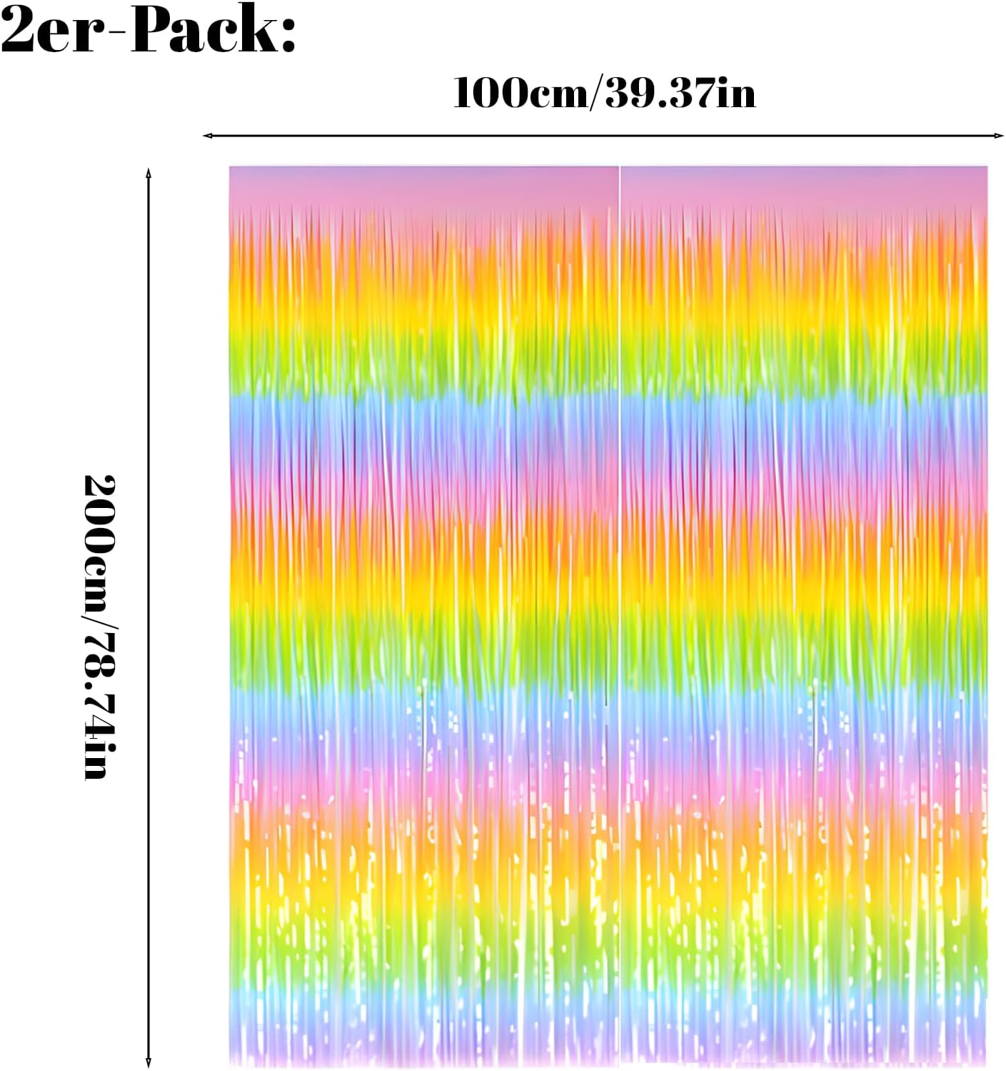 Contenuto della confezione: il set contiene 2 tende metalliche a tinsel con design arcobaleno, ciascuna delle dimensioni di 1 x 2 metri e in materiale PET. Le tende colorate arcobaleno sono realizzate in pellicola PET di alta qualità. Abbinalo a palloncini, bandiere e altre decorazioni per aggiungere una bellezza extra alla tua festa. Grazie al suo spessore maggiore, è robusto ed è perfetto come decorazione di compleanno o decorazione per palcoscenico per un'atmosfera glamour Facile da usare: strappare il retro del nastro adesivo e attaccare queste tende colorate arcobaleno sulla parte superiore della parete, finestra, tavolo, porta o in qualsiasi punto in cui si desidera illuminare la vostra festa. Avete la scelta di appendere ogni singolo stelle filanti arcobaleno in diversi punti o di sovrapporre due strati per un effetto più pieno Effetto riflettente: le tende metalliche con glitter hanno superfici lucide, color arcobaleno e riflettenti, che possono creare effetti accattivanti e incantevoli per diverse feste, come ad esempio: cocktail party, cresima, clown, feste di frutta, feste di iridescente, feste hippie party, feste gay pride, feste a tema ballermann, feste di ballerman, feste in gelato, feste in garage, feste di festa di festa giovanile Decorare le feste insieme ai bambini: i genitori possono utilizzare insieme ai loro figli queste lanterne arcobaleno regolabili per abbellire la festa in casa attraverso il fai da te e quindi rafforzare il legame familiare Molteplici feste a tema: le nostre tende colorate a tinsel sono ideali per diverse feste a tema, come baby shower, feste con unicorno, feste arcobaleno, ecc., e si adattano perfettamente a diversi oggetti di scena gonfiabili