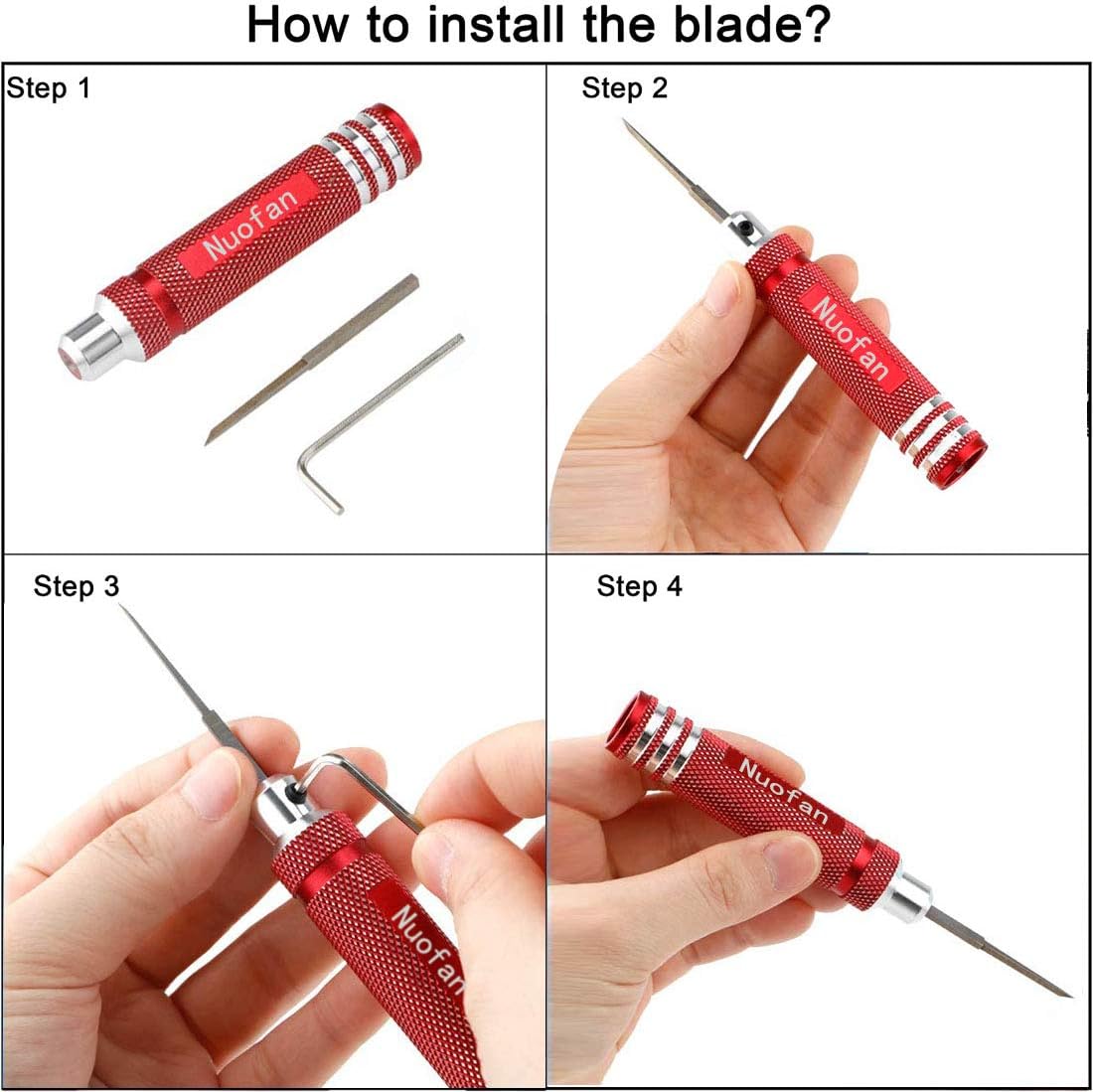 Funzioni multiple: progettate per i principianti e gli utenti avanzati. Linea di scrittura per modellista 0,2 mm 0,4 mm 0,6 mm 0,8 mm 1,0 mm con 5 lame. Puoi usarlo per kit per auto e aeroplani, bonsai, piante da potatura, taglio di fili fai-da-te, ecc. Lama durevole: lama affilata e precisa in acciaio al tungsteno di alta qualità, forte durezza, nessuna necessità di antiruggine, linea retta, linea liscia ed eccellente nitidezza. Impugnatura ergonomica: impugnatura dal design ergonomico con struttura antiscivolo, sensazione di mano confortevole e trasmissione ottimale della potenza. Uso portatile: la lama e il manico si trovano in diverse robuste scatole di plastica. Puoi portarlo ovunque e usarlo in qualsiasi momento. Elenco dei pacchetti: 1 manico antiscivolo in lega di alluminio, 5 dimensioni della lama: 0,2/0,4/0,6/0,8/1,0 mm e 1 chiave a brugola.