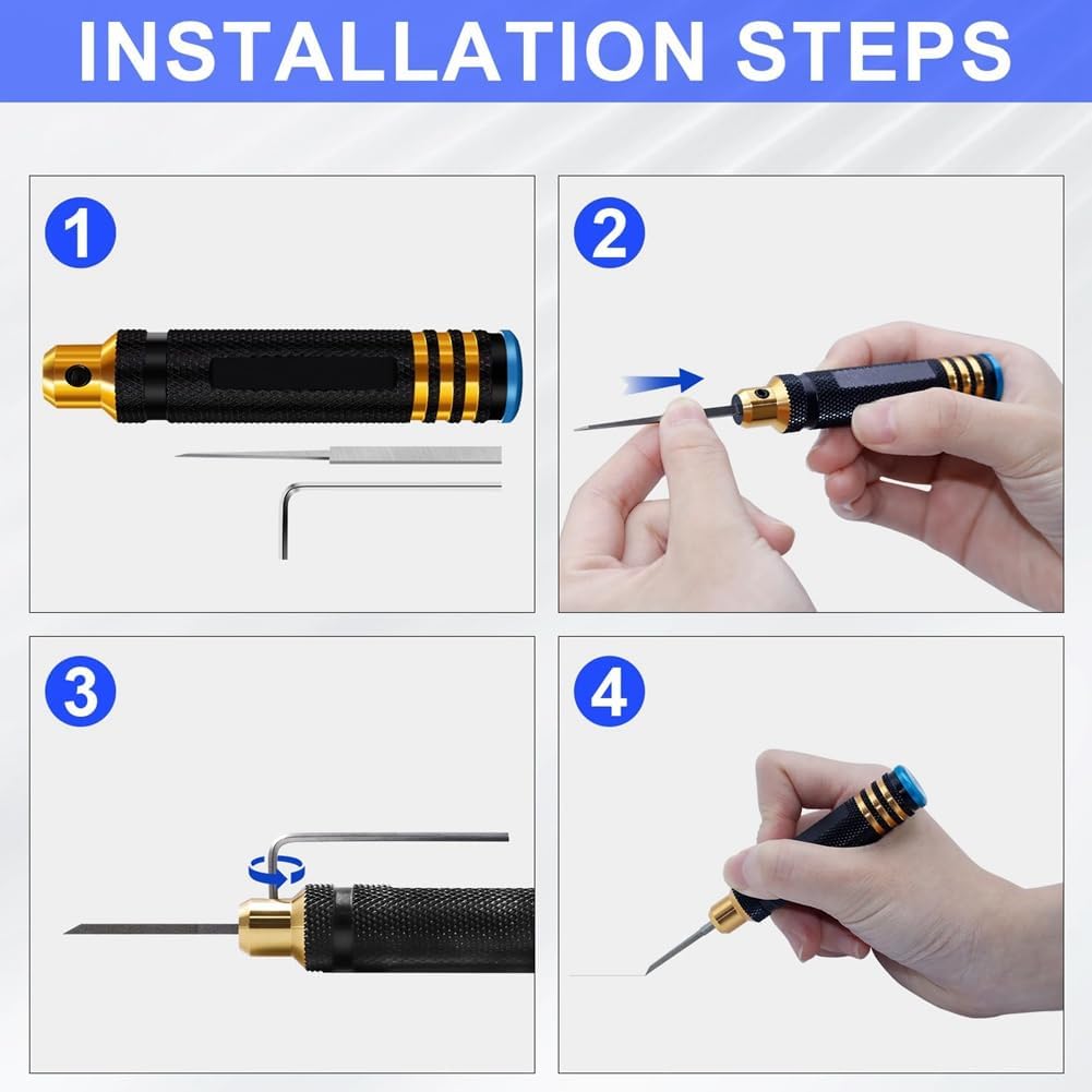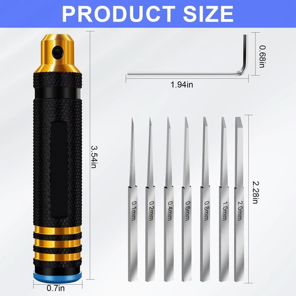 La per scriba da modellismo è realizzata in acciaio al tungsteno di alta qualità con elevata durezza, elevata all'usura, fornendo una dritta e liscia e un'eccellente nitidezza. La maniglia del tracciatore della del pannello è realizzata in materiale in lega di alluminio, antiscivolo, sensazione di mano confortevole, molto leggera. Lo strumento per tracciatura del modello principale ha 7 lame di diverse dimensioni (0,1/0,2/ 0,4/ 0,6/ 0,8/ 1,0 mm/2,0), ciascuna con contrassegno laser e dotati di nastro per tracciatura da 3 mm x 20 m per aiutare a realizzare linee dritte linee più facili. La di tracciatura per modelli progettata per i costruttori di kit di modelli da principianti ad avanzati. Il tracciatore da modellismo adatto per real grade, , pg, mg, kit in metallo, kit per auto e aerei, bonsai, piante da taglio, taglio a filo DIY e altro ancora! Utensile da taglio per hobby, puoi imballare la e il manico in diverse robuste custodie di plastica. non vuoi ritrarre la testa della taglierina, puoi usare il cappuccio in gomma per coprirla, che protegge la testa della taglierina da eventuali danni e ne facilita l'uso successivo. Puoi portarlo ovunque e usarlo vuoi. Gli strumenti del modello, mini e leggeri. Il set di coltelli artigianali viene fornito con 1 cappuccio in gomma, mascheratura per intaglio, 1 chiave esagonale, 1 manico antiscivolo in lega di alluminio, 7 lame di diverse dimensioni (0,1/0,2/ 0,4/ 0,6/ 0,8/ 1,0 mm/2,0 mm) soddisfa totalmente le esigenze dei modellisti.