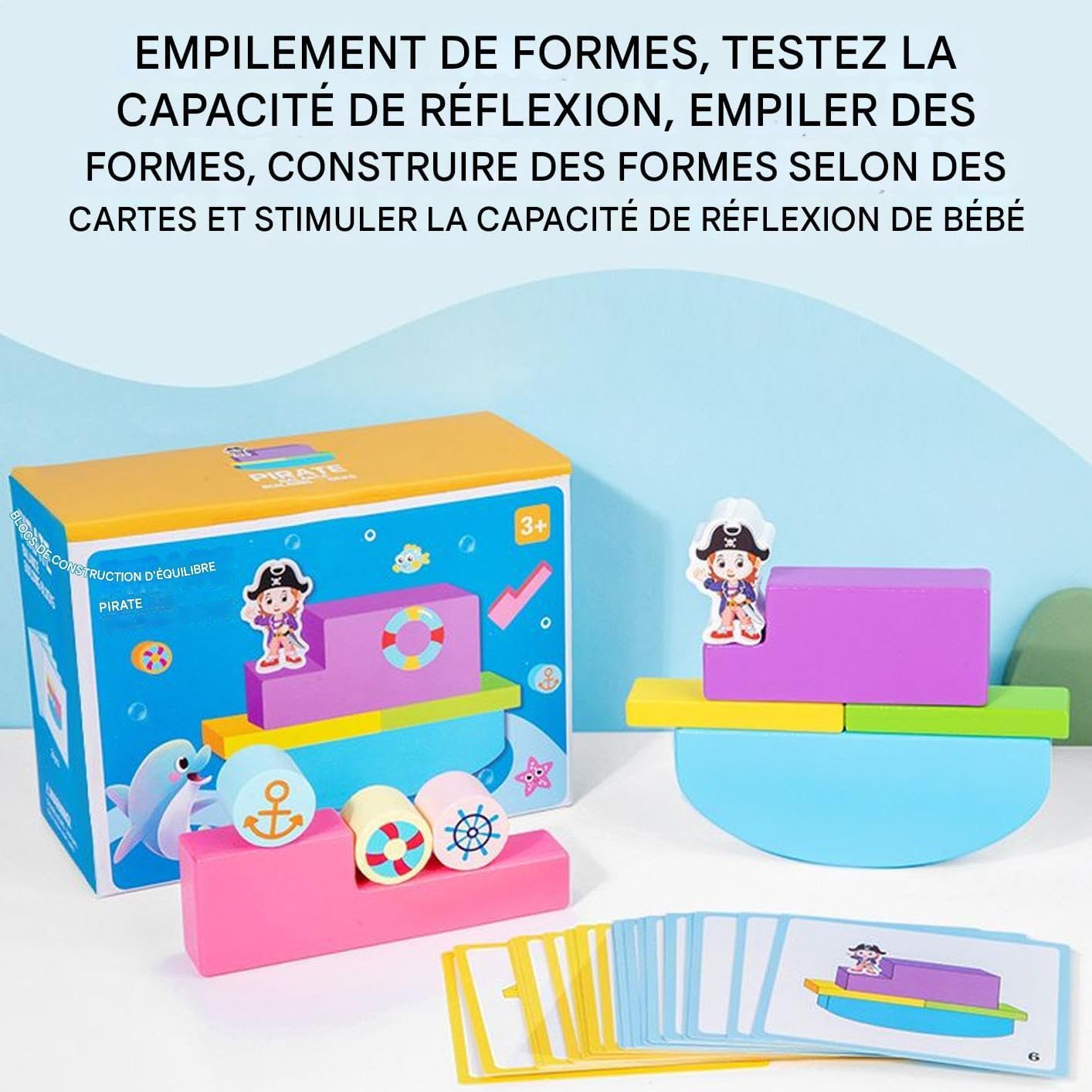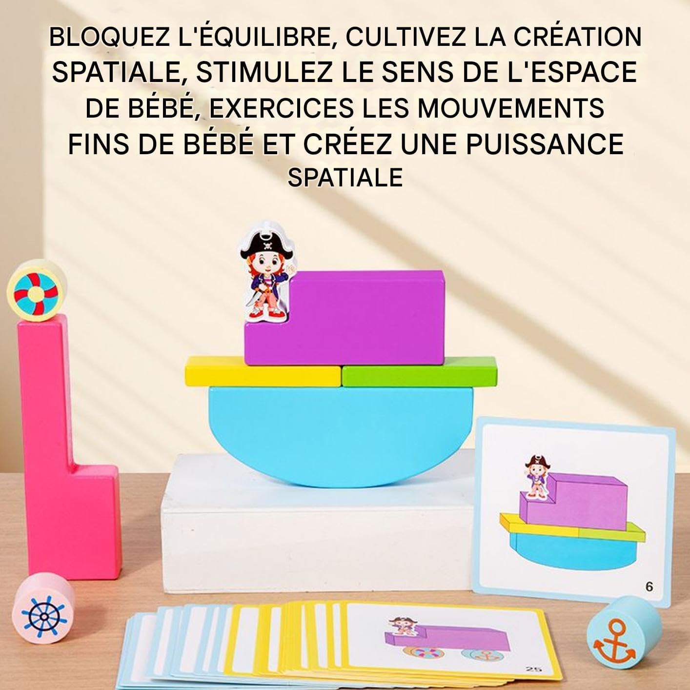 Gioco fantasioso: con i suoi forzieri del tesoro e le sue vele, questo set suscita interesse esplorativo attraverso una scena nautica coinvolgente. Moduli geometrici vivaci e multicolori catturano l'attenzione per un divertimento di costruzione più creativo. Divertimento di costruzione immaginario: incoraggia la consapevolezza spaziale tridimensionale e il pensiero creativo con componenti ispirati alle navi pirata, offrendo un design aperto che supporta lo sviluppo di capacità di risoluzione dei problemi durante il gioco interattivo. Giocattolo senza rischi: struttura in legno massello naturale con superfici perfettamente lisce, elementi anti-deglutizione integrati nel design per incoraggiare il gioco attivo in completa tranquillità, combinando sicurezza e longevità eccezionale. Controllo dei muscoli della mano: sviluppa le capacità motorie attraverso la manipolazione precisa dei blocchi. Promuove l'equilibrio e l'associazione, stimolando la coordinazione visiva e fornendo un'esperienza divertente e arricchente per i giovani. Sviluppo attraverso il gioco: promuove la crescita cognitiva e il pensiero logico attraverso l'identificazione di colori e forme. Incoraggia lo sviluppo intellettuale dei giovani attraverso esperienze di gioco educativo con i blocchi.