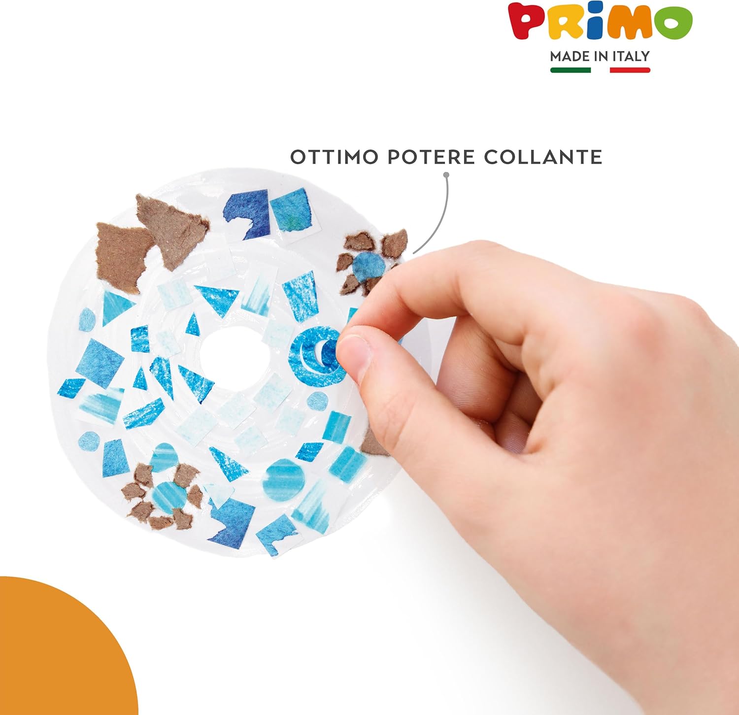 COLLA AD ACQUA TRASPARENTE CON TAPPO DOSATORE PER CARTOLERIA E MATERIALE SCOLASTICO: Il tappo dosatore assicura un utilizzo pratico e agevole, riducendo sprechi e garantendo una lunga durata del prodotto. Questo prodotto a base d'acqua è privo di solventi, sicuro da utilizzare specialmente in ambienti domestici o scolastici ALTO POTERE COLLANTE, SICURA SENZA SOLVENTI E GLUTEN FREE: Formulata specificamente per l'adesione su carta, il prodotto offre un alto potere collante. Per ottenere un ottimo potere adesivo, è consigliabile lasciare asciugare completamente il prodotto FACILMENTE RIBAGNABILE, CREA EFFETTI LUCIDI PER LAVORETTI ARTISTICI: Una volta asciutta, la colla forma uno strato lucido e brillante che migliora l'aspetto dei lavoretti artistici. Poiché a base d'acqua, il prodotto è facilmente ribagnabile, dunque gocce o macchie accidentali possono essere rimosse con acqua semplice, senza l'uso di solventi aggressivi VERSATILE E MULTIUSO PER TANTE APPLICAZIONI ARTISTICHE: La trasparenza della colla ad acqua, che non altera il colore o l'aspetto dei materiali a cui viene applicata, consente di sfruttare appieno la propria creatività. Può essere utilizzata per creare effetti speciali o per aggiungere elementi traslucidi ai progetti artistici PRIMO BY MOROCOLOR, QUALITÀ MADE IN ITALY: I colori fanno parte della nostra tradizione di famiglia, iniziata nel 1933 con un gessetto bianco da lavagna. Da oltre 90 anni trasmettiamo l'equilibrio perfetto tra creatività e responsabilità con prodotti per bambini e artisti di alta qualità, sicuri e sostenibili, coniugando tradizione e innovazione e promuovendo il valore del Made in Italy