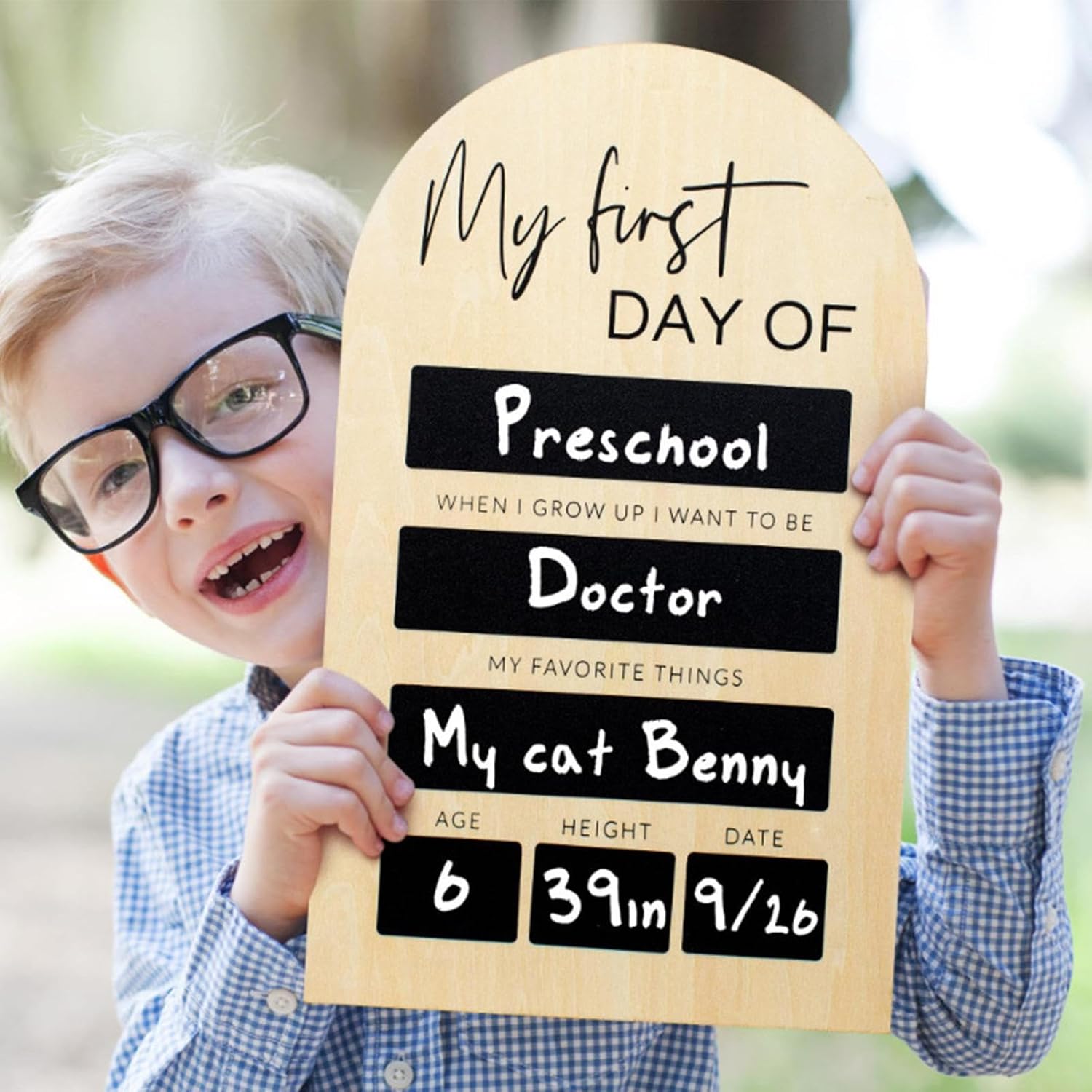 Sicurezza Pratica: Bordi levigati anti-scheggia, struttura stabile concepita per sicurezza e praticità con manutenzione regolare immediata senza complicazioni Contesto Ideale: Porta gioia alle routine scolastiche come accessorio fotografico, per commemorare primi giorni in casa, raduni scolastici o attività in aula con stile naturale Design Viaggio Semplice: Ideale per cornici o supporti, migliora i momenti fotografici con design leggero e portatile, rendendo sospensione o esposizione facile e immediata Ricordo Scolastico: Migliora le foto del primo giorno con un cartello gessetto progettato per personalizzazioni, spazio per nome e disegni creativi per rendere ogni ricordo unico Momenti Divertenti: Bambini esprimono hobby personali con disegni o testi su superfici cancellabili creando occasioni di gioco interattivo e condivisione spontanea di interessi tra amici