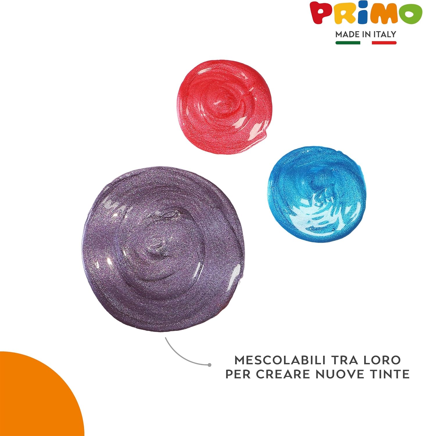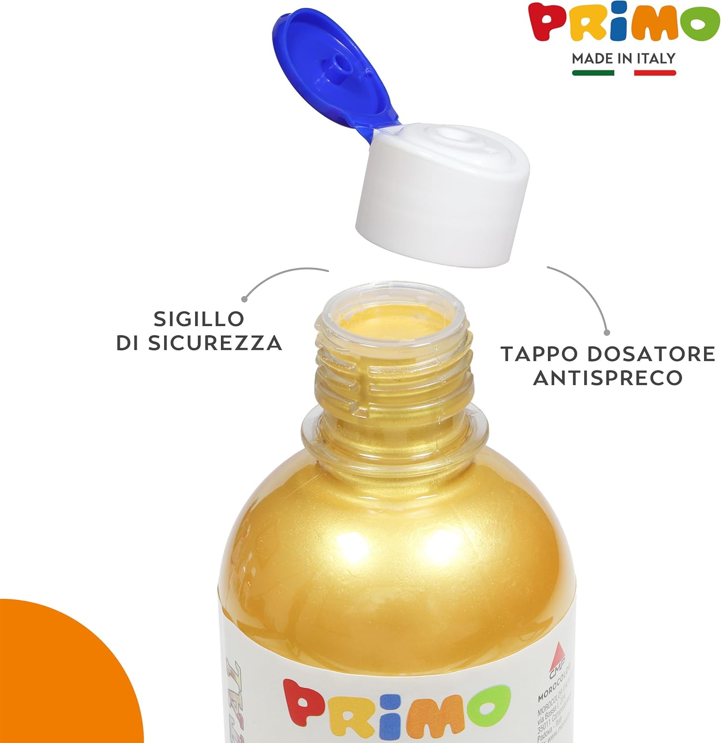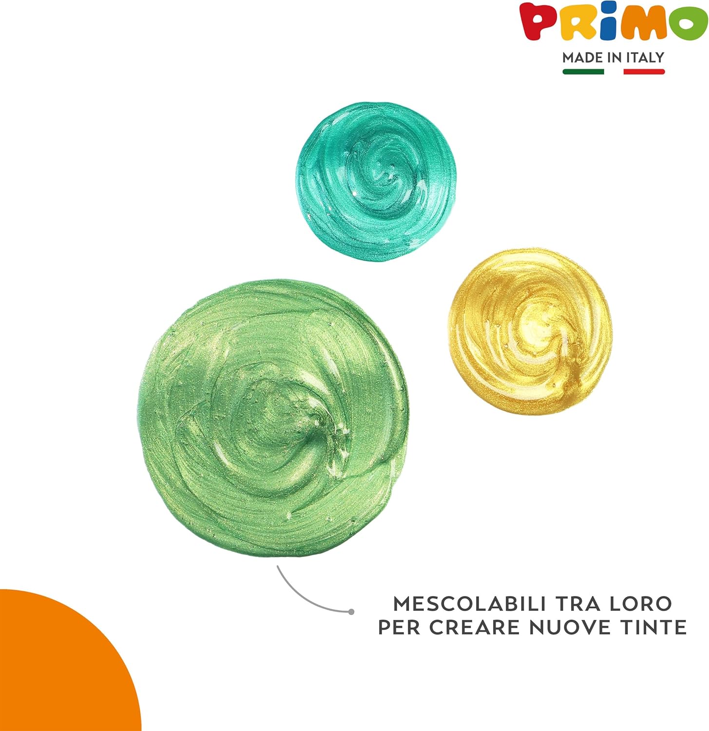 TEMPERE LAVABILI AD ACQUA: Prodotto a base d’acqua realizzato con energia pulita in confezioni riciclabili e riutilizzabili. Compatibile con tutti i prodotti ad acqua delle linee PRIMO PER LAVORETTI ARTISTICI ED EFFETTI CREATIVI: Queste tempere offrono effetti cromatici brillanti che aggiungono un tocco di lucentezza e raffinatezza ai progetti artistici. I colori consentono stesure coprenti e sovrapposizione di strati, garantendo una pennellata uniforme e ottimi risultati di brillantezza e vivacità dei toni per effetti speciali e metallizzati VERSATILE PER STOFFA, VETRO E ALTRE SUPERFICI: Prodotto utilizzabile su una vasta gamma di superfici, tra cui carta, cartoncino, legno, stoffa, vetro, terracotta, metallo e plastica. Possono essere fissate con vernice o fissativo idoneo per garantire una maggiore durabilità e resistenza nel tempo USO FACILITATO E ANTISPRECO CON TAPPO DOSATORE: Il prodotto è di prima qualità e pronto all'uso in bottiglie dotate di tappo dosatore per una distribuzione controllata, precisa e uniforme del colore. Rimuovere subito le macchie secondo istruzioni. Rimuovere il sottotappo di sicurezza prima dell’uso PRIMO BY MOROCOLOR, QUALITÀ MADE IN ITALY: I colori fanno parte della nostra tradizione di famiglia, iniziata nel 1933 con un gessetto bianco da lavagna. Da oltre 90 anni trasmettiamo l'equilibrio perfetto tra creatività e responsabilità con prodotti per bambini e artisti di alta qualità, sicuri e sostenibili, coniugando tradizione e innovazione e promuovendo il valore del Made in Italy