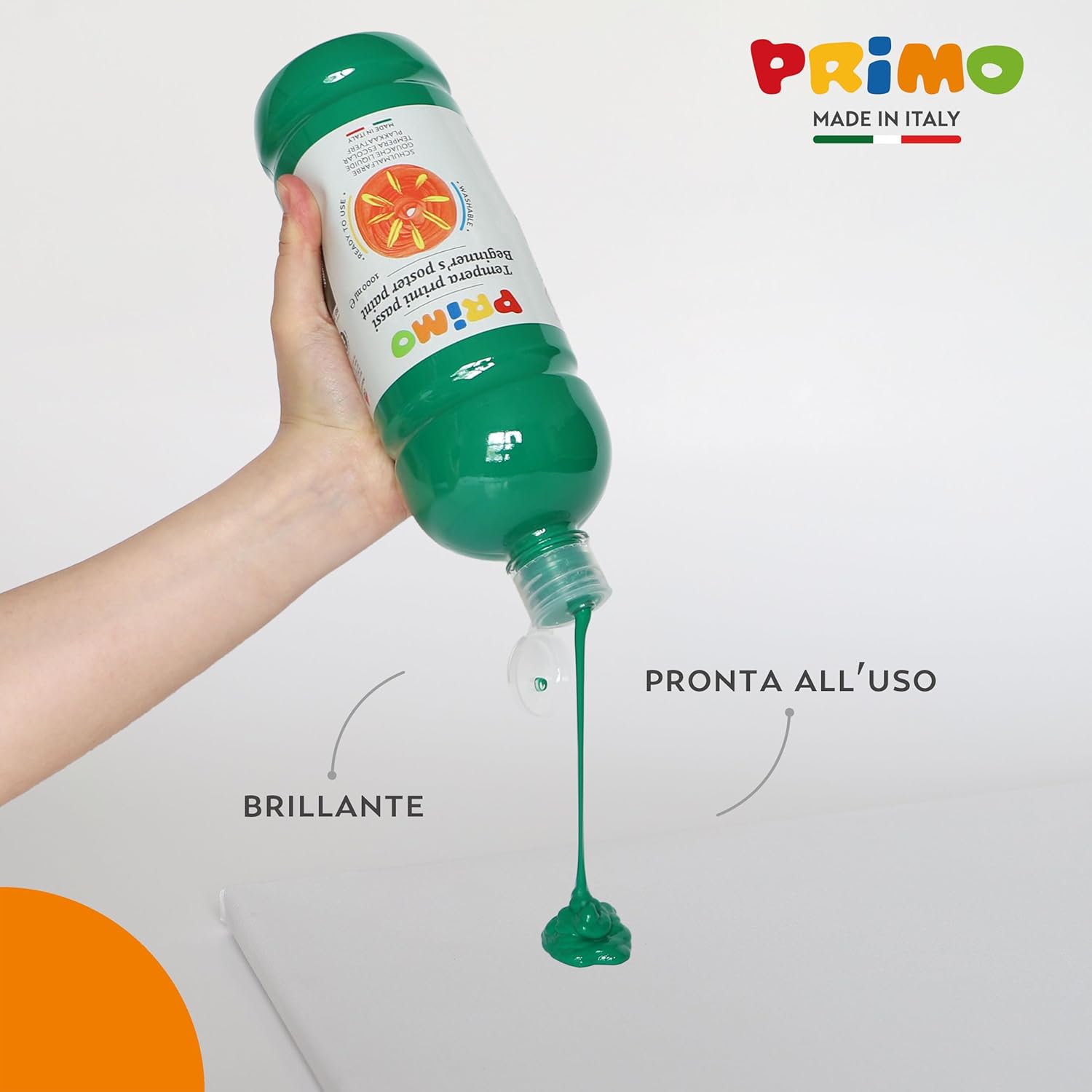 TEMPERA PRIMI PASSI PER PRINCIPIANTI E GIOVANI ARTISTI: Tempera dotata di tappo dosatore, perfetta per chi si avvicina per la prima volta a questo tipo di pittura. Facilita l'apprendimento della tecnica pittorica offrendo stesure coprenti che stimolano la creatività fin dalle prime pennellate VERSATILITÀ SU DIVERSE SUPERFICI: Adatta a carta, cartoncino, cartone, legno, stoffa, vetro, terracotta, metallo e plastica. La sua formula aderisce bene e può essere fissata con vernici specifiche, ampliando le possibilità creative oltre i limiti tradizionali COLORI VIVACI E FACILMENTE MISCIBILI: Questa gamma di tempera permette di esplorare un'infinità di nuove tonalità grazie alla facile miscelabilità dei colori. Anche i giovani artisti possono sperimentare e personalizzare le loro opere, ottenendo effetti visivi accattivanti con sfumature uniche FACILE DA PULIRE E SICURA: Con un'ottima lavabilità, questa tempera è pensata per i più giovani, garantendo una pulizia semplice da tessuti seguendo le istruzioni sul packaging. Questo permette ai piccoli artisti di concentrarsi sulla creatività senza preoccupazioni per eventuali disordini PRIMO BY MOROCOLOR, QUALITÀ MADE IN ITALY: I colori fanno parte della nostra tradizione di famiglia, iniziata nel 1933 con un gessetto bianco da lavagna. Da oltre 90 anni trasmettiamo l'equilibrio perfetto tra creatività e responsabilità con prodotti per bambini e artisti di alta qualità, sicuri e sostenibili, coniugando tradizione e innovazione e promuovendo il valore del Made in Italy