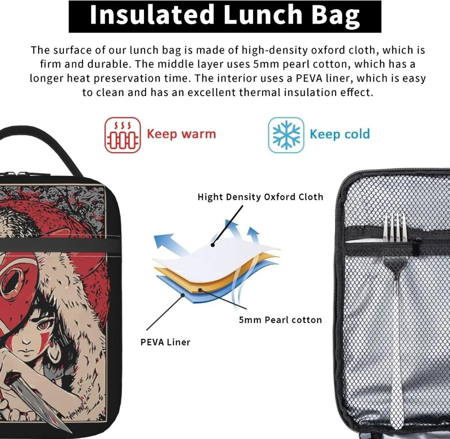 Principessa Mononokes Borse per Il Pranzo Isolate termicamente per la Scuola Borse per contenitori per Alimenti Portatili Scatola per Alimenti Termica