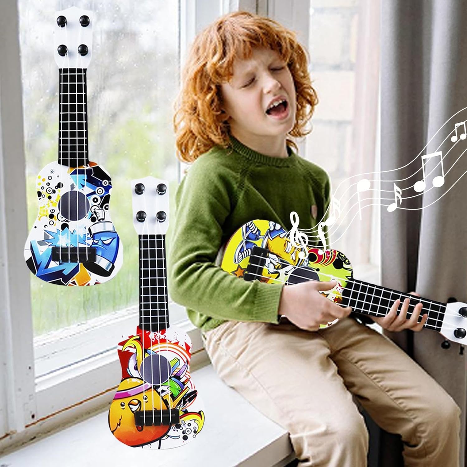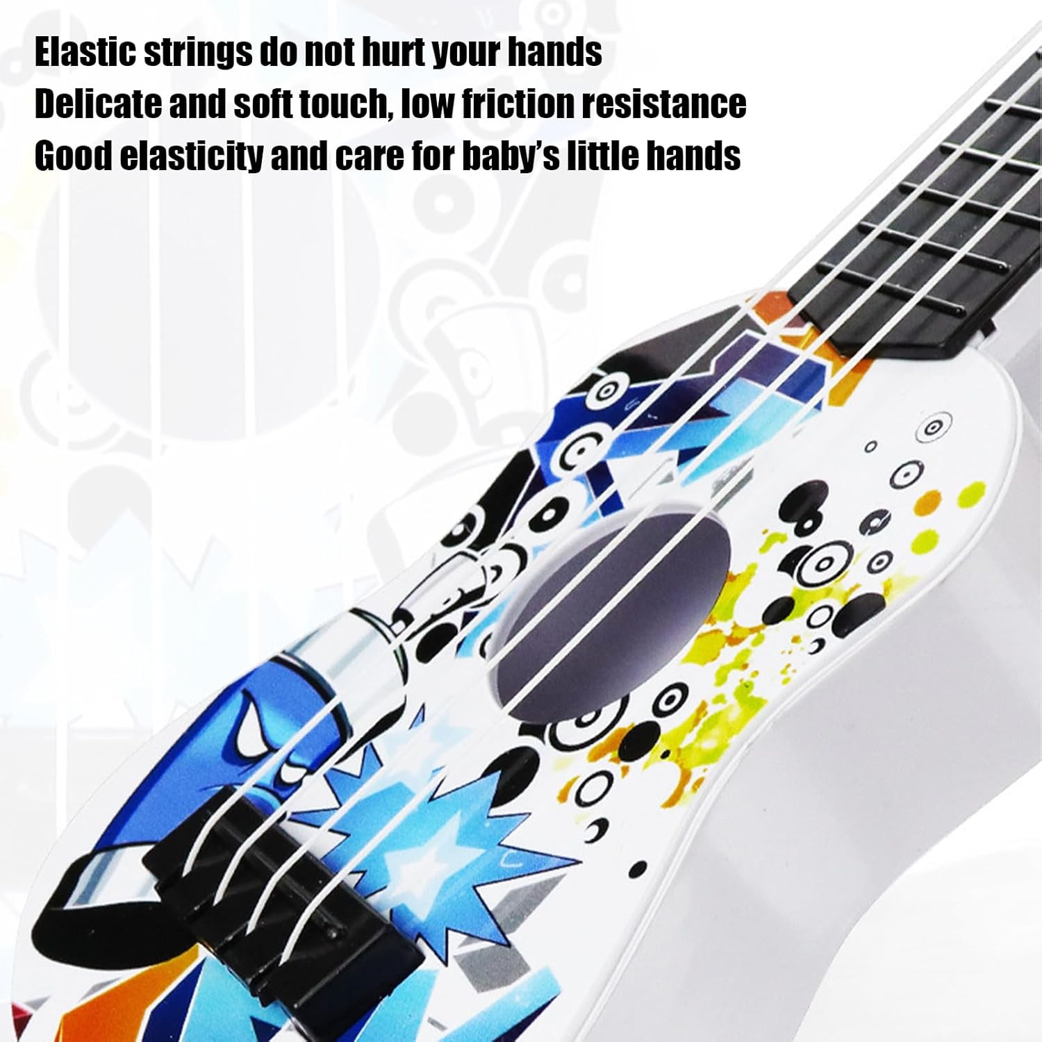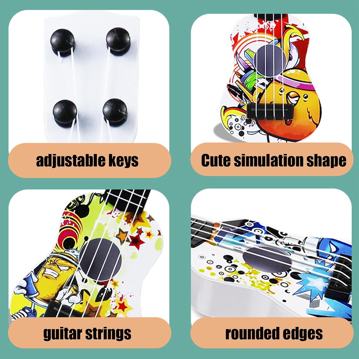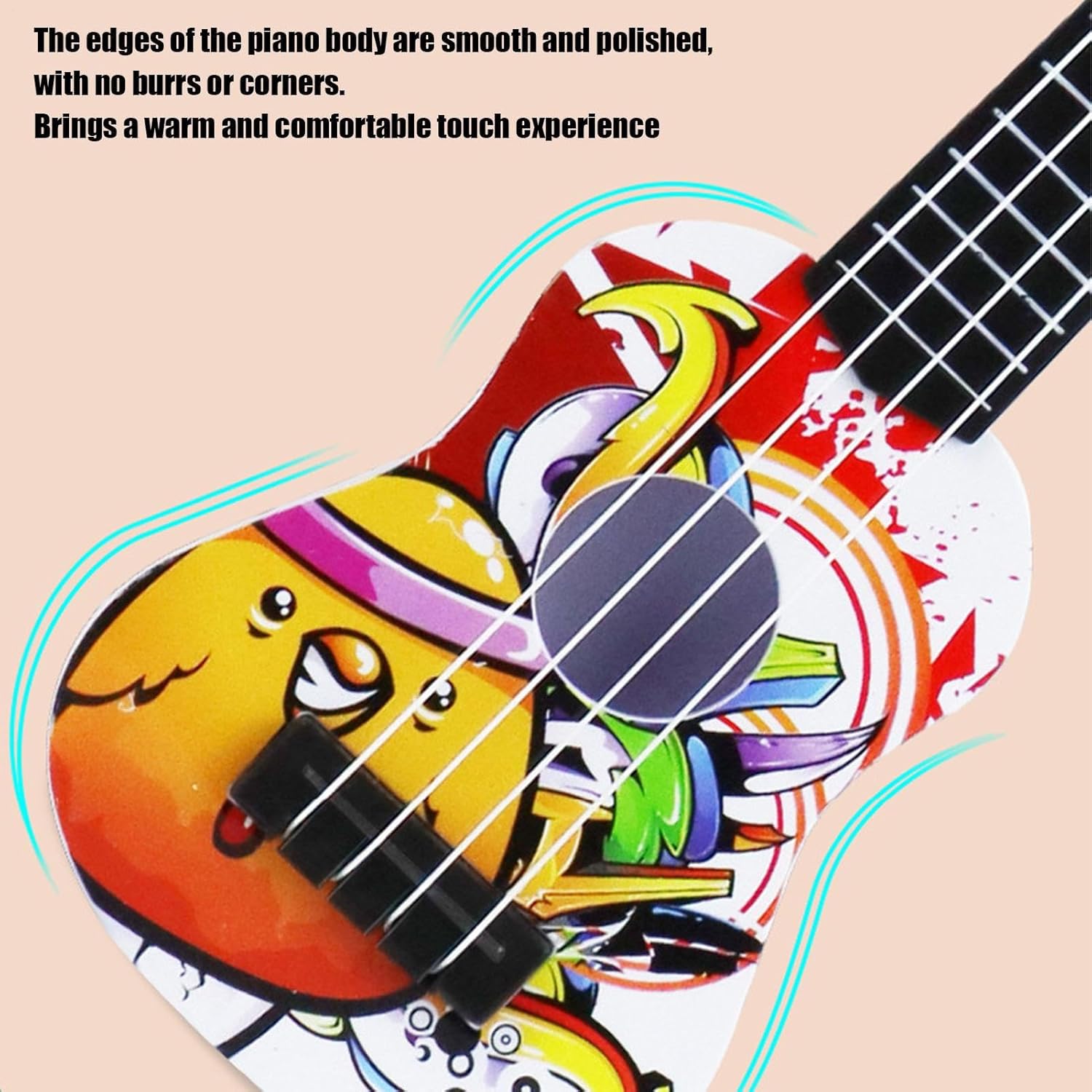 Effetti visivi realistici: realizzato con una trama che imita le venature del legno, questo ukulele per bambini non solo accuratamente l'aspetto degli strumenti reali, ma stimola anche l'interesse per la musica e l'arte. Design ergonomico: le corde in nylon morbido al proteggono le dita delicate mentre il corpo leggero consente una facile maneggevolezza, rendendolo lo strumento per i bambini che imparano a suonare. Materiali antiusura: costruito con materiali ecologici, questo ukulele per bambini può resistere all'uso quotidiano grazie alla sua struttura robusta e alle superfici antiusura. Un compagno musicale affidabile e durevole per un divertimento ancora maggiore. Coltivare giovani musicisti: sviluppare la coordinazione, il senso del ritmo e la consapevolezza del suono e modellare un amore permanente per la musica attraverso l'educazione all'illuminazione musicale. Regalo pratico: l'ukulele dei nostri bambini viene fornito in una confezione regalo, facilitando le interazioni genitore-figlio e creando calde esperienze musicali familiari. per festeggiare compleanni e festività.
