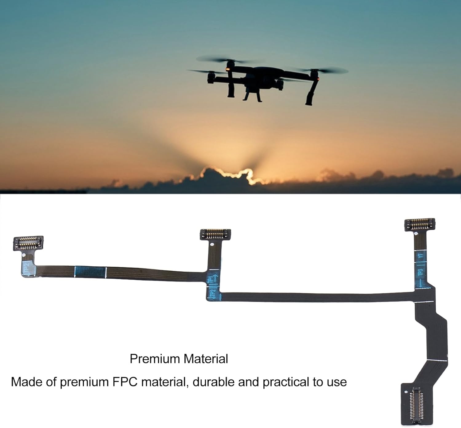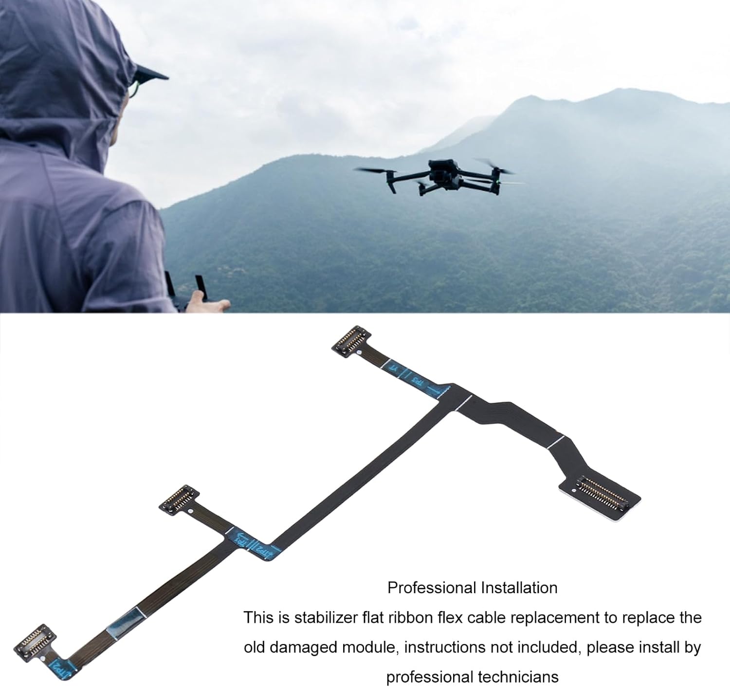excellent Fit for Pro: This flat ribbon cable is specifically designed for the Pro stabilizer, ensuring a seamless installation and optimal performance. Premium FPC Material: Made of high-quality FPC material, this cable is flexible, durable, and long-lasting, withstanding repeated bending and folding. Easy Replacement: No need to replace your entire drone when the stabilizer cable is damaged. Simply replace the damaged cable with this high-quality replacement. Professional Standard: This cable meets professional standards, with precise and shape, ensuring compatibility and reliability. Package Contents: Includes 1 x Drone Flat Ribbon Cable, specifically designed for the Pro stabilizer.