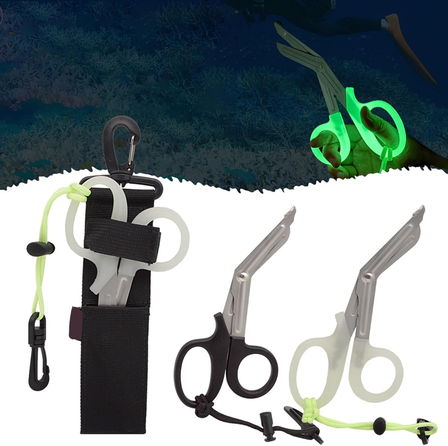Con bordi affilati, queste forbici di emergenza possono tagliare rapidamente grovigli di corda, rete da pesca o alghe durante le emergenze subacquee. per affrontare problemi improvvisi con attrezzatura subacquea come cinture. Le forbici sono dotate di una comoda corda per appendere e di fibbie a sgancio rapido che possono ruotare di 360 gradi. Realizzate in acciaio inossidabile, queste forbici portatili non sono solo attraenti, ma anche resistenti alla corrosione dell'acqua di mare. La confezione include: 1 paio di forbici da immersione