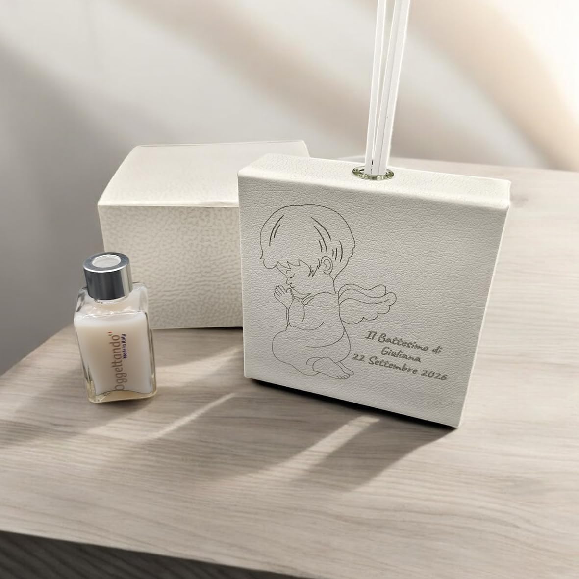 Con questa collezione di profumatori da ambiente potrai scegliere il soggetto più adatto al tuo Evento (bomboniere profumatori, laurea, fiori, farfalla, cresima, 18 anni). All’interno dell’elegantissima scatola, troverete quindi oltre al profumatore, la bottiglietta dell’essenza, le bacchette. Misura 11x11x 4. Profumatore in Ecopelle, PU. IDEATO e REALIZZATO DA OGGETTANDO la PASSIONE e L’ABILITA’ dei Nostri Grandi MAESTRI ARTIGIANI sono la GARANZIA dei nostri prodotti MADE IN ITALY. Per qualsiasi informazione sui nostri prodotti ci contatti via mail o telefonicamente al numero +39 0835330939 oppure via WhatsApp al +39 3293888747 – +39 3396213725