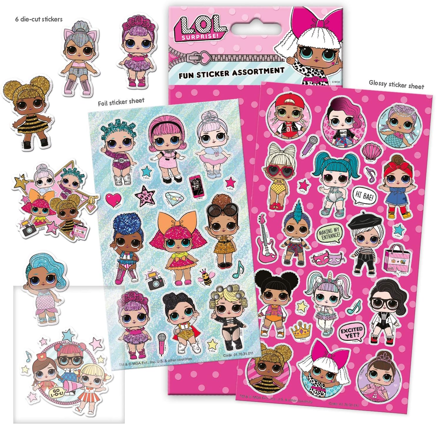 PRODOTTO UFFICIALE - Confezione assortita ufficiale di alta qualità, con le bambole L.O.L preferite da tutti. Sorpresa! Bambole ed etichette Ampia selezione - tre diversi tipi di adesivi - incluso un foglio di adesivi grande, un foglio di adesivi laminati e un sacchetto di adesivi fustellati personalizzati. Apprendimento e creazione: attività perfetta per i mignoli e ideale per migliorare la destrezza, la coordinazione e incoraggiare il gioco artigianale. Gli adesivi possono essere utilizzati per decorare libri o borse da festa o per creare scene ed esposizioni divertenti. Regali e regali: è un fantastico regalo di compleanno, un regalo di Natale o un regalo per le feste. Che si tratti di un'occasione speciale, di una ricompensa per un buon comportamento o semplicemente di un bel regalino, i bambini adorano gli adesivi! Adesivi riutilizzabili: gli adesivi laminati sono riutilizzabili, privi di acidi e non si strappano dalle superfici non porose. Gli adesivi di carta sono rimovibili da superfici non porose.