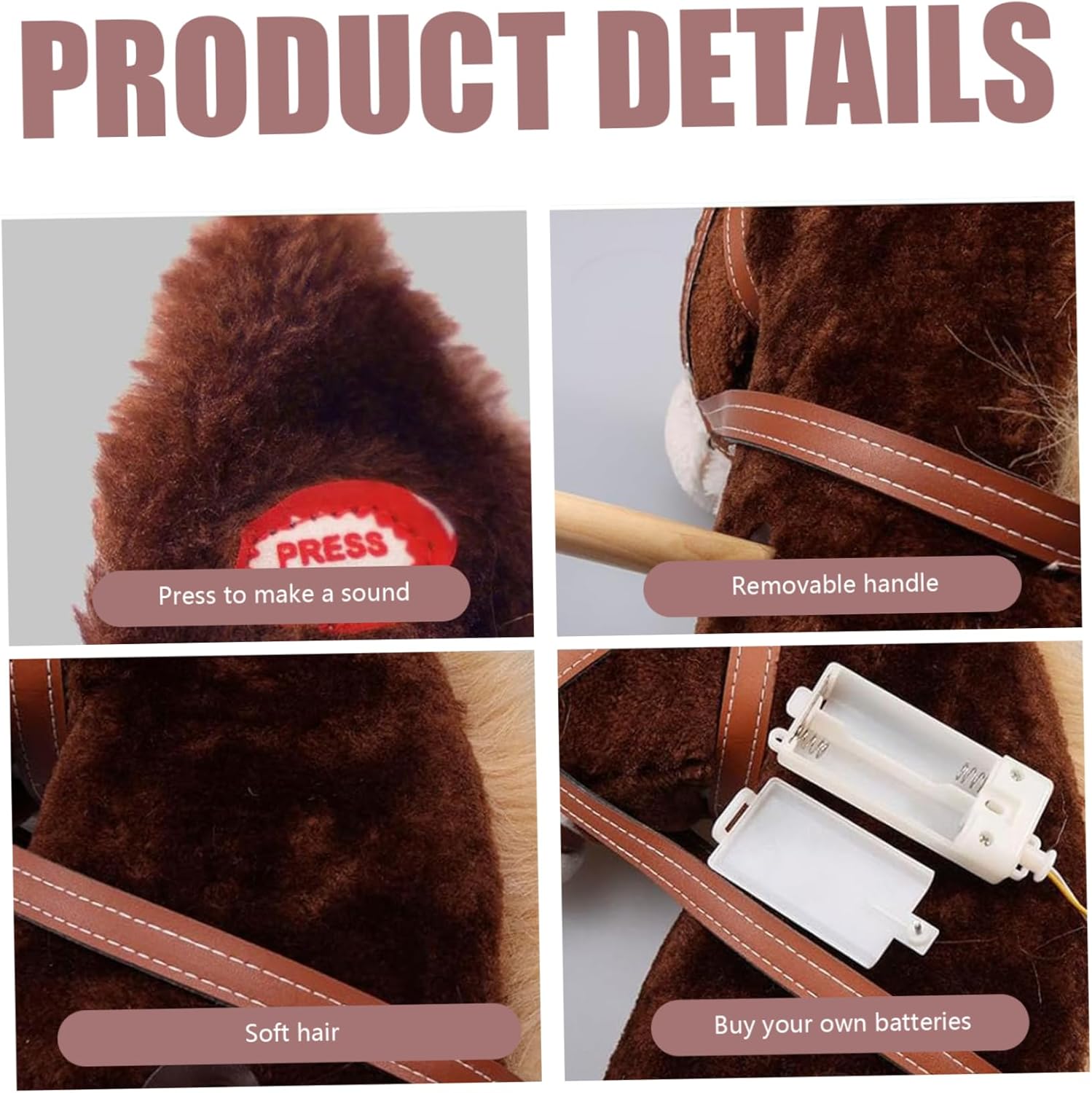 Robusto palo in legno con ruote: con un palo di legno e ruote, questo cavallo stick offre stabilità e un facile movimento per un gioco energico. Il design staccabile in due parti consente una facile conservazione e assemblaggio, mentre la maniglia senza turno garantisce una presa sicura per una guida sicura. Regalo ideale per ogni occasione: questo cavallo da stick è un ottimo regalo per compleanni, Halloween o altre occasioni speciali ... Intrattenere effetti sonori, il suo materiale morbido e il suo design staccabile lo rendono un giocattolo caro che incoraggia il piacere fantasioso e attivo Effetti sonori realistici: questo cavallo stick dà vita a un gioco fantasioso con autentici suoni di cavalli, tra cui galoppo e quartiere ... di più, suona una canzone da cowboy per migliorare il piacere ... queste funzionalità sonore interattive lo rendono un giocattolo concorrente per bambini avventurosi. Materiale morbido morbido: realizzato con materiali di pelle corta adatti alla pelle, questo cavallo hobby garantisce un'esperienza di guida morbida e confortevole. I bambini adoreranno la sua sensazione comoda mentre sono coinvolti in ore di gioco fantasioso senza disagio. Altezza perfetta per i giovani corridori: in piedi 39 pollici di altezza, questo cavallo da bastone è perfettamente dimensionato per i bambini ... trovano in casa o dalla razza all'aperto, i bambini apprezzeranno la libertà e l'eccitazione che questo cavallo guida.