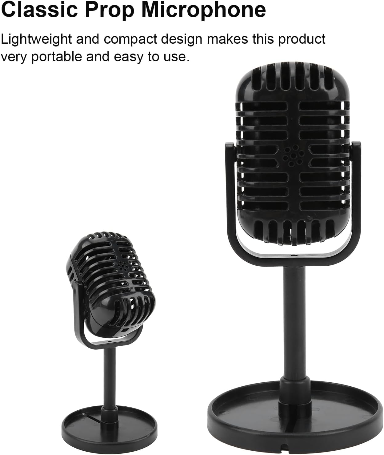 Il prodotto può essere utilizzato per regali, oggetti di scena fotografici, giocattoli per bambini, decorazioni, ecc. Articoli di microfono altamente simulati, non un microfono reale, luce e portatile. Il guscio di plastica del prodotto è molto simile a un microfono reale ma è un sostegno, molto realistico. Questo prodotto è realizzato in materiale plastico di buona qualità, molto resistente e robusto, pronto per l'uso a lungo termine. Il design leggero e compatto rende questo prodotto molto portatile e facile da usare.