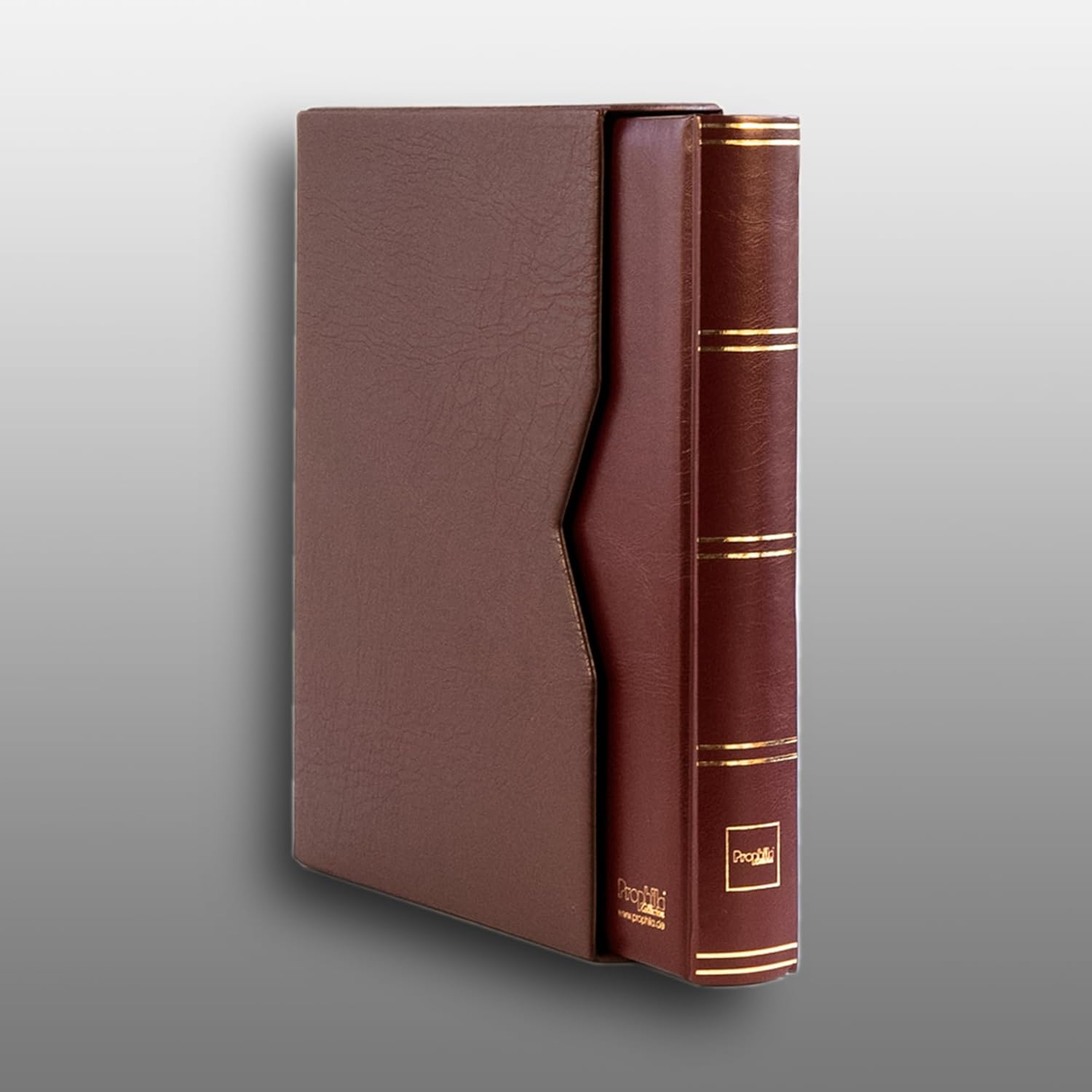 Lussuoso quaderno per francobolli con cassetta, copertina imbottita, 64 pagine bianche/divise (per la raccolta di postfreschi e timbrati contemporaneamente) 9 strisce in pergamena per lato, 2 divisori in pergamena per foglio, tutti i lati con rilegatura stabile a doppio giunto, stampa decorativa dorata Prodotto a marchio Leuchtturm. Formato: 23 x 30,5 cm. Nota: si acquista un prezioso prodotto dalla casa Prophila. Questo album è realizzato da Faro per Prophila. Include cassetta in plastica con impugnatura per un facile utilizzo. Design di alta qualità con effetto pelle e grana. Forma adattata al dorso rotondo degli album da ospitare. In armonia con i colori corrispondenti agli album. Protegge da polvere e luce dannosa. Stabilità degli album sullo scaffale. Protezione per il trasporto - impedisce la caduta di marche. Dimensioni esterne della cassetta: altezza: 32 cm, larghezza: 24 cm, profondità: 5,5 cm. Dimensioni interne cassetta: altezza: 31 cm, larghezza: 23 cm, profondità: 4,8 cm. Dimensioni confezione: 242 x 315 x 54 mm.