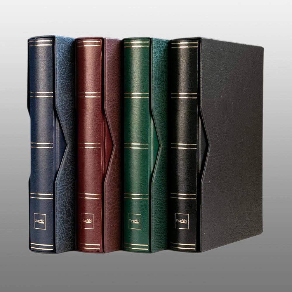 23,5 x 30 cm (9 x 12 inches), 60 pagine bianco con 9 strisce della pergamina sottile ad ogni pagina, ed inutilizzati di raccolta), doppi separatori in pergamino. Cassetta con maniglia incassata per un facile utilizzo. Design di alta qualità con aspetto in pelle e grana. Forma adattata alle creste degli album da ospitare. In armonioso abbinamento di colori con gli album corrispondenti. protegge dalla polvere e dalla luce nociva. Stabilità degli album sullo scaffale. Protezione del trasporto: impedisce alle marche di cadere. Dimensioni esterne: altezza: 32 cm, larghezza: 24 cm, profondità: 5,5 cm. Formato interno: Altezza: 31 cm, Larghezza: 23 cm, Profondità: 4,8 cm