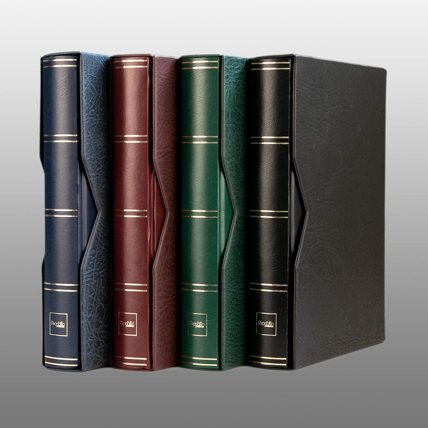 23,5 x 30 cm (9 x 12 inches), 60 pagine nere con 9 strisce della pergamina sottile ad ogni pagina, ed inutilizzati di raccolta), doppi separatori in pergamino. Nota: Si acquista un prezioso prodotto della casa Prophila. Questo album è prodotto da Leuchtturm per Prophila. Sul retro, troverete sempre il famoso logo di Prophila. Il logo d Leuchtturm aggiuntivo sul dorso dellalbum non appare più come una questione di diritti di marchio. Cassetta con maniglia incassata per un facile utilizzo. Design di alta qualità con aspetto in pelle e grana. Forma adattata alle creste degli album da ospitare. In armonioso abbinamento di colori con gli album corrispondenti. protegge dalla polvere e dalla luce nociva. Stabilità degli album sullo scaffale. Protezione del trasporto: impedisce alle marche di cadere. Dimensioni esterne: altezza: 32 cm, larghezza: 24 cm, profondità: 5,5 cm. Formato interno: Altezza: 31 cm, Larghezza: 23 cm, Profondità: 4,8 cm