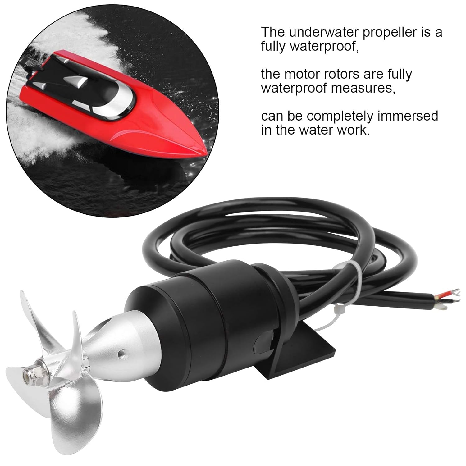 SPINTA ELEVATA: propulsore subacqueo con spinta elevata per far funzionare il dispositivo, peso ridotto, facile installazione e smontaggio, adatto per robot subacquei, barche RC e altre attrezzature subacquee. È facile da assemblare e utilizzato per soddisfare le diverse esigenze del settore FUNZIONE: Propulsore subacqueo L'elica utilizzata per barche o navi RC ha la caratteristica di vite e montaggio rapido con la pagaia e il posizionamento della rete può essere sostituito senza smontare il supporto del propulsore. Può far sì che i robot subacquei funzionino bene, indipendentemente da quando funziona dopo l'apertura MOTORE POTENTE: il propulsore subacqueo adotta un motore potente e resistente all'acqua, adatto per la gamma marina e può essere azionato direttamente rapidamente. Combinazione di potenza ragionevole per l'elica che fornisce potenza al controller realizzata in potente materiale metallico, per avere il motore abbinato per il lavoro di efficienza AZIONAMENTO DI DISSIPAZIONE DELL'ACQUA: L'elica subacquea ha un processo di funzionamento nell'azionamento di dissipazione dell'acqua per motivi di efficienza del lavoro per il quale si accompagna con prestazioni direzionali che garantiscono la resistenza all'acqua e rende la scoperta accurata prolunga la vita del motore DESIGN RESISTENTE ALL'ACQUA: la spinta subacquea senza spazzole è realizzata in materiale metallico per una lunga durata e stabilità sott'acqua. Rende un'adeguata tecnica di resistenza all'acqua, resistenza all'usura tale da essere utilizzata per lo scorrimento dell'acqua e la tecnologia di alimentazione del motore, e per lavorare a lungo sott'acqua