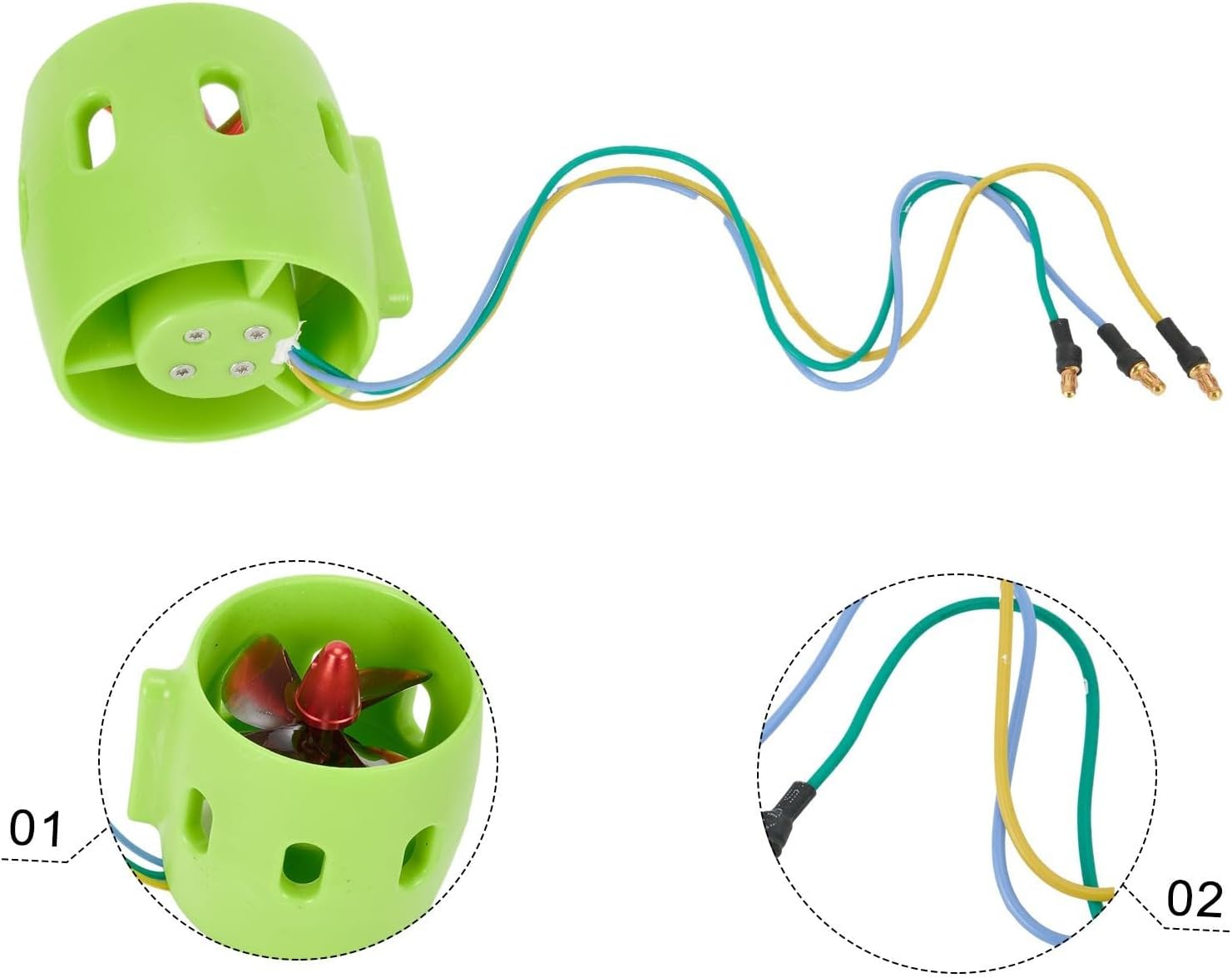 Spinta potente ed efficiente: sperimenta una spinta potente ed efficiente con la nostra elica appositamente progettata, perfetta per barche RC, modellini di barche e altro ancora. Materiale: pregevole fattura, struttura compatta e materiali di conservazione per un uso a lungo termine. Design versatile: porta la tua barca RC al livello successivo, ideale per modifiche, barche per attrezzature da pesca, barche da traino, barche di salvataggio e robot sottomarini. Motore brushless ad alte prestazioni: dotato di motore brushless, tensione 12-24 V, corrente 20 A e potenza nominale 300 KV, il nostro propulsore è progettato per prestazioni elevate e può raggiungere una profondità di 2000 metri. Facile da usare: con una comoda lunghezza del cavo di 25 cm, una dimensione compatta di 74x75 mm e un peso unitario leggero di 162 g, il nostro propulsore è facile da installare e utilizzare.