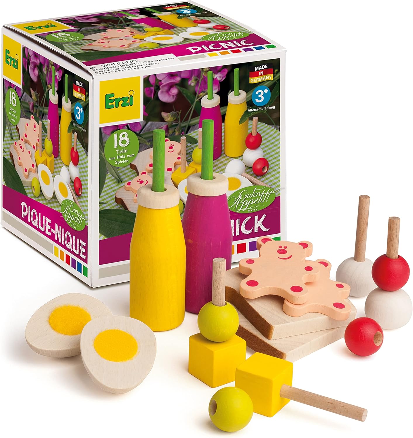 Made in Germany: i nostri prodotti sono progettati specificamente per promuovere lo sviluppo del bambino. La produzione secondo le linee guida rispettose dell'ambiente gioca un ruolo altrettanto importante quanto la purezza dei materiali utilizzati. I nostri giocattoli sono soggetti alle linee guida europee sui test e sono resistenti al sudore e alla saliva. Fare shopping è divertente: i bambini amano imitare i grandi. Inconsciamente impari a interagire con gli altri bambini, alleni la tua indipendenza, consolidi il tuo linguaggio, impari a contare e a fare un po' di matematica. Materiale: faggio, laccato colorato Fornitura: 1 prosciutto Dimensioni: 9,5 x 5,5 x 3,7 cm, 0,066 kg