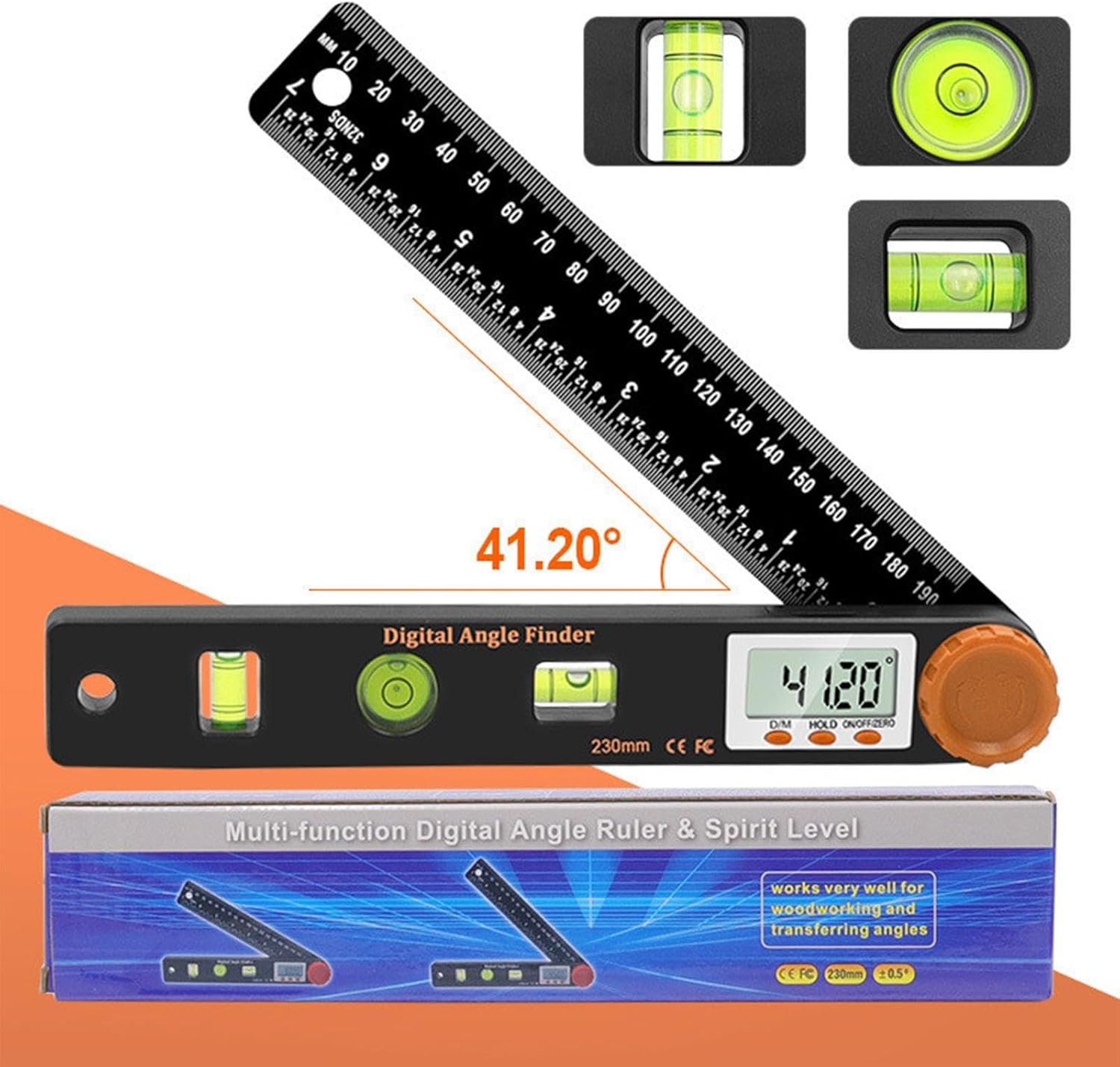 Spegnimento automatico: estende la durata del vostro righello dell'angolo digitale con la rivoluzionaria funzione di spegnimento automatico. Ottiene la batteria, permette misurazioni accurate e consente di risparmiare il fastidio di frequenti sostituzioni Funzioni multiple: non solo servono come righello angolare e strumento per la lavorazione del legno, ma questo cercatore digitale fornisce anche misurazioni relative e assolute, migliorando così la funzionalità per una precisione senza sforzo Convenienza del display LCD: basta leggere misurazioni precise con il grande display LCD del righello digitale dell'angolo. Non perderai una sola laurea Materiale di alta qualità: costruito con un corpo del righello ispessito e ampliato, questo robusto polipropilene di alta qualità garantisce Migliore efficienza di lavoro: con questo righello per il cercatore di angoli digitale, è possibile cancellare facilmente le letture in qualsiasi posizione per migliorare la precisione di misurazione. I dati possono essere memorizzati in qualsiasi angolazione, il che lo rende conveniente per misurazioni assolute e relative. Risparmia tempo e migliora l'efficienza del tuo lavoro