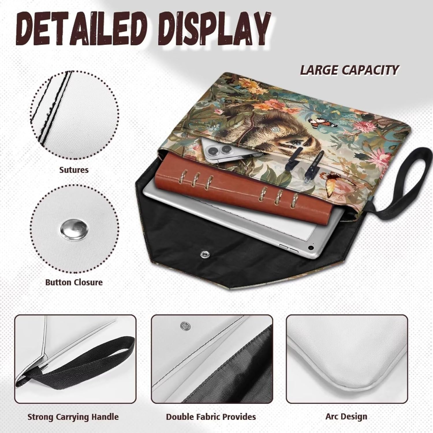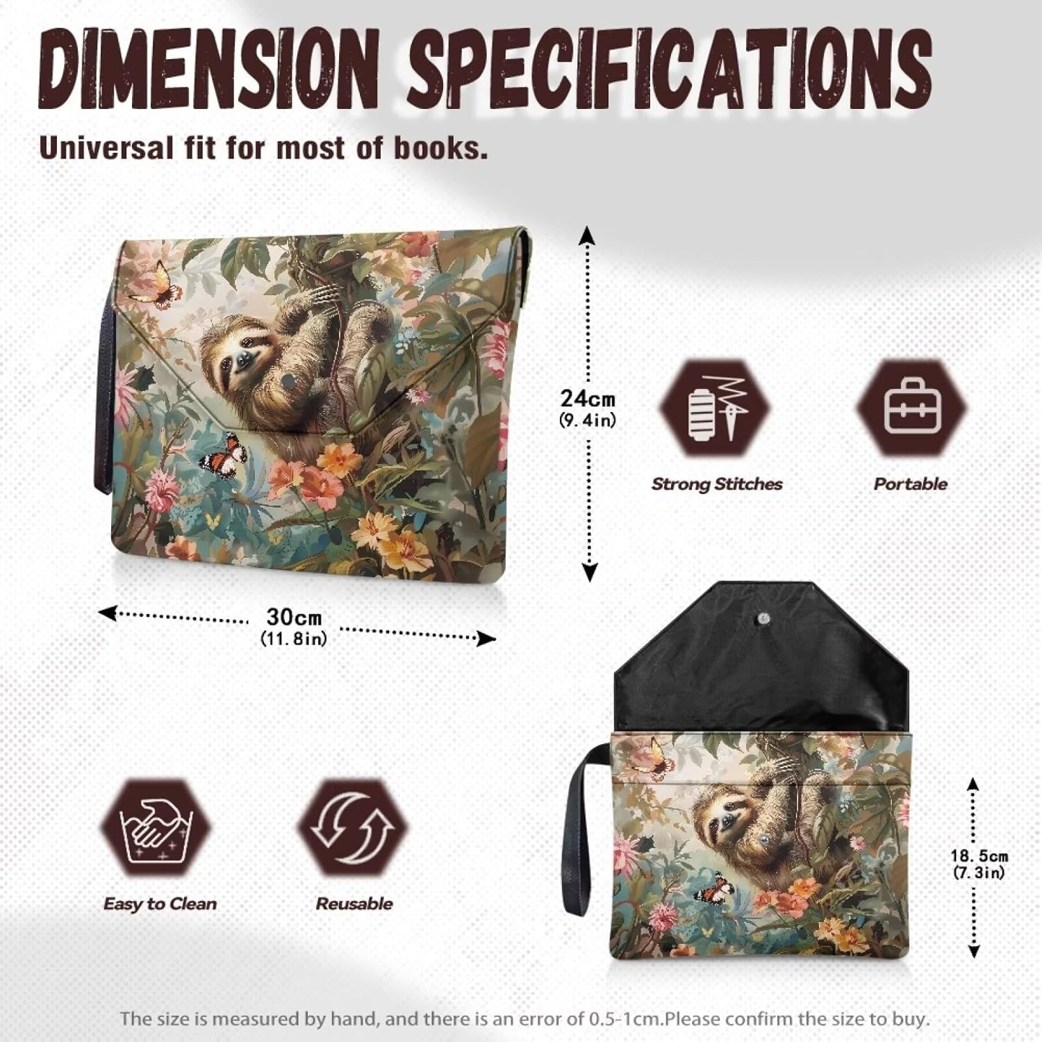 La nostra copertina per libri è un prodotto versatile meticolosamente progettato per proteggere i tuoi libri. Misurando circa 30 x 24 cm, con una tasca frontale che misura circa 30 x 18,5 cm, offre una vestibilità universale per la maggior parte dei libri, tascabili, libri di testo, quaderni e libri con copertina rigida. Le sue dimensioni compatte lo rendono facile da infilare in una borsa per un comodo trasporto. Realizzato in poliestere 300D, il tessuto a doppio strato offre una solida protezione contro lo sbiadimento, mentre le cuciture pulite e robuste garantiscono una lunga durata. Protegge efficacemente i tuoi libri da polvere, macchie, piegature, strappi e pieghe. Inoltre, è facile da lavare a mano e riutilizzabile. Dotato di doppia tasca, offre una grande capacità di contenimento. Lo scomparto principale è ideale per libri, agenda, tablet e quaderni di cancelleria, mentre la tasca frontale può contenere occhiali, segnalibri, penne, cosmetici, telefoni, carte, chiavi. Dotato di chiusura con bottone a pressione e patta superiore e inferiore, è incredibilmente facile da usare. La robusta maniglia laterale consente un sollevamento senza sforzo, rendendolo un gioco da ragazzi. Le nostre copertine per libri sono disponibili in un'ampia gamma di design carini e intriganti, con colori vivaci e la possibilità di personalizzazione personalizzata. Perfetti per riunioni, ufficio, casa, viaggi, scuola e viaggi d'affari, non solo proteggono i tuoi libri, ma costituiscono anche un oggetto premuroso per topi di biblioteca, amici, colleghi, insegnanti e studenti. Nota: 1. Assicurati che le specifiche delle dimensioni di questo prodotto corrispondano ai tuoi articoli prima dell'acquisto. 2. Questa copertina del libro è lavabile a mano ma non deve essere lasciata in ammollo per lunghi periodi di tempo, candeggiata o lavata in acqua a temperatura superiore a 45°C. Non adatto a bambini di età inferiore a 3 anni.