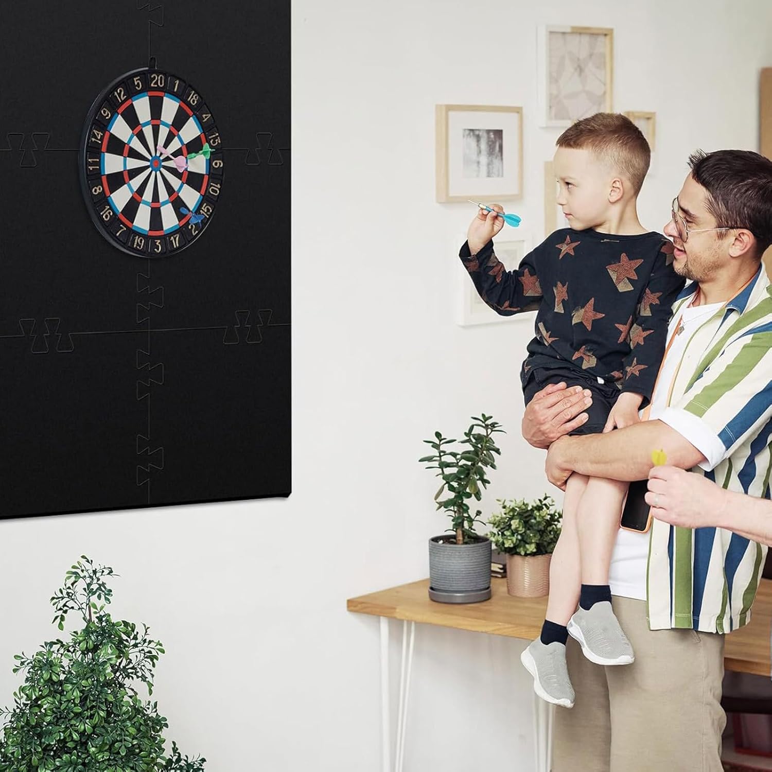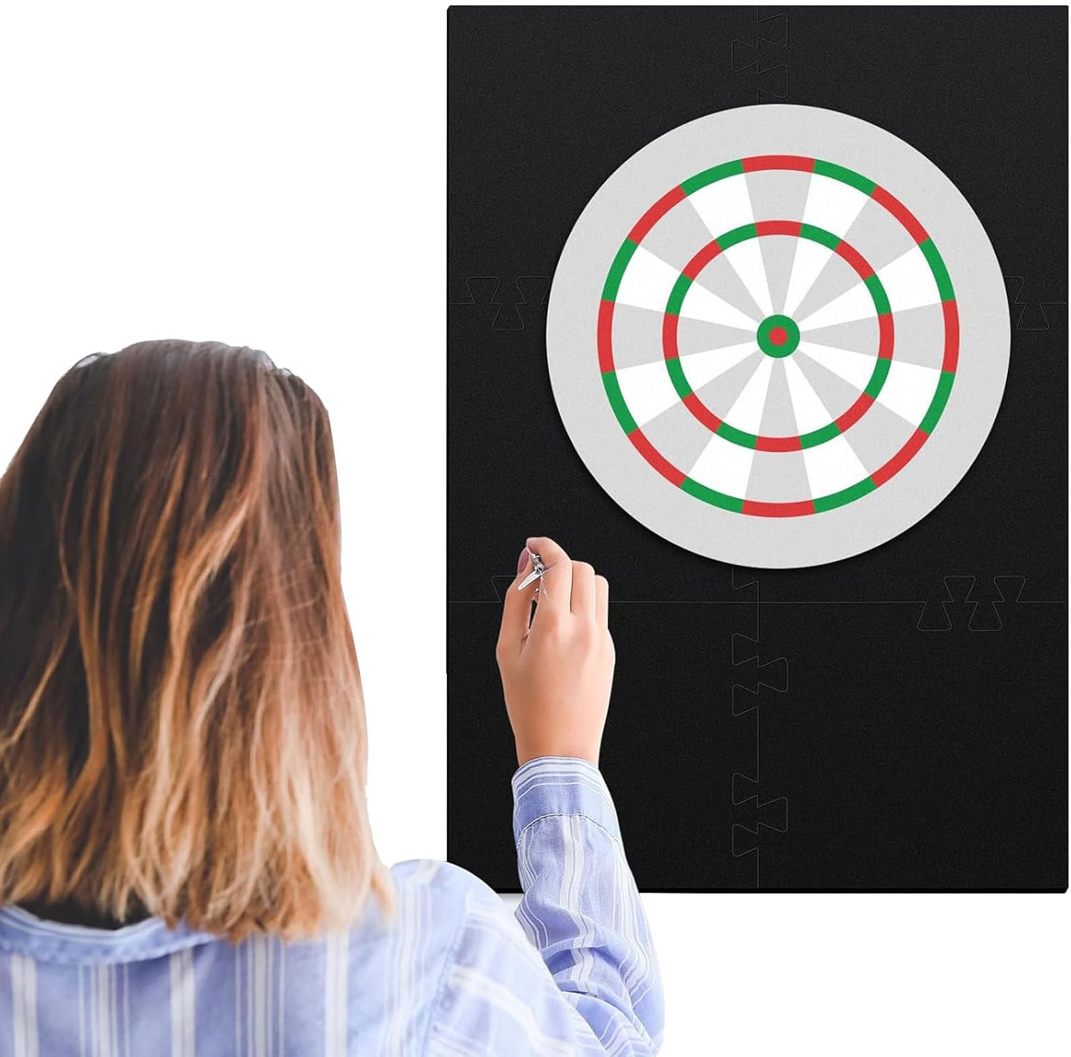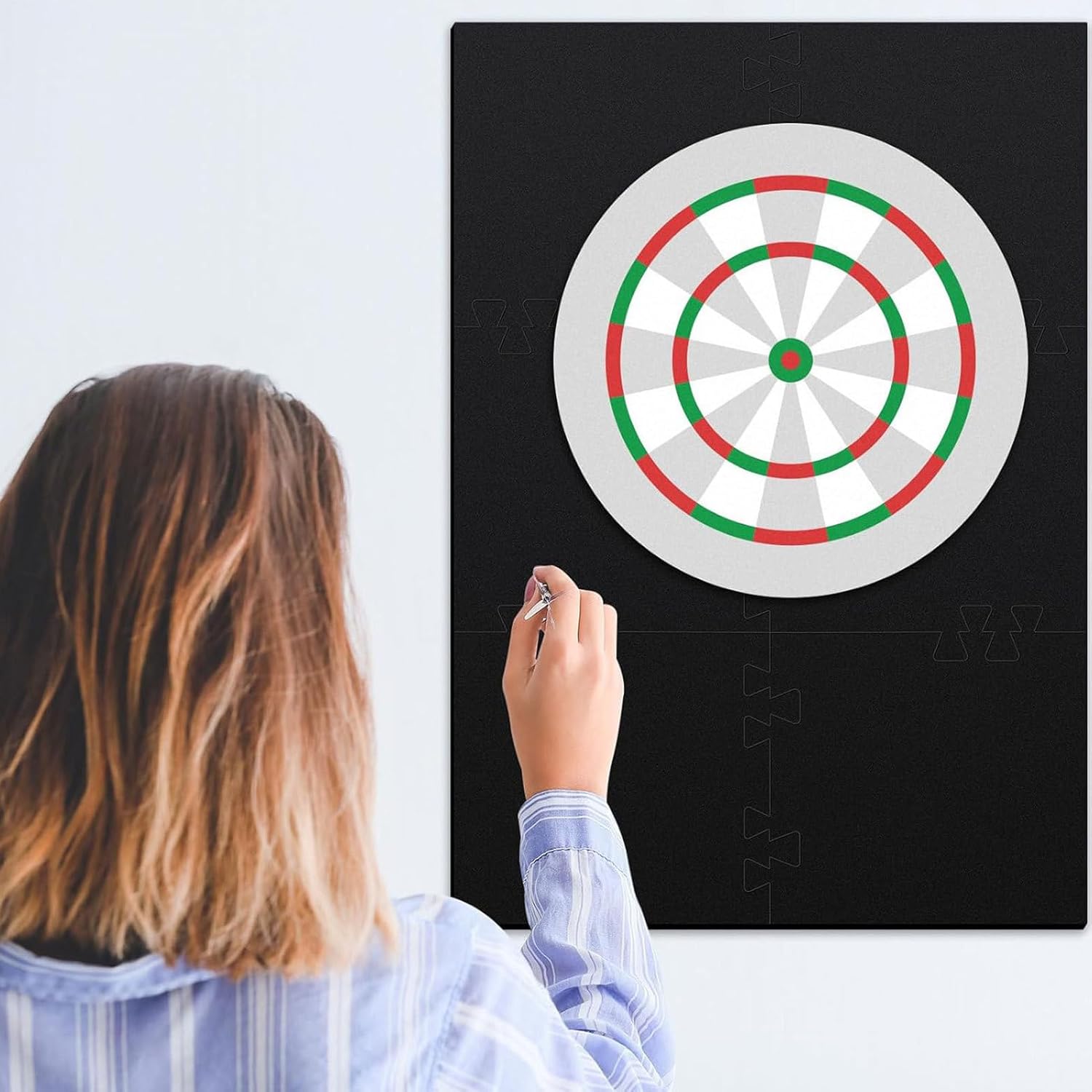 Materiali eccellenti: questa protezione da parete per bersaglio è realizzata con materiali accuratamente selezionati e fornisce un'eccellente schermatura per le pareti. La sua costruzione durevole di alta qualità garantisce una maggiore durata. Divertimento senza problemi: basta fissare la protezione alla parete, la pulizia è un gioco da ragazzi e non richiede complesse fasi di installazione. Trascorri più tempo a raggiungere il tuo obiettivo e meno tempo per la manutenzione. Protezione avanzata della parete: il materiale EVA e le superfici floccate della nostra protezione murale offrono una doppia protezione e assicurano che sia la parete che le punte delle freccette siano protette dai danni da impatti. Buon regalo: fai un regalo speciale ai tuoi cari con questa protezione da parete per bersaglio. Perfetto per i giocatori, un buon regalo per compleanni, Natale e altre occasioni speciali Integrazione con stile: la nostra protezione da parete per bersaglio è caratterizzata da un design elegante e sottile che si adatta perfettamente a diversi stili di arredamento senza compromettere l'aspetto generale della tua stanza giochi.