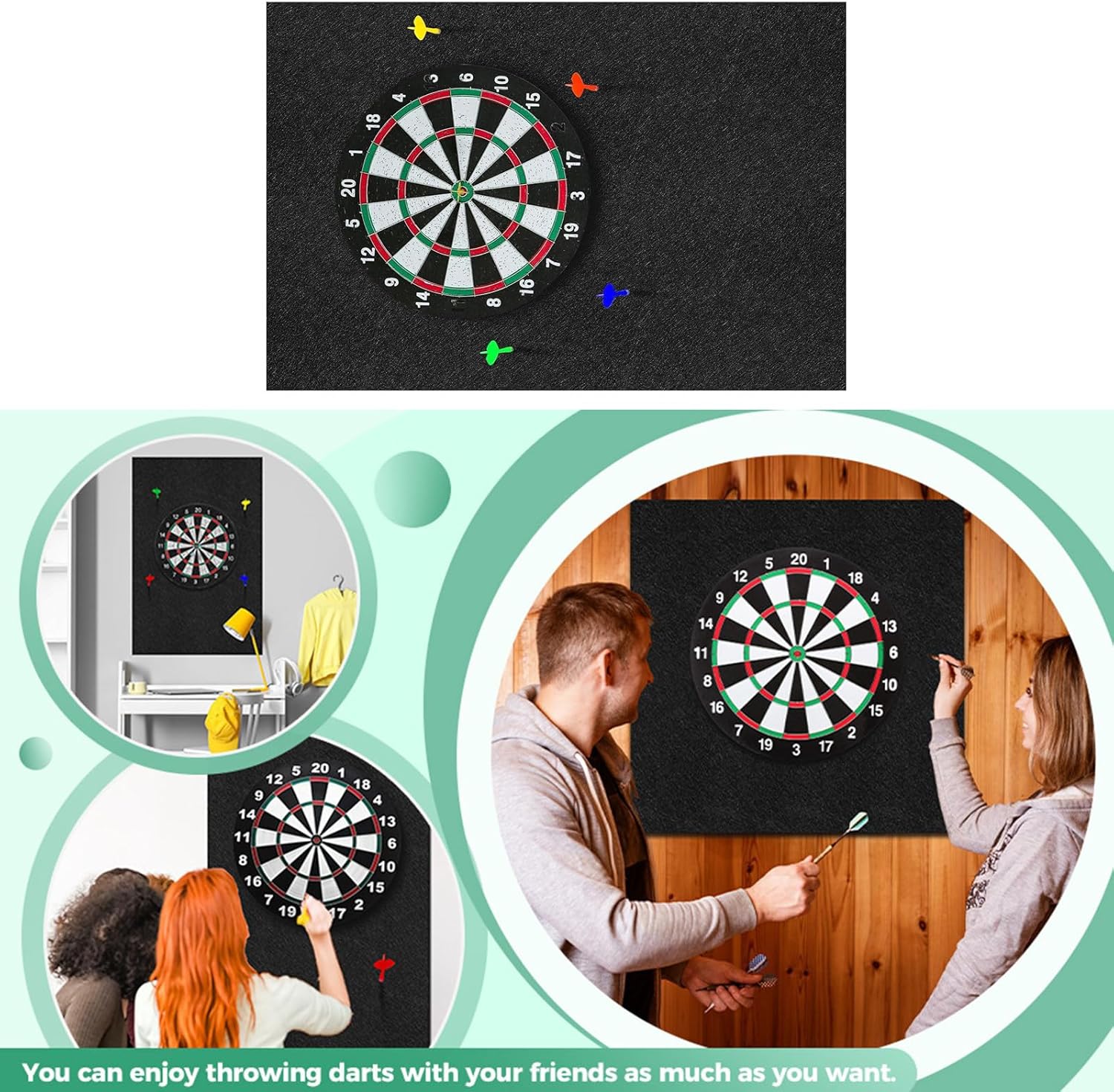 e smontare, senza la necessità di strumenti o programmi complessi Può essere utilizzato in club, sale giochi, sale di casa, sale di formazione e altre varie occasioni, aiuta a ridurre al minimo il rumore causato dal colpo delle freccette La nostra protezione per freccette in feltro, con le sue dimensioni impressionanti e spessa, funge da scudo che impedisce alle freccette di penetrare e danneggiare la parete Si può facilmente decollare per la pulizia o la sostituzione, o semplicemente per cambiare posizione, fornendo la flessibilità di personalizzare perennemente le impostazioni di gioco delle freccette La nostra protezione da parete per bersaglio è realizzata in feltro nero, resistente e può essere applicata a lungo termine