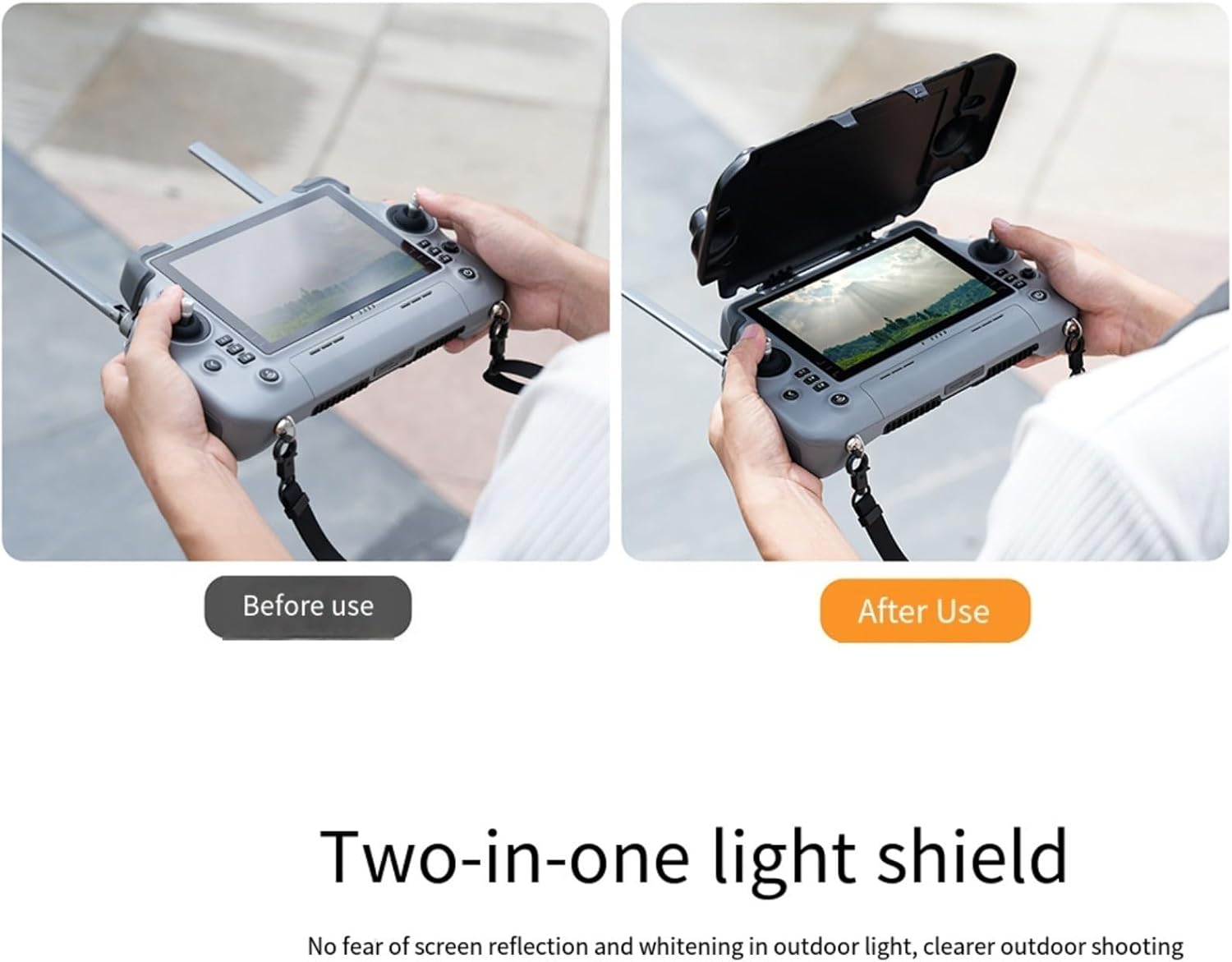 [Riduzione del bagliore/controllo della scena]: riduce i riflessi e i riflessi durante i voli all'aperto; il cappuccio parasole 2 in 1 e la protezione del controller migliorano la visibilità dello schermo in modo da poter leggere mappe e telemetria in piena luce senza strizzare gli occhi o ombreggiare con la mano. Compatibilità: progettato per l'uso con RC Plus e per Matrice 400 Series (per 4T/4E/400). Ottimizzato per sedersi comodamente mantenendo tutti i pulsanti e le porte accessibili per regolazioni rapide a metà missione. Struttura robusta in ABS di lunga durata: realizzata in ABS di lunga durata che resiste agli urti quotidiani durante il trasporto e l'uso sul campo. le pareti proteggono il display e i comandi da luce diffusa e pioggerella, supportando un funzionamento costante all'aperto. [CONFIGURAZIONE LEGGERA/VELOCE]: profilo sottile e leggero si inserisce facilmente nel tuo kit da campo e si installa in pochi secondi; la geometria pieghevole guida il posizionamento, aiutandoti a spostarti nell'aria più velocemente quando le condizioni cambiano. Dimensioni: 27 x 17 x 6 cm, nero. La finitura interna liscia riduce i riflessi vaganti; ampi ritagli mantengono il flusso d'aria e l'accesso al tocco. Goditi immagini più chiare e input più stabili con meno interruzioni dello schermo durante la mappatura, l'ispezione o l'addestramento.